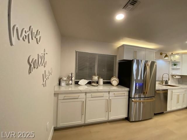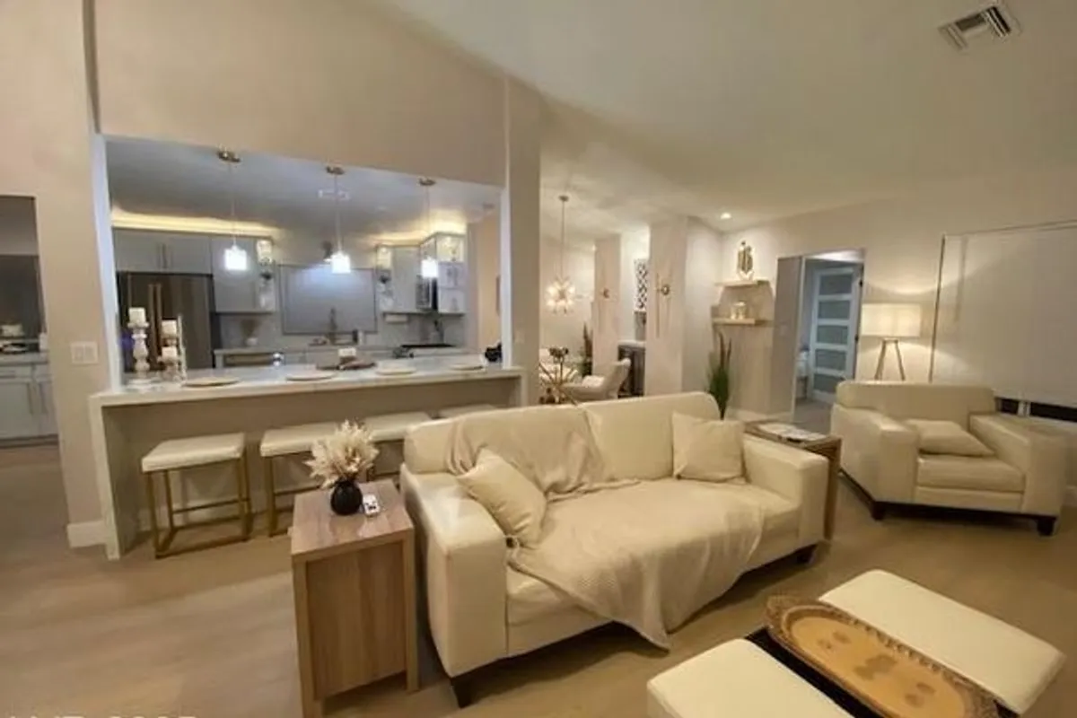 Your chance to steal this Stunning 3-bdrm Sun City Masterpiece w/ re-imagined custom kitchen. Soaring marble fireplace, waterfalled island counter w/ seating on both sides, built in wine bar, wine storage, garbage pull out cabinet, blt in spice rack, Coffee bar, floating shelves, stainless steel appliances, filtered water, Luxurious spa bathrooms w/ everything new, luxury vinyl plank, glimmering chandeliers, modern fans, built in desk/sewing niche, and so much more. Come discover the special touches for yourself. 3rd bdrm w/ dbl drs expands living space if preferred. Sq. ftg. closer to 1500. Small sun rm w/ slider to back . no neighbors behind! Front, gtd courtyard keeps the fur babies in w/ strung lights overhead & faux turf. Seller's loss, your gain. Light & bright w/ soaring ceilings & led lights above cabs & dining niches. Community offers golf courses, restaurants, social calendar, fitness & tennis too! Bunny sightings are commonplace, so get on your golf cart & come on home!