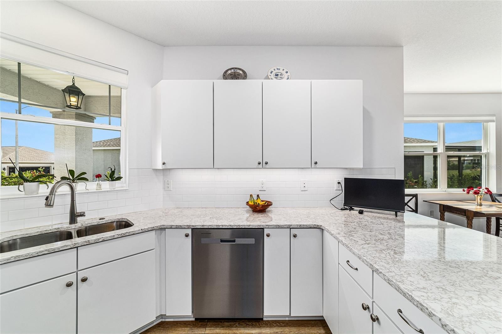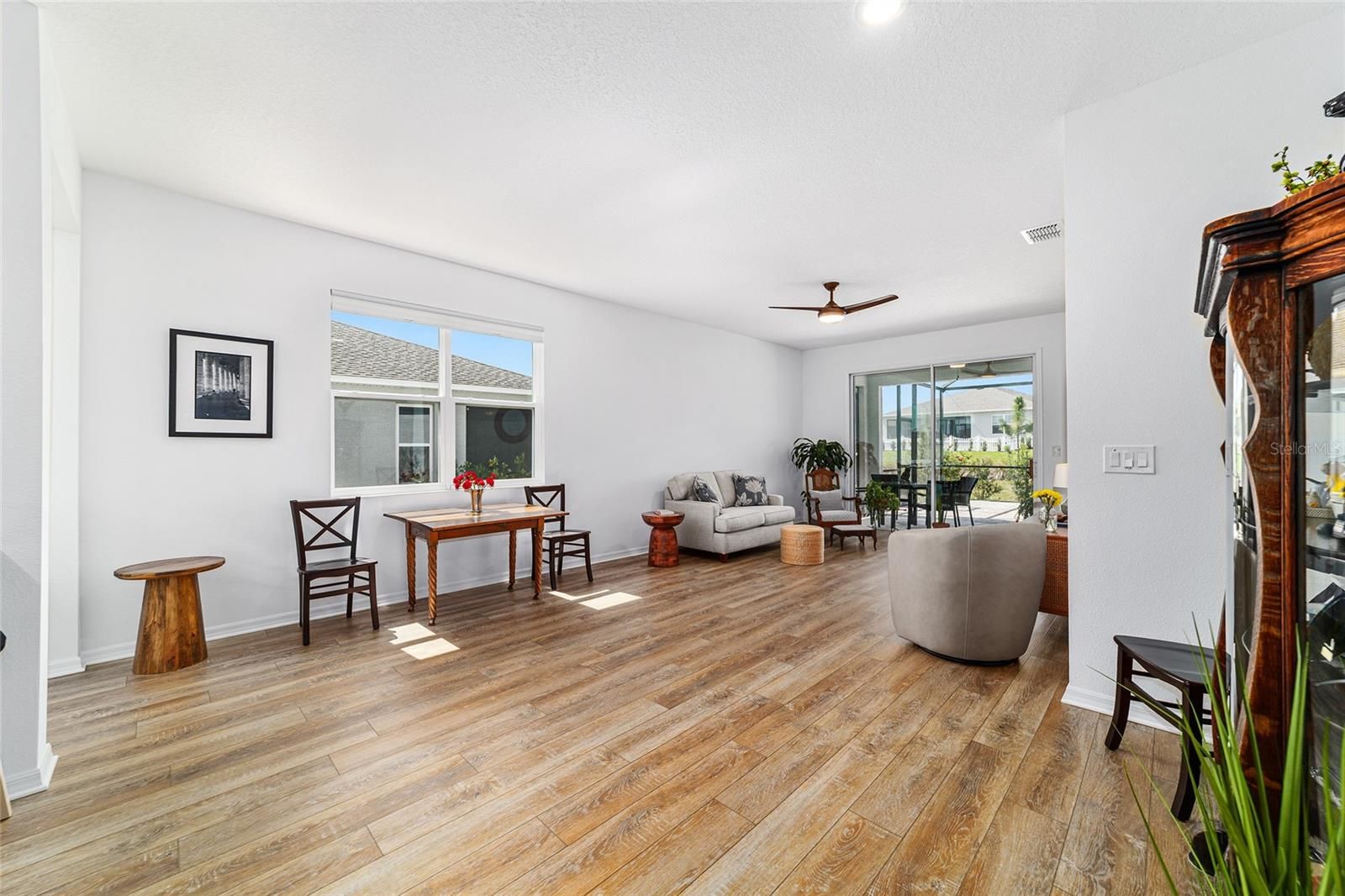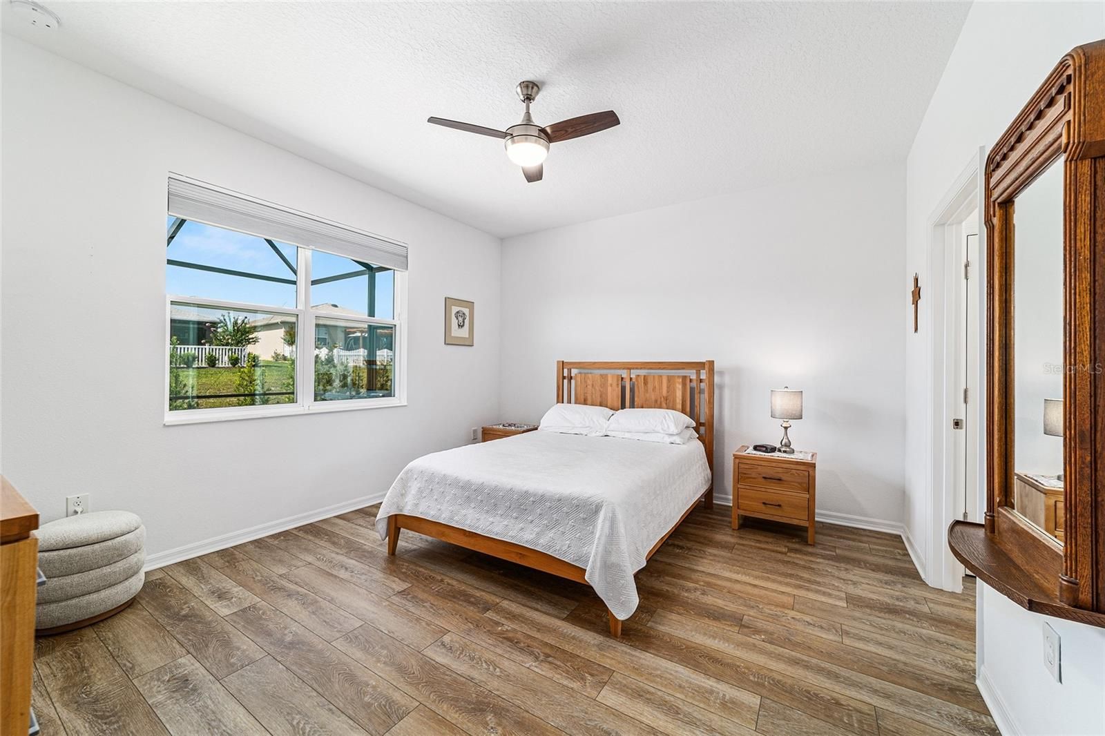 Back on Market, through no fault of Seller. Now $269,000 – 2023 Oren Model in On Top of the World Move-in ready and meticulously maintained, this 2-bedroom, 2-bathroom Oren model is an exceptional value in On Top of the World. Situated on a private homesite with extra space from rear neighbors, it offers privacy, comfort, and low-maintenance living. Enjoy a large paver-finished birdcage, enhanced landscaping, Coolaroo-shaded lanai, and a 2-foot extended garage with epoxy flooring. Inside, luxury vinyl plank flooring flows throughout, and the chef’s kitchen features granite countertops, tile backsplash, stainless steel appliances, and soft-close cabinetry. The primary suite includes a walk-in tiled shower, built-in seat, grab bars, and a spacious walk-in closet. Upgraded laundry, water softener, ceiling fans, and meticulous attention to detail make this home truly turnkey. Residents enjoy a clubhouse, pool, fitness center, pickleball courts, and with a Gateway Pass, access to all On Top of the World amenities. Schedule your private showing today!