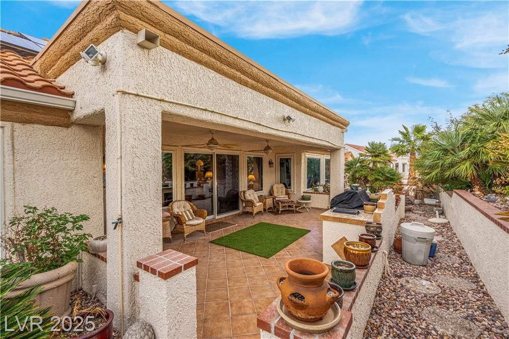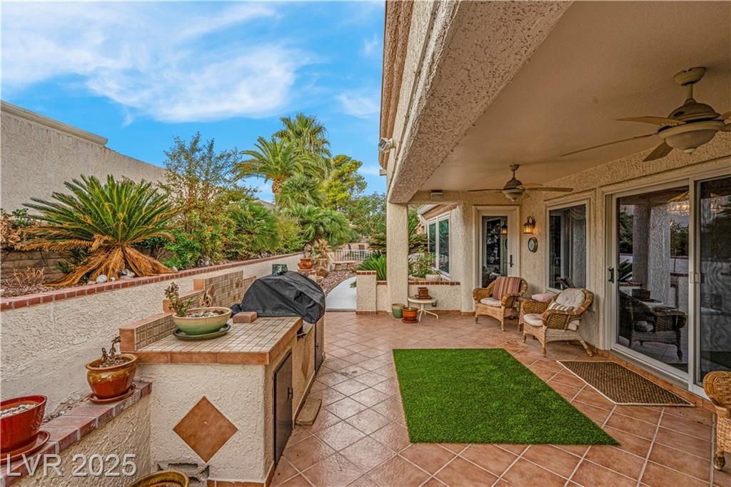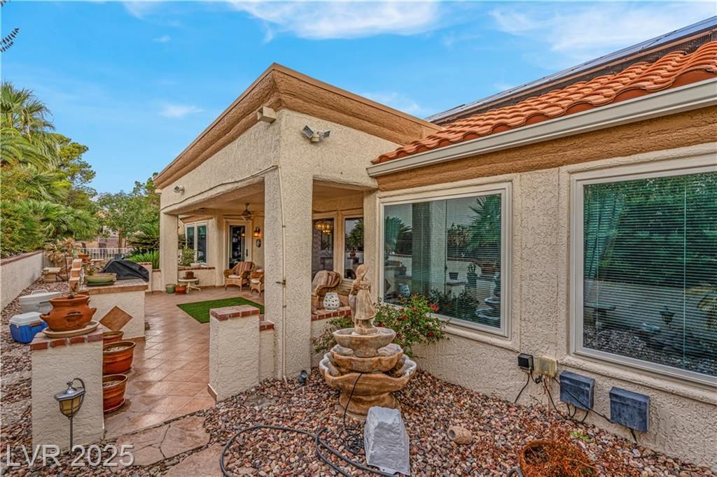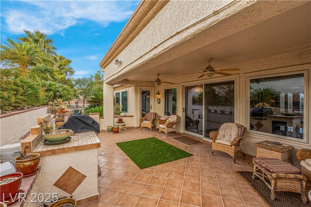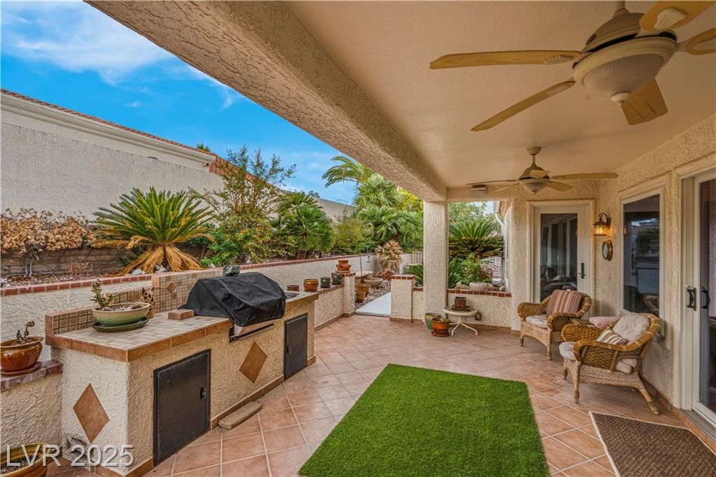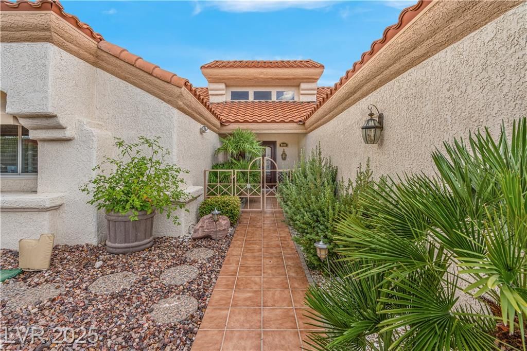 Welcome to your dream home in Sun City Summerlin—Las Vegas’ premier 55+ community known for its golf courses, resort-style amenities, & breathtaking mountain views. This beautifully maintained 3-bedroom home features one of the most desirable floor plans in the neighborhood. Step through the enchanting courtyard & into a space that blends comfort & sophistication. The recently updated primary bathroom boasts custom cabinetry, designer finishes, & a spacious walk-in closet with custom doors. Enjoy effortless entertaining on the tiled covered patio, complete with 2 ceiling fans & a built-in BBQ—perfect for relaxing evenings or weekend gatherings. Inside, you’ll appreciate the separate laundry room with cabinets & a sink for added convenience. Residents of Sun City Summerlin enjoy access to three golf courses, four clubhouses, swimming pools, fitness centers, pickleball & tennis courts, restaurants, & endless social activities—all set amid tree-lined streets & stunning desert scenery.
