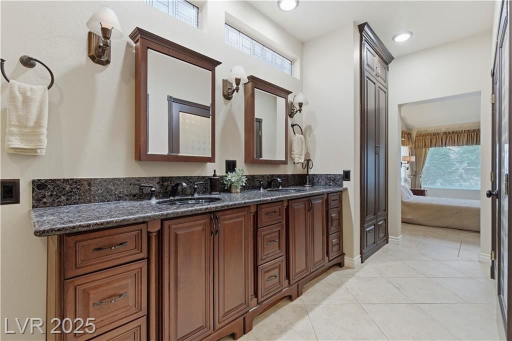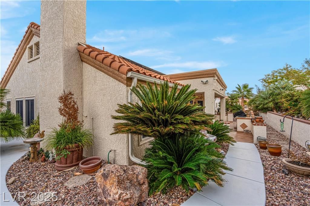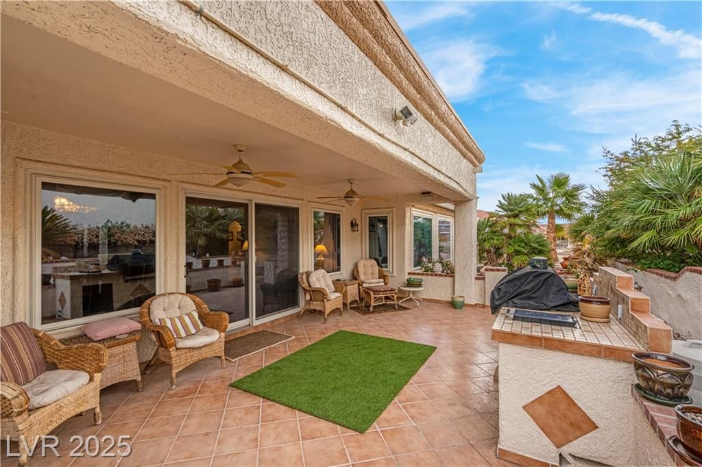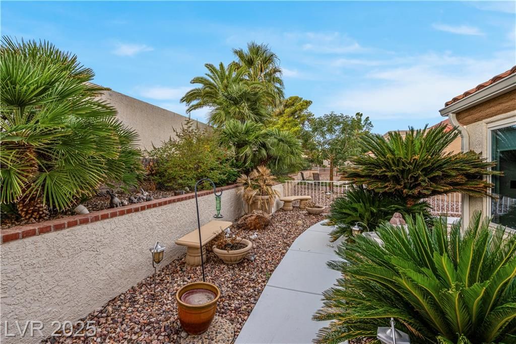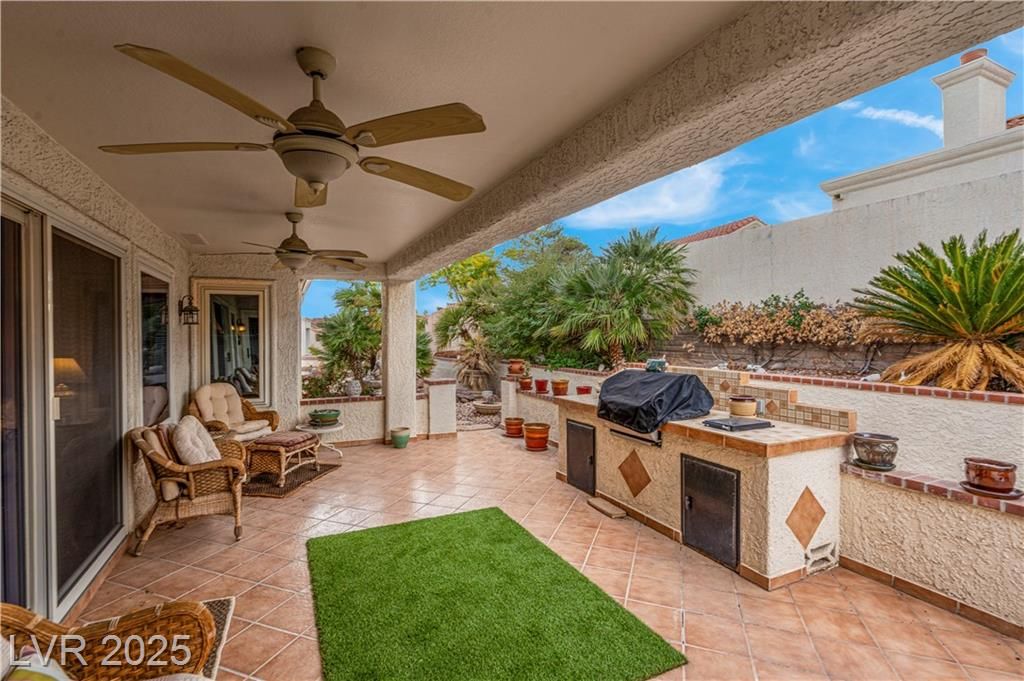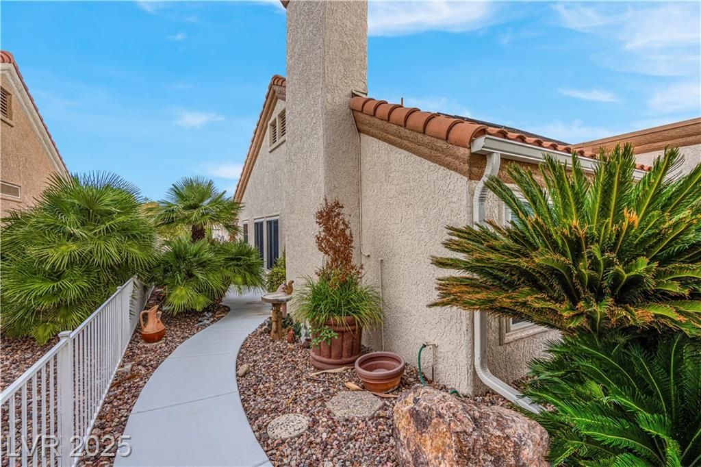 Welcome to your dream home in Sun City Summerlin—Las Vegas’ premier 55+ community known for its golf courses, resort-style amenities, & breathtaking mountain views. This beautifully maintained 3-bedroom home features one of the most desirable floor plans in the neighborhood. Step through the enchanting courtyard & into a space that blends comfort & sophistication. The recently updated primary bathroom boasts custom cabinetry, designer finishes, & a spacious walk-in closet with custom doors. Enjoy effortless entertaining on the tiled covered patio, complete with 2 ceiling fans & a built-in BBQ—perfect for relaxing evenings or weekend gatherings. Inside, you’ll appreciate the separate laundry room with cabinets & a sink for added convenience. Residents of Sun City Summerlin enjoy access to three golf courses, four clubhouses, swimming pools, fitness centers, pickleball & tennis courts, restaurants, & endless social activities—all set amid tree-lined streets & stunning desert scenery.