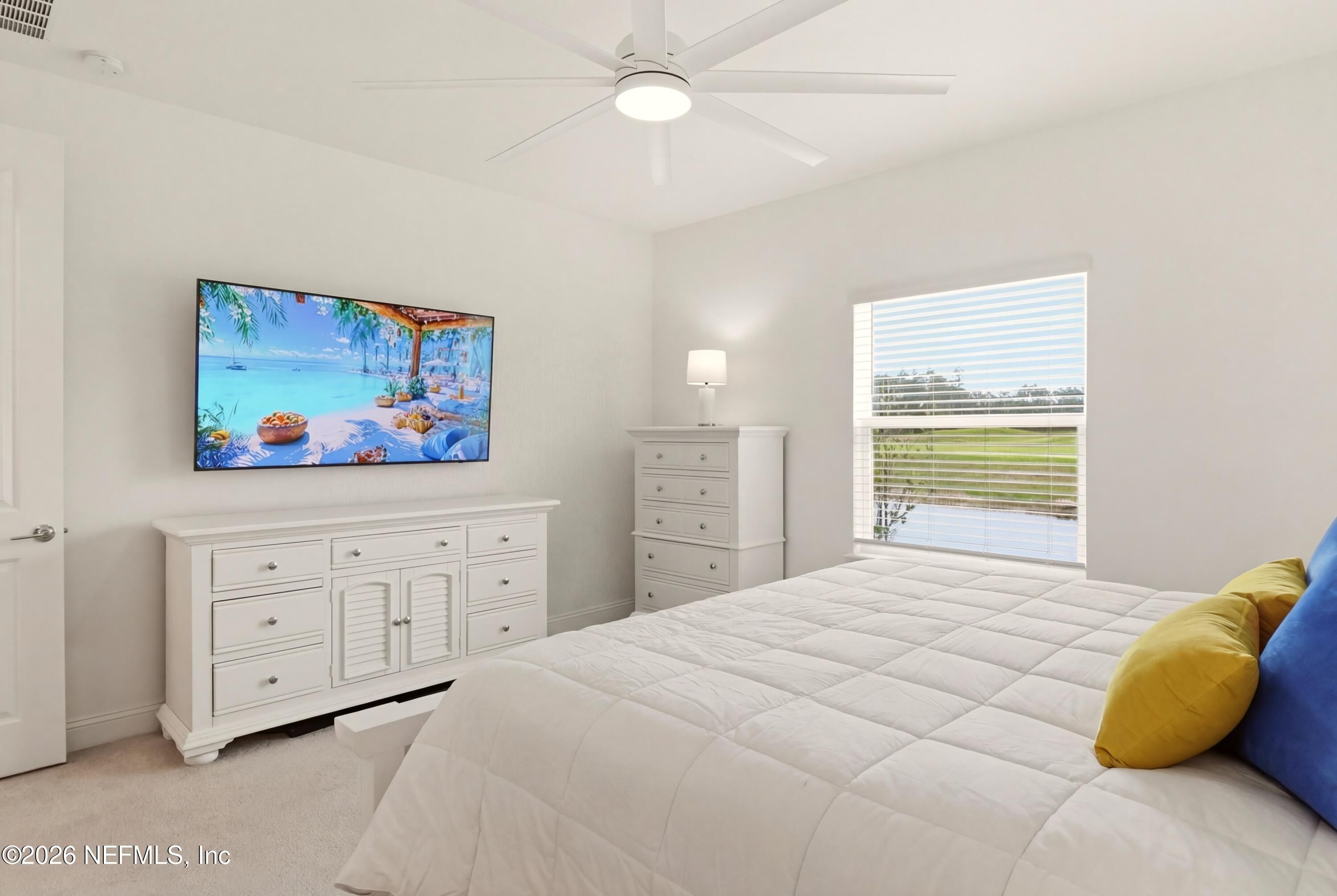 Welcome to the lifestyle buyers are searching for--55+ active adult living that feels like a full-service vacation, every single day. This almost new, single-story home built in 2023 is perfectly positioned with stunning lake and golf course views (Hole 6), offering the kind of peaceful, private setting that's hard to find. Inside, you'll find a thoughtfully designed open-concept floor plan with 2 bedrooms, 2.5 bathrooms, and a spacious den--ideal for a home office, guest space, or hobby room. The home is light, bright, and move-in ready, featuring a modern kitchen with quartz countertops, a full appliance package, and seamless flow into the main living area--perfect for entertaining or simply enjoying quiet mornings with a view. Step out onto your screened-in covered porch and take in the lake and golf course scenery while enjoying breezes and outdoor living year-round. Designed for comfort and convenience, this home includes smart home technology, remote access HVAC, security system with cameras, water softener, and washer and dryer--all included. Located in a gated 55+ community, this is where lifestyle truly takes center stage. The HOA includes lawn care, irrigation, landscaping, and even golf membership, giving you a low-maintenance, lock-and-leave lifestyle. Enjoy resort-style amenities just steps from your door, including a championship golf course, TopTracer driving range, pickleball, tennis, bocce ball, a heated and cooled pool with food and bar service, a full clubhouse with restaurant, and a 24-hour fitness center. This is active adult living at its finest. Conveniently located near shopping, dining, and I-95, and just a short drive to the beach, this home offers the perfect balance of relaxation and accessibility. If you've been searching for a one-story home in a 55+ community with golf course views, lake views, and a true resort lifestyle, this is the one.