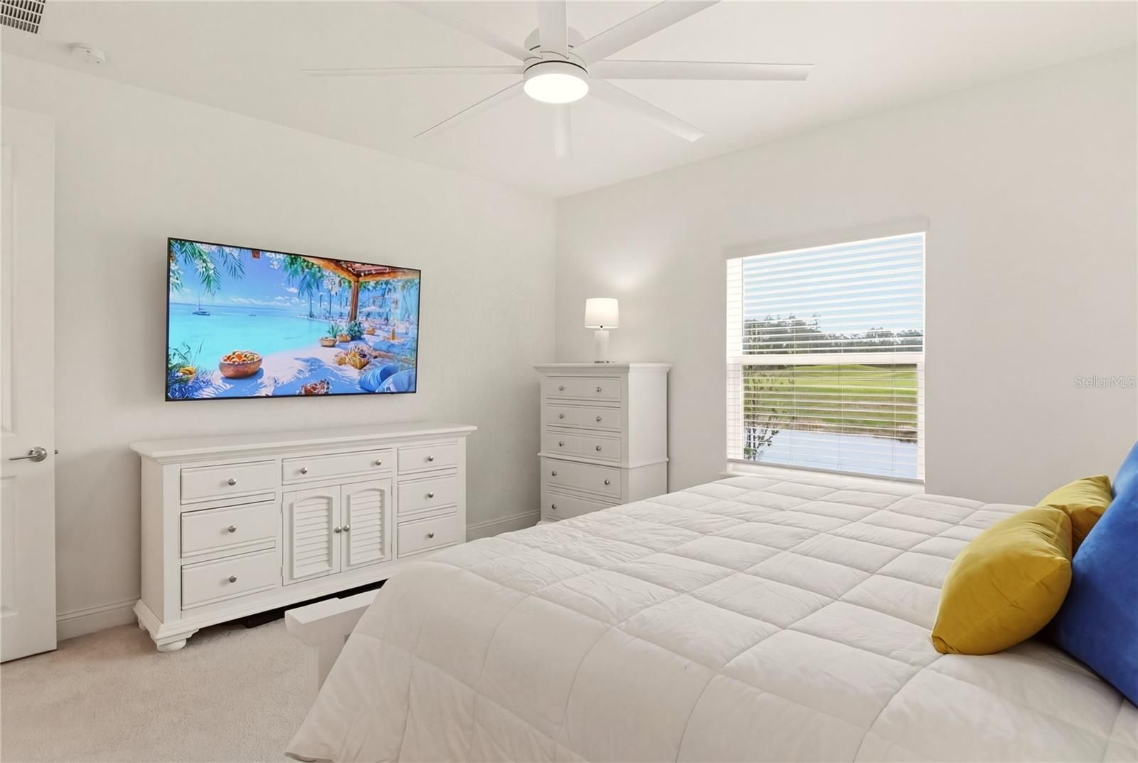 Welcome to the lifestyle buyers are searching for—55+ active adult living that feels like a full-service vacation, every single day. This almost new, single-story home built in 2023 is perfectly positioned with stunning lake and golf course views (Hole 6), offering the kind of peaceful, private setting that’s hard to find. Inside, you’ll find a thoughtfully designed open-concept floor plan with 2 bedrooms, 2.5 bathrooms, and a spacious den—ideal for a home office, guest space, or hobby room. The home is light, bright, and move-in ready, featuring a modern kitchen with quartz countertops, a full appliance package, and seamless flow into the main living area—perfect for entertaining or simply enjoying quiet mornings with a view. Step out onto your screened-in covered porch and take in the lake and golf course scenery while enjoying breezes and outdoor living year-round. Designed for comfort and convenience, this home includes smart home technology, remote access HVAC, security system with cameras, water softener, and washer and dryer—all included. Located in a gated 55+ community, this is where lifestyle truly takes center stage. The HOA includes lawn care, irrigation, landscaping, and even golf membership, giving you a low-maintenance, lock-and-leave lifestyle. Enjoy resort-style amenities just steps from your door, including a championship golf course, TopTracer driving range, pickleball, tennis, bocce ball, a heated and cooled pool with food and bar service, a full clubhouse with restaurant, and a 24-hour fitness center. This is active adult living at its finest. Conveniently located near shopping, dining, and I-95, and just a short drive to the beach, this home offers the perfect balance of relaxation and accessibility. If you’ve been searching for a one-story home in a 55+ community with golf course views, lake views, and a true resort lifestyle, this is the one.