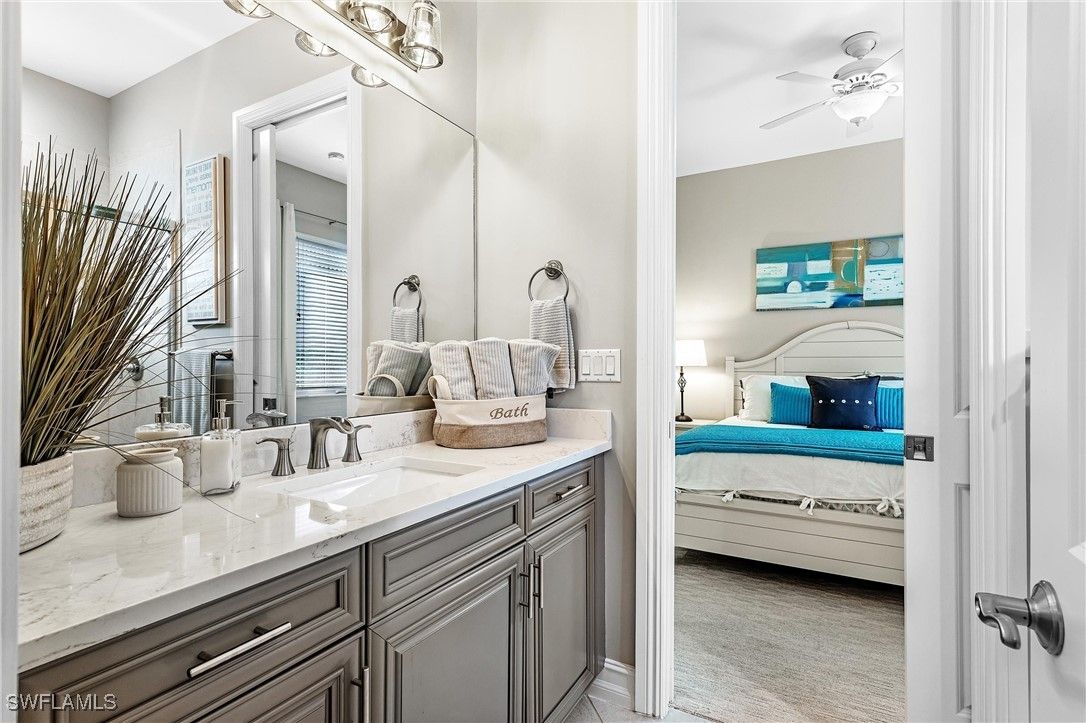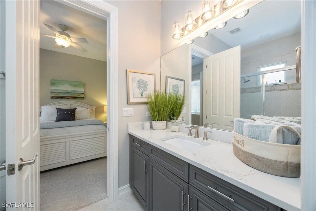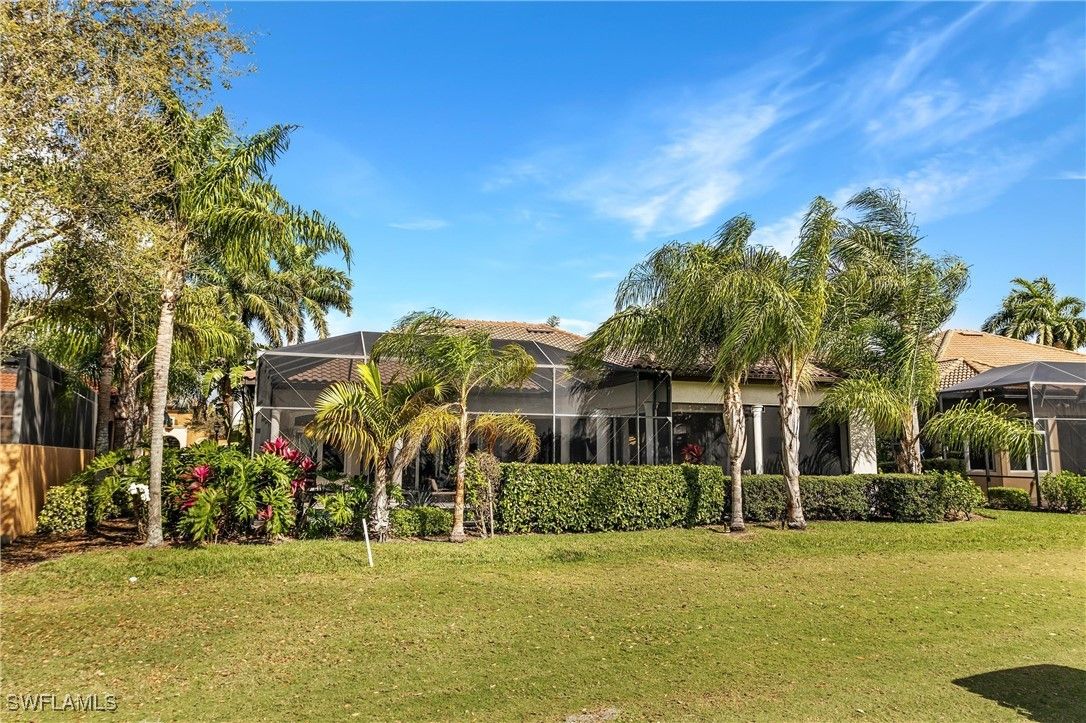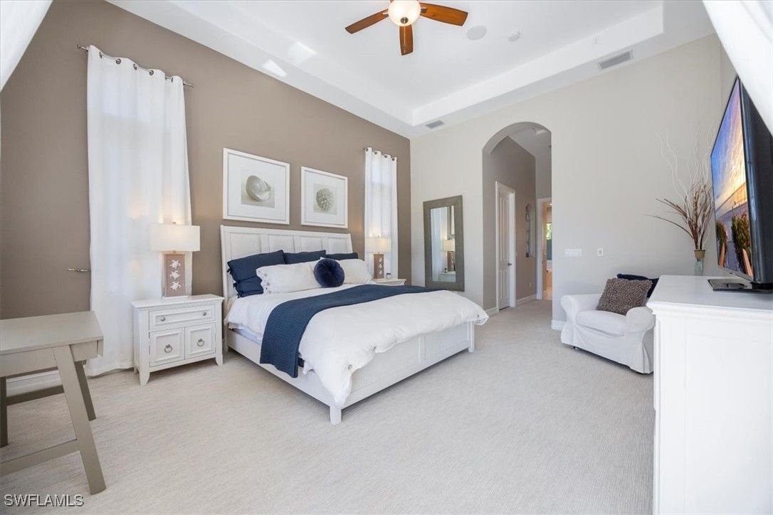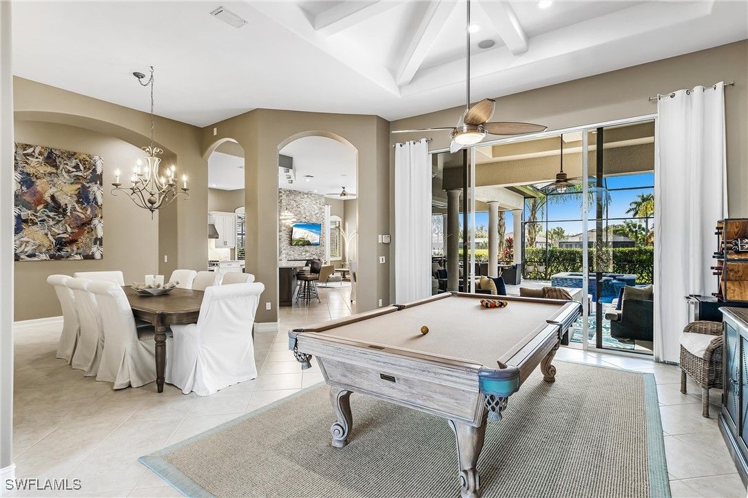 Experience unparalleled elegance and modern luxury in this meticulously updated residence, located within the prestigious double-gated enclave of The Majors at Lely Resort. Offering breathtaking south-facing golf course and lake views, this furnished 3-bedroom plus den, 2.5-bath home seamlessly blends sophistication, comfort, and resort-style living. The gourmet kitchen, fully renovated in 2022, is a chef’s dream, featuring gas cooking, custom cabinetry, Quartz countertops, and premium appliances. A spacious breakfast bar provides additional seating, while the sunlit breakfast nook is the perfect place to enjoy morning coffee with serene views. The family room is a true showstopper, highlighted by a striking stone accent wall with a built-in gas fireplace, creating a warm yet refined ambiance. The expansive primary suite serves as a private retreat, with French doors leading to the lanai. The elegant primary bath offers a spa-like experience, featuring a walk-in shower, separate soaking tub, and dual vanities for ultimate relaxation. Designed for seamless indoor-outdoor living with zero corner sliding doors, the resort-style lanai and pool area underwent a complete transformation in 2022. Take a refreshing swim or unwind in the heated saltwater pool and spa. On cooler evenings, relax by the firepit while the ambient pool lighting enhances the tranquil atmosphere. The expansive screened lanai offers multiple lounging and dining areas overlooking the picturesque golf course. An outdoor kitchen, fully equipped with a built-in gas grill, beverage refrigerator, and granite countertops, makes entertaining effortless. The spacious 3-car garage includes an air-conditioned storage space (2022), providing optimal convenience for preserving vehicles, golf clubs, and household items. Thoughtfully maintained, this home offers numerous recent upgrades, including a new front door (2024), new washer and dryer (2024), new A/C (2025), water heater (2020), and a newer roof (2021), ensuring peace of mind for years to come. Enjoy immediate membership to the exclusive Players Club & Spa, featuring resort-style pools, fine dining, a state-of-the-art fitness center, tennis, pickleball, and a luxurious spa. Golf enthusiasts will appreciate access to three championship golf courses, making this the ultimate Naples lifestyle retreat. This extraordinary home presents a rare opportunity to experience the finest in luxury living at Lely Resort. No waitlist Golf Membership!