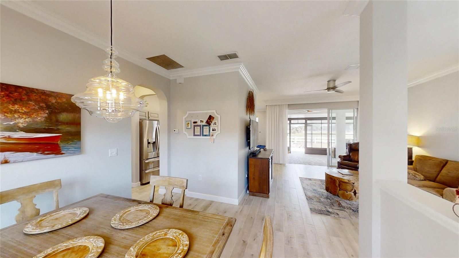 Beautifully upgraded Ayreshire model located in the sought-after On Top of the World 55+ community. This 3-bedroom, 2-bath home has been thoughtfully updated with fresh interior and exterior paint, crown molding throughout, stainless steel appliances, solar tubes for added natural light, and fully updated lighting and ceiling fans. Tile flooring has been upgraded throughout the home, with new high-quality carpet and pad in the master bedroom. The kitchen and bathrooms feature freshly painted cabinets, enhancing the home’s modern appeal. Enjoy additional living space in the enclosed patio, along with a stunning cobblestone patio complete with decorative wall and lighting—perfect for relaxing or entertaining. The garage has painted interior walls, epoxy flooring, a remote-controlled screen, and a water softener. Exceptional landscaping surrounds the home, offering breathtaking golf course views and impressive curb appeal. Please take a look at the Matterport 3D Tour.