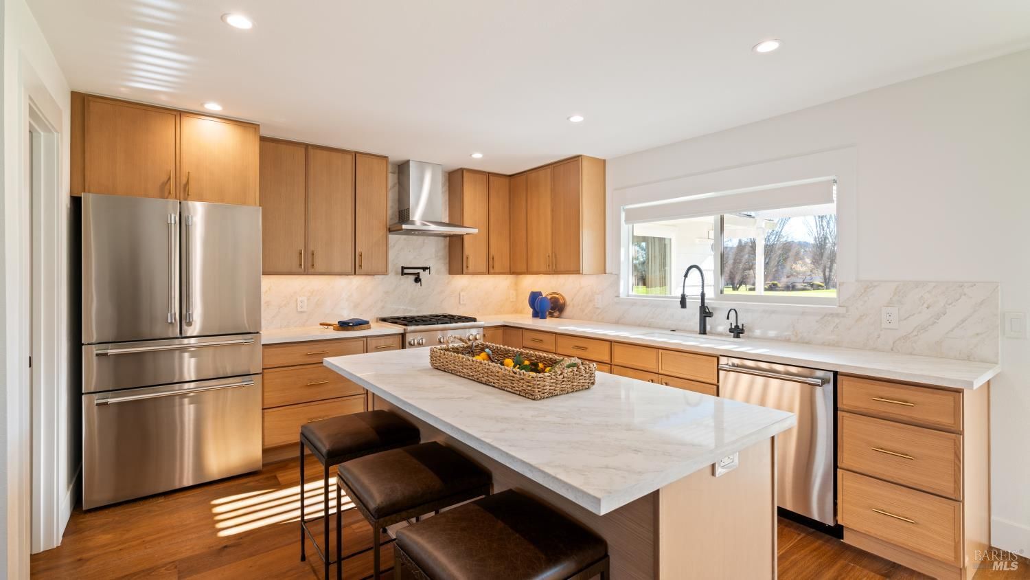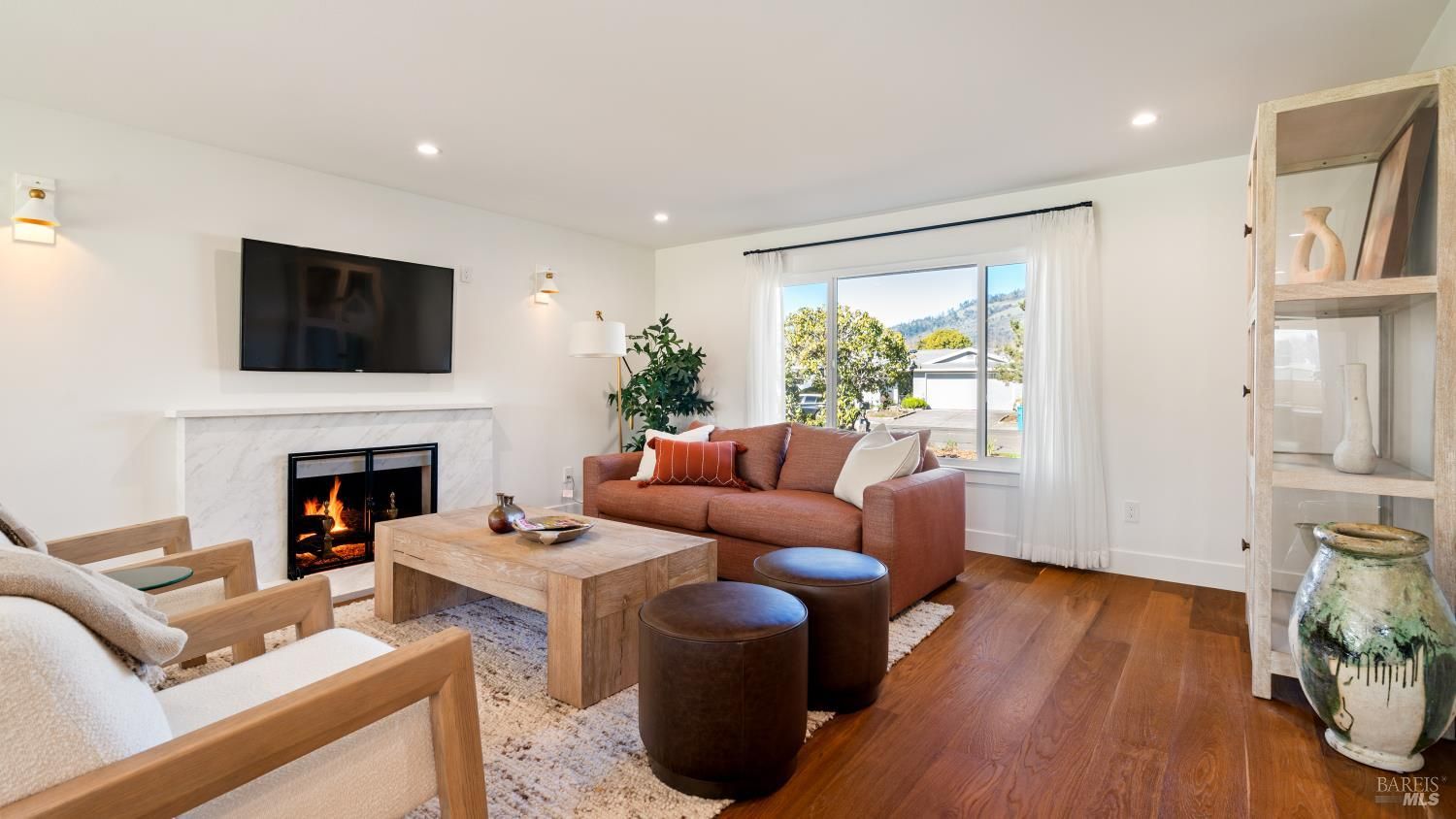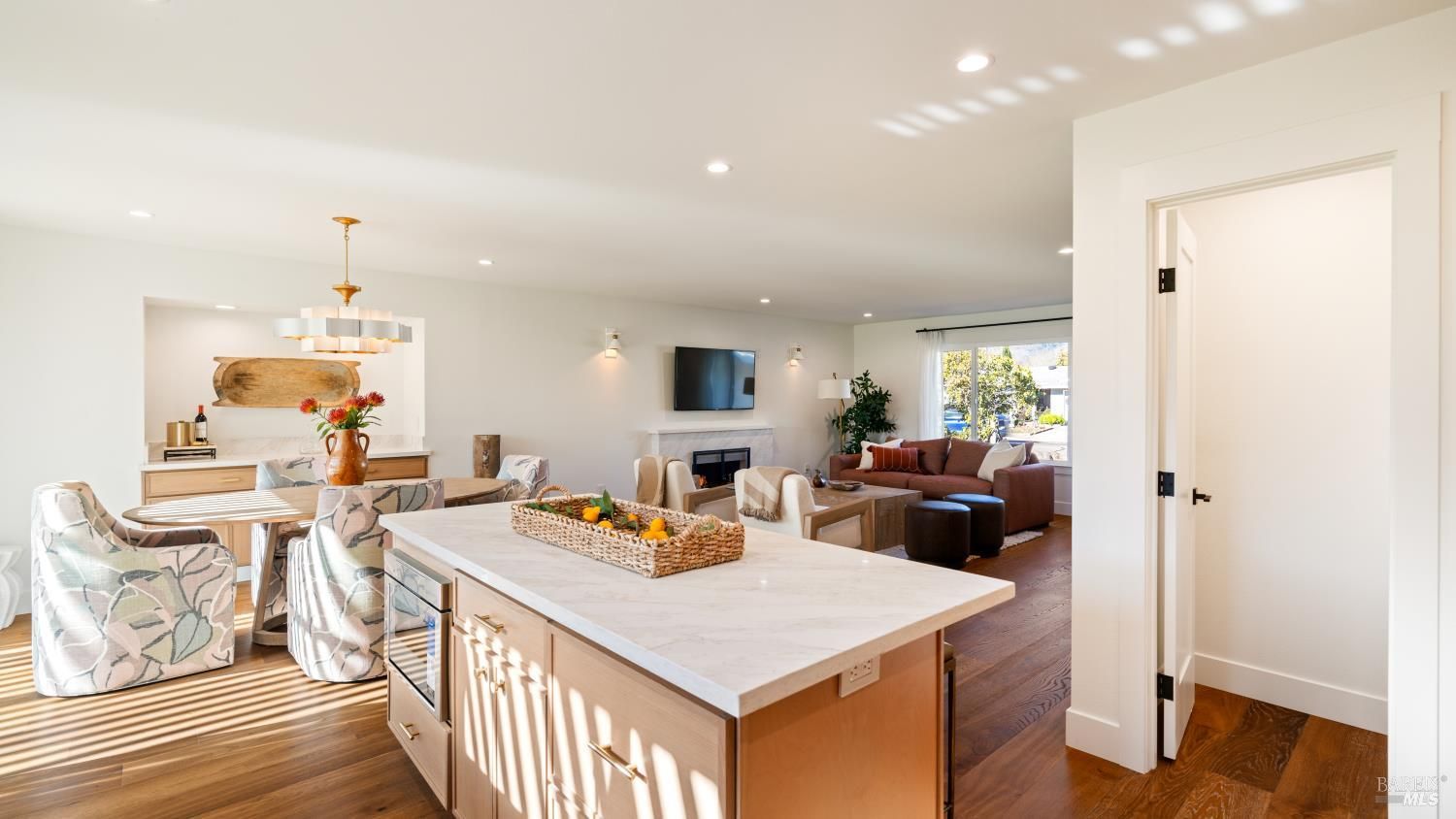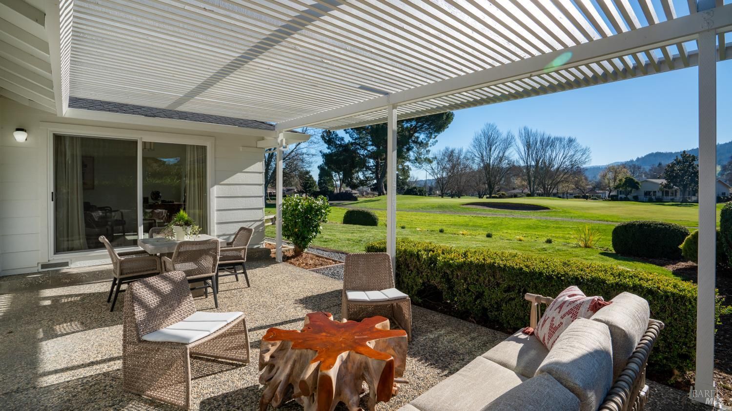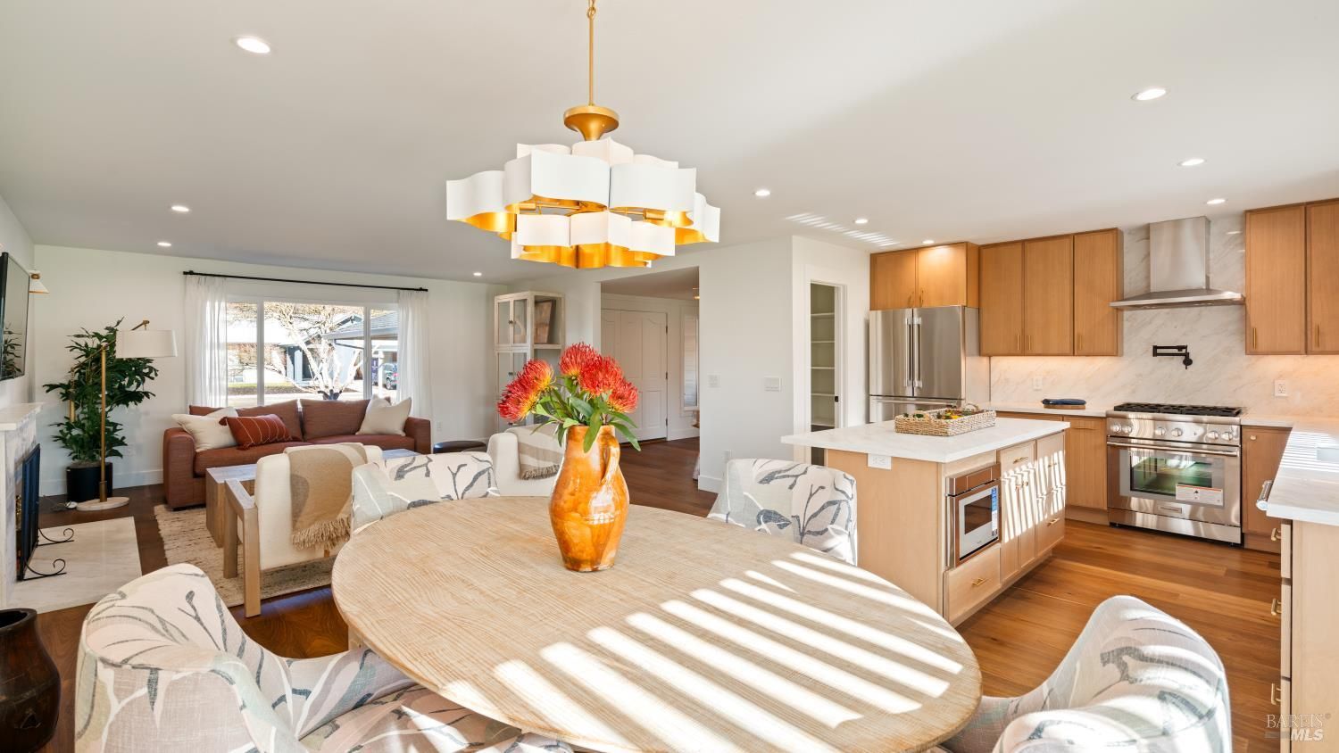 An exceptional opportunity to own a superbly renovated Oakmont home! This stunning 3-bedroom, 2-bathroom residence spans 1,860 square feet and offers breathtaking mountain views from its location on the golf course. Completely reimagined, it features custom wood kitchen cabinetry, top-of-the-line Thermador appliances, a convenient pot filler, elegant quartz countertops, a spacious island with a built-in drawer microwave, and a stylish bar area. The home boasts hardwood floors, new doors, windows, and window coverings, a new roof, upgraded air conditioning and heating systems, an epoxy-coated garage floor, and modern designer and recessed LED lighting throughout. The open-concept kitchen flows seamlessly into the dining and living areas, highlighted by a beautiful fireplace. The third bedroom is beautifully styled as a home office, also with a fireplace and a sliding door to the back patio. The meticulously maintained property includes a charming covered backyard patio perfect for sunset views and wildlife watching, along with a freshly landscaped yard with updated irrigation. Don't miss out on this extraordinary gem! Oakmont is a vibrant 55+ active adult community offering swimming, hiking, tennis, pickleball, golf, and more, nestled in the heart of Sonoma County's renowned Wine Country.