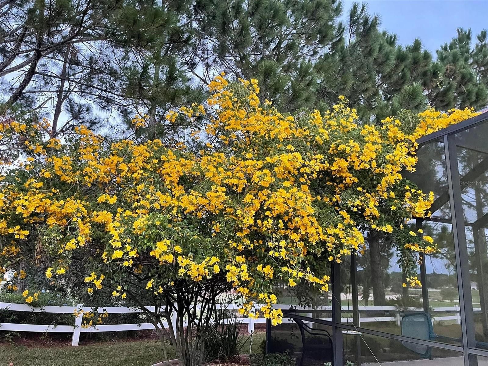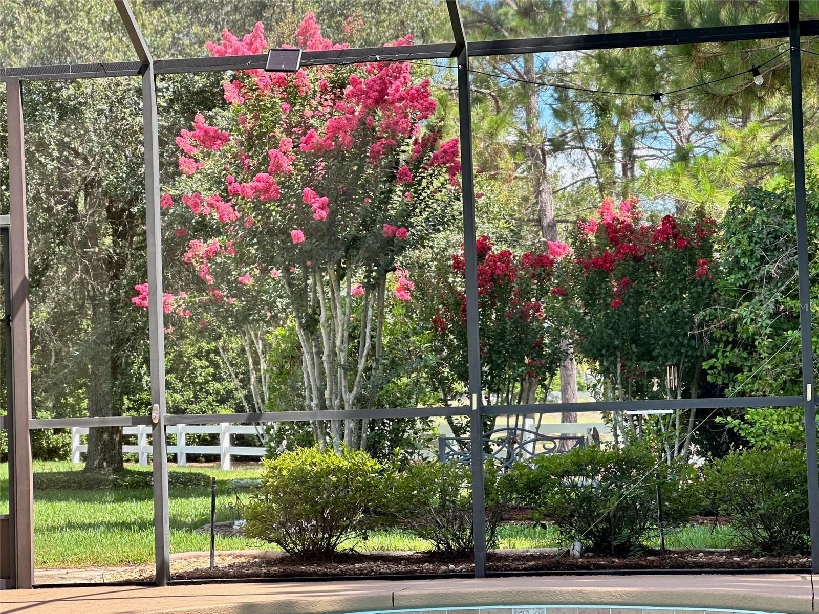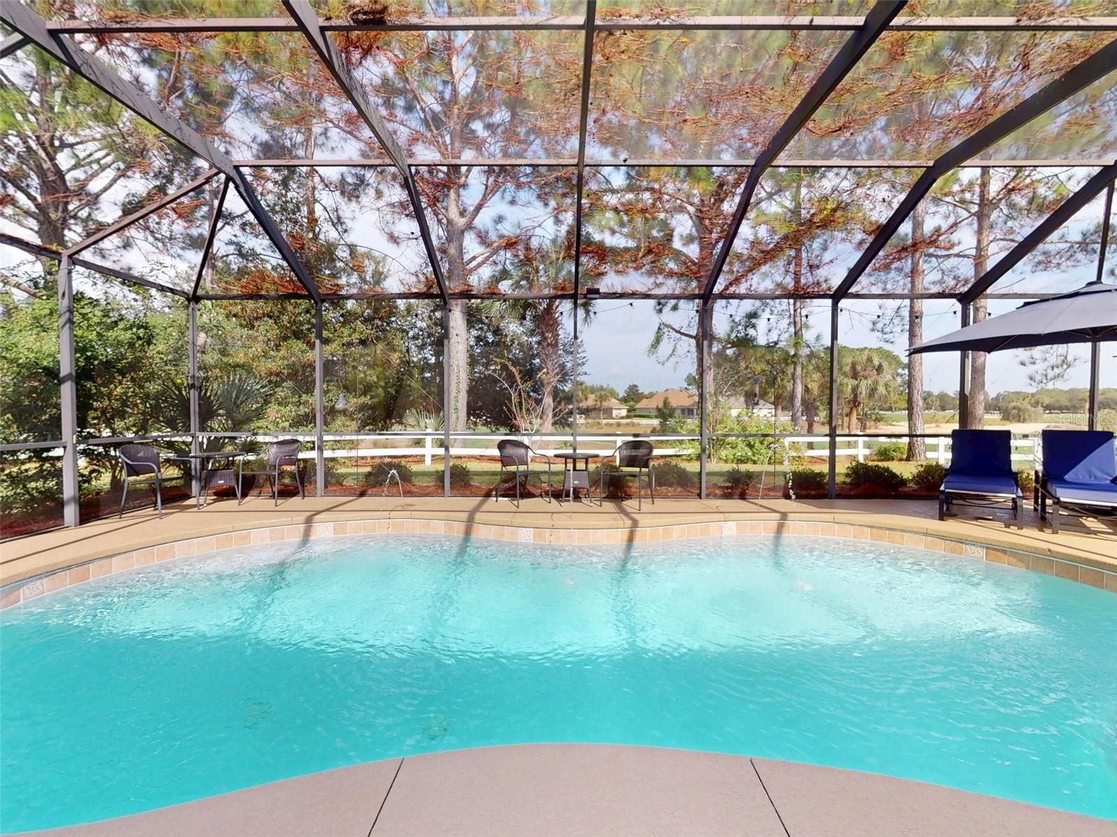 A place where classic charm and comfort meet sophistication, this Candler Hills home is designed with both heart and intention. This property offers an experience, a retreat from the ordinary. A blend of tranquility and accessibility, it combines timeless design and contemporary living. The entrance has a rocking porch and new stained-glass door. A place where luxury meets livability, every detail has been thoughtfully considered, from the professional landscaping to Vinyl Luxury Flooring throughout, custom crown moldings and unique lighting fixtures. The open-floor plan creates a seamless flow between living spaces while allowing each room its unique charm. On a private cul-de-sac, this saltwater pool home overlooks the 13th hole of the Candler Golf Club. The front façade has classic stone accents and oversized windows which are tinted for the afternoon heat. The paver walkways lead to a two-car garage with automated privacy screen and mature landscaping that include a winding path to vibrant perennial gardens. Property boundaries are defined on both sides by flowering trees which surround this large, oversized lot. The backyard offers a sanctuary for relaxation and entertainment, featuring a Gunite pool with water features, freshly painted deck and screened enclosure — perfect for quiet morning coffee and fun gatherings with friends. The living room is opened to the pool deck with the dining room flows straight into the living area. The kitchen is a chef’s delight: new cabinets, under lighting, quartz counters and tiled backsplash, along with a closet pantry and breakfast nook. Stainless steel appliances include a five-burner gas range with double oven (convection too) and microwave with fan. The refrigerator offers French doors and two separate freezers below which can be individually programed. The master bedroom, bath, and walk-in closet are generous featuring a walk-in closet, locked drawer space for jewelry, and two large double files for all your important documents. There is even a small safe! In the bath area, double sinks with stone counter tops grace the new 90-inch vanity, linen closet, soaking tub and a walk-in shower with clear glass doors. The private toilet area has a Smart Bidet which completes the spa-like experience. On the opposite side, two guest bedrooms are divided by a Jack and Jill bathroom, new cabinetry, linen closet, private toilet, tiled rain shower with glass enclosure. By closing the second door, you immediately make the 2nd bedroom its own en-suite. Laundry room has newer top loading washer, gas dryer, lots of shelving in addition to a storage closet. New roof, new heating and cooling system, new passive solar heating for the pool as well as a whole house Generac gas generator, water filtration system and insta-hot tankless hot water system complete this amazing package.