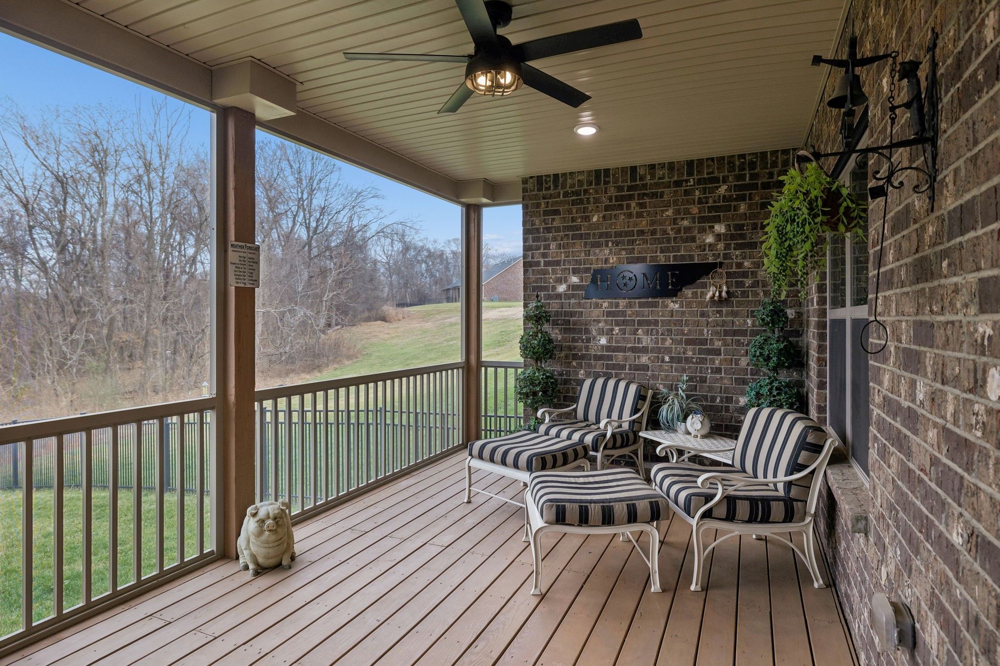 You will love this well-kept one level, 2 bed 2 bath Villa in the popular and beautiful Stonebridge neighborhood. As you drive in the entrance to Stonebridge you will be wowed by the sparkling pond, fountain and lush landscaping. When you pull in the driveway, you will notice the great curb appeal immediately: the stone and brick exterior is beautiful and the peaked elevation impressive. The home has engineered hardwood throughout - no carpet. Crown molding is in every room, and a deep tray ceiling in the master. The kitchen has a natural gas stove, farmers ceramic sink, soft close on all drawers and cabinets in the kitchen and bathrooms, tasteful backsplash, quartz counters, the oven can air fry, large pantry and a huge island with plenty of counter seating. The spacious screened-in deck overlooks a serene wooded backyard, which is fully fenced for a furry friend. There are 5 ceiling fans throughout the house, a sink in the garage, extra large laundry room with a deep walk-in storage closet, and an automatic shade on the sliding glass door for convenience and privacy. There is smooth rounded corner construction on all the arched walls, and sinks and toilets are at comfort height. This home is like new!!! And the backyard wooded view is something to be enjoyed every evening from the privacy and comfort of your spacious screened-in deck - possibly a beverage in hand.