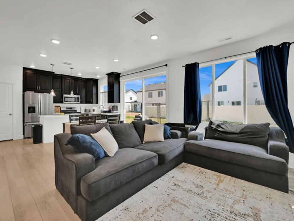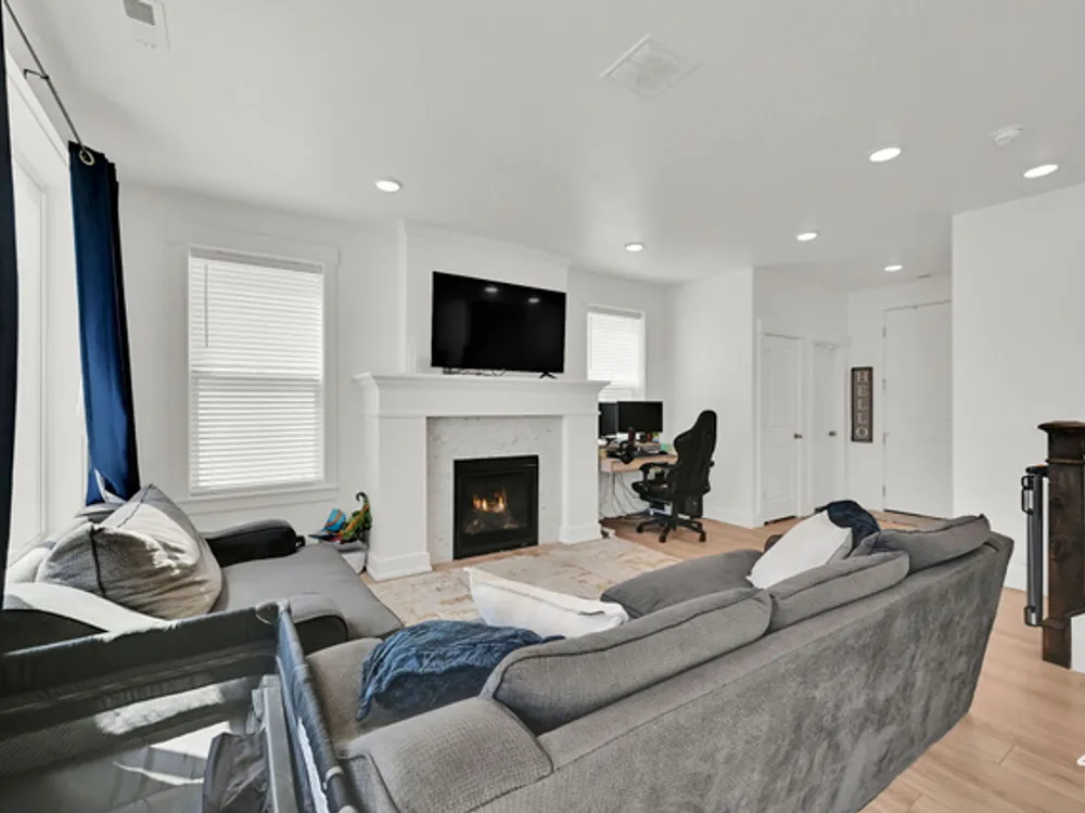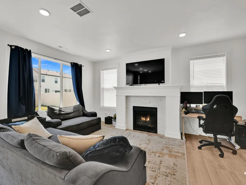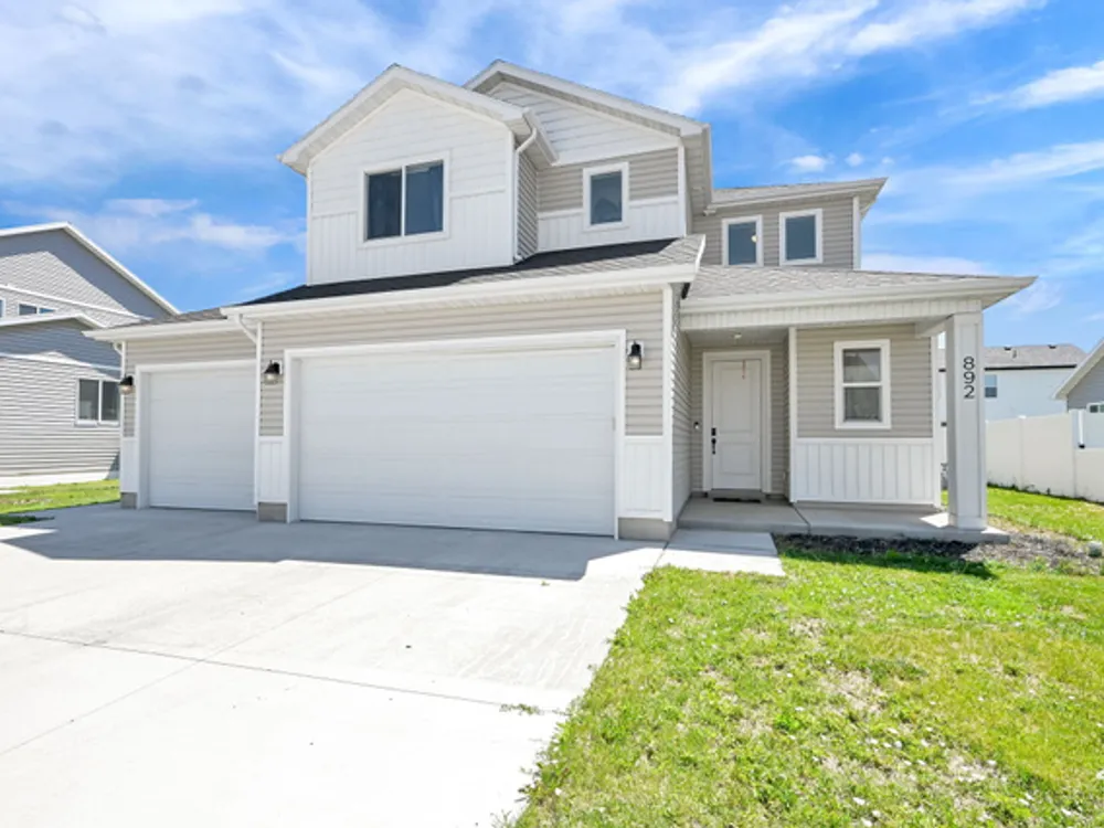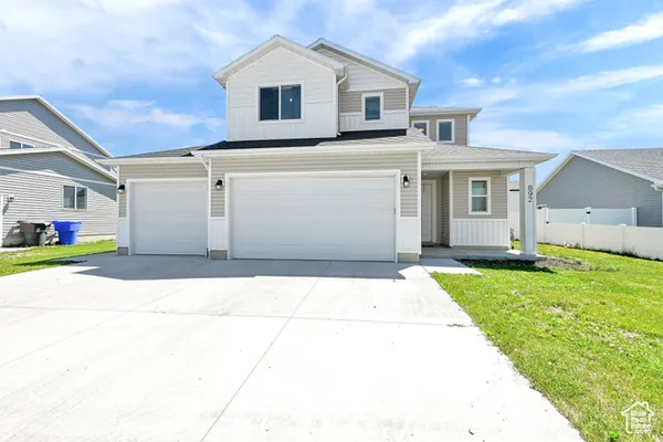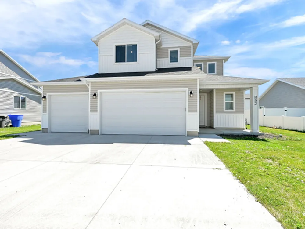 ASSUMABLE 4.25% FHA LOAN!!! Brand new carpet!!! This modern single family home built in 2021 offers 1,547 sq ft of thoughtfully designed living space, featuring 3 bedrooms, 2 baths, and a three car attached garage-ideal for those seeking extra storage or workspace! Step inside to discover an inviting open floor plan framed by 9 foot ceilings, a cozy fireplace, and abundant natural light streaming through large windows. The kitchen is a delight, showcasing quartz countertops, sleek cabinetry extending to the ceiling, stainless steel appliances with a gas range, and a spacious pantry-perfect for those who love to cook or entertain. Retreat to the private primary suite featuring a luxurious walk in shower, generous closet space, and a serene atmosphere. Two additional bedrooms are well-appointed, supported by a full bathroom and a convenient half-bath for guests. Nestled on a quiet street, this home provides both tranquility and accessibility.