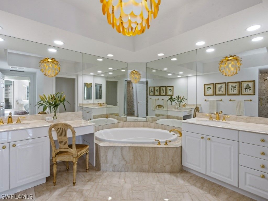 Seamless, Sophisticated and Sunset-driven. Welcome to Salerno 703, a reimagined three-bedroom, three-bath residence in the prestigious enclave of Bay Colony. Western exposure bathes this home in golden afternoon light and captures breathtaking sunsets over the Gulf, a dynamic backdrop that transforms from day to night. Thoughtfully redesigned for today’s modern coastal lifestyle, the wall between the kitchen and living room has been removed to create a light-filled Great room where architecture disappears and the views take center stage. At its center, an exquisite marble peninsula anchors the space creating a stunning focal point and natural gathering place. Generous in scale, it offers ample seating for casual dining, morning coffee, or elegant entertaining. Sub-Zero, Wolf and Miele appliances offer culinary performance while showcasing sleek design. The spacious primary suite is a private retreat, while two additional guest bedrooms and full baths provide comfort and privacy for family and friends. Beyond the residence, Bay Colony offers a lifestyle reserved for the fortunate few with private beach access and attended service, a tennis center, an exclusive beach club and restaurant and beautifully maintained grounds. As a homeowner, you will further enjoy all the amenities of Pelican Bay, Southwest Florida’s most desired beachfront community.