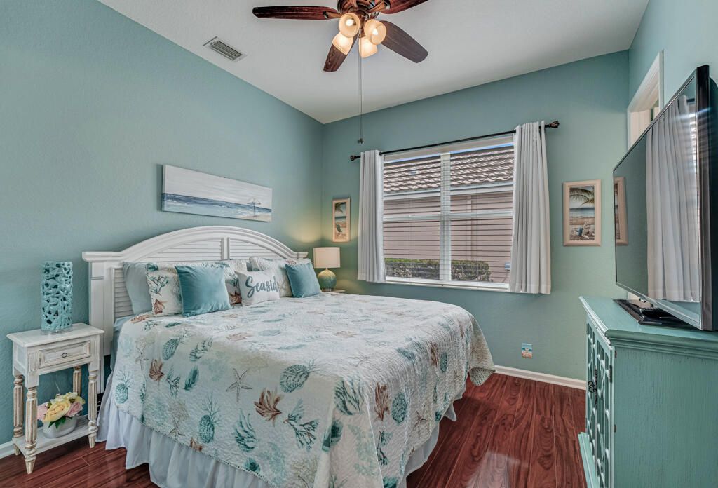 Stunning lakview, and gorgeous landscaping on a private cul de sac location!! Beautiful and Pristine Venetian Floor Plan offers 3 FULL BEDROOMS (TWO OF WHICH HAVE PRIVATE BATHS) PLUS DEN/OFFICE! Beautiful new kitchen has an extra large eating area that can double as another den. The large great room looks onto oversized screened patio. No Carpet! The primary suite offers a lovely bay window that overlooks a panoramic lakeview. Crown molding newer washer and dryer, hunter douglas window treatments, attic stairs, automatic door locks, and so many more perks to this immaculate home. Venetian Isles is the latest rage! Resort living at its finest! Brand New & exquisite clubhouse is not only stunningly gorgeous but truly has it all! First you have an elegant lobby with an elevator that brings you to an upper level lounge and rooftop bar that leads out to a fabulous rooftop patio. The entire indoor and outdoor upper level overlooks the pools, lake cabanas and veranda. Then on the main level you'll find the restaurant, card rooms, library, billiards, arts and crafts center, fabulous new social hall with brand new stage and sound booth and more. New state-of-the-art Clubhouse w/restaurant, Mezz/rooftop bar, card rooms, arts & crafts, billiards, library, social hall w/shows/parties/entertainment all year round. Gym & Yoga Studio offer fitness classes, personal trainers & workout eqpt. Pickle Ball, Tennis, Bocce, Putting Green, resistance pool & large pool