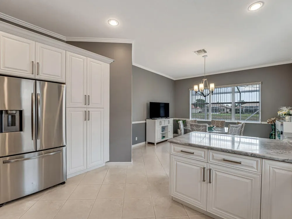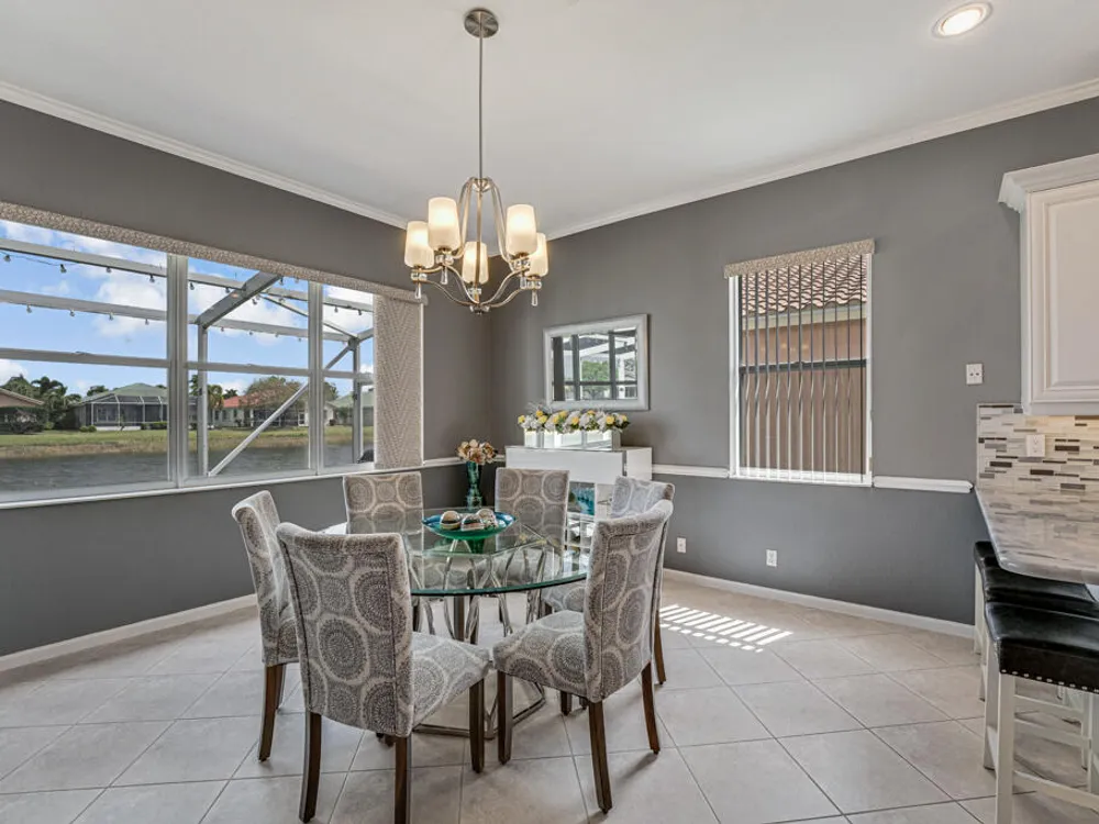 Stunning lakview, and gorgeous landscaping on a private cul de sac location!! Beautiful and Pristine Venetian Floor Plan offers 3 FULL BEDROOMS (TWO OF WHICH HAVE PRIVATE BATHS) PLUS DEN/OFFICE! Beautiful new kitchen has an extra large eating area that can double as another den. The large great room looks onto oversized screened patio. No Carpet! The primary suite offers a lovely bay window that overlooks a panoramic lakeview. Crown molding newer washer and dryer, hunter douglas window treatments, attic stairs, automatic door locks, and so many more perks to this immaculate home. Venetian Isles is the latest rage! Resort living at its finest! Brand New & exquisite clubhouse is not only stunningly gorgeous but truly has it all!