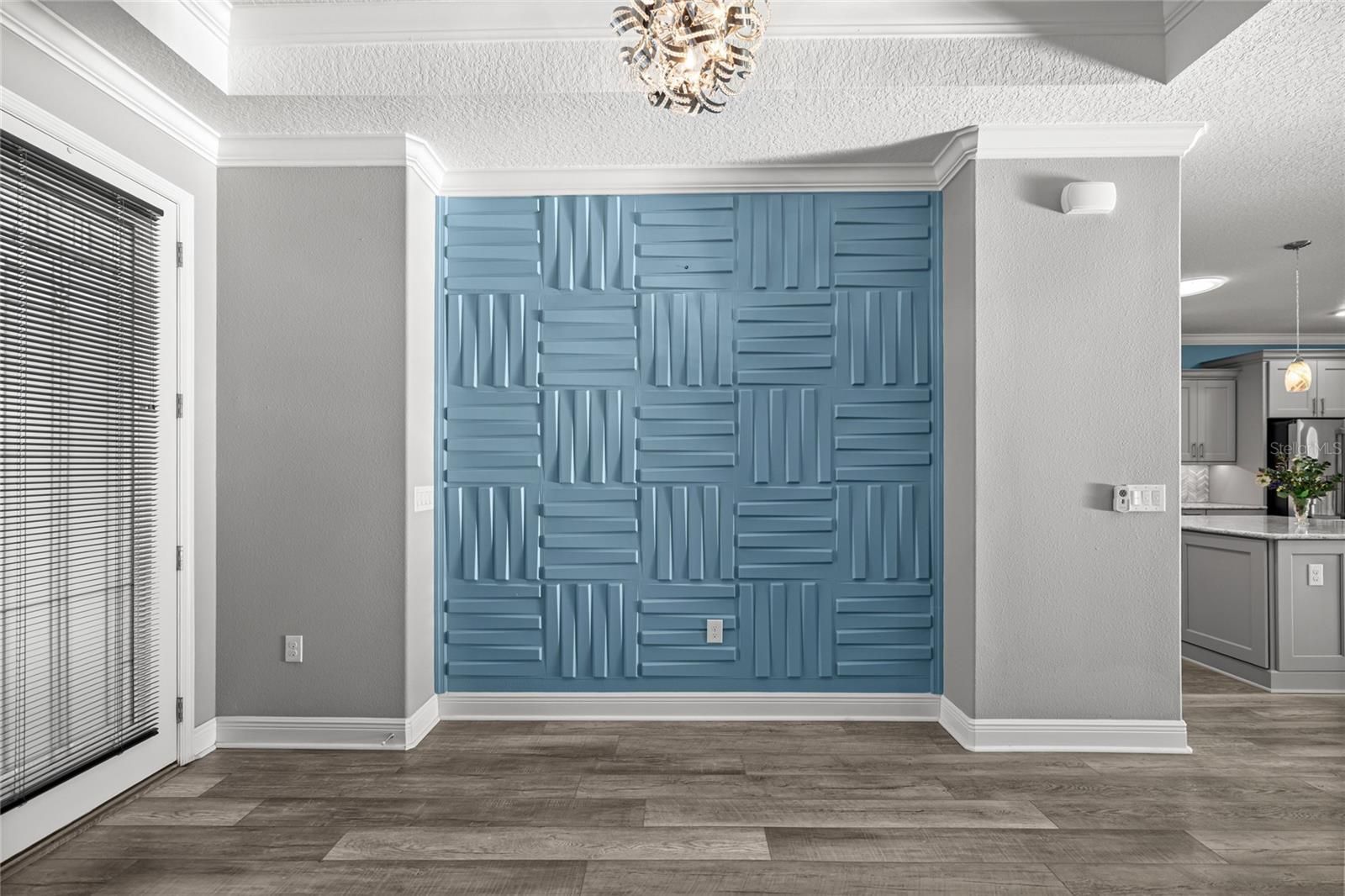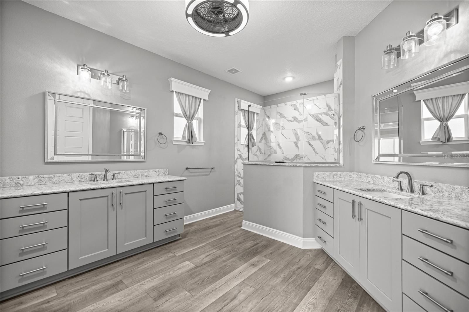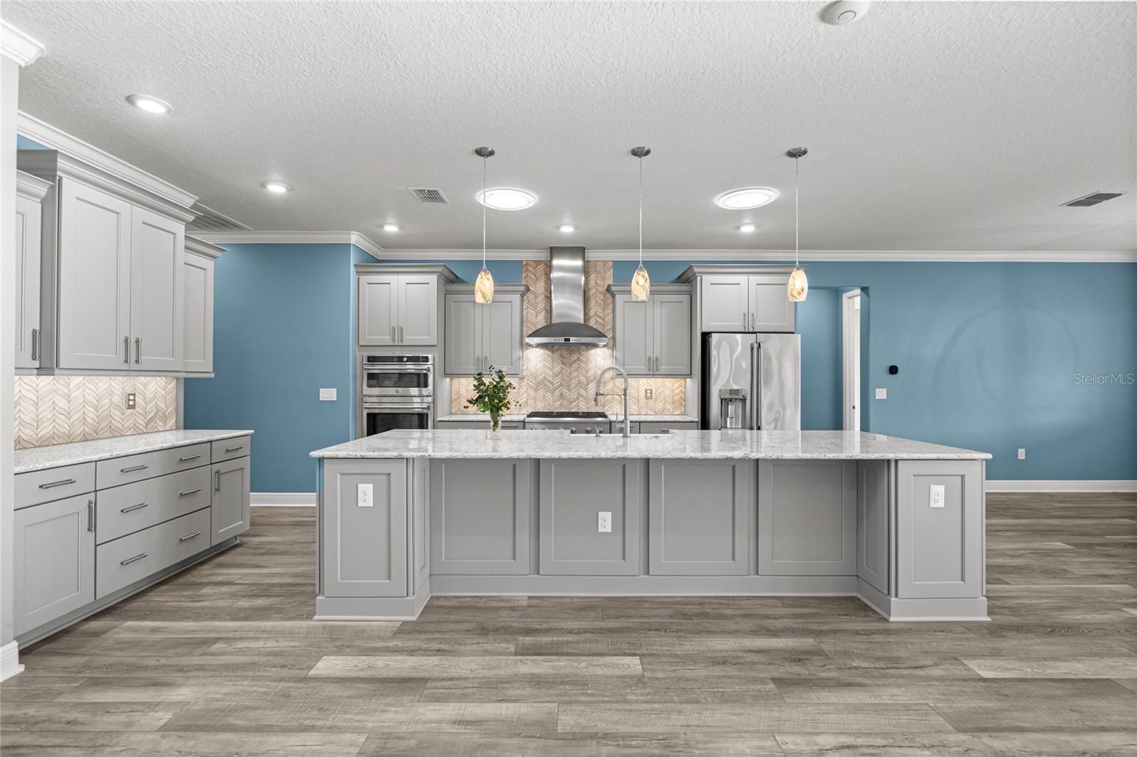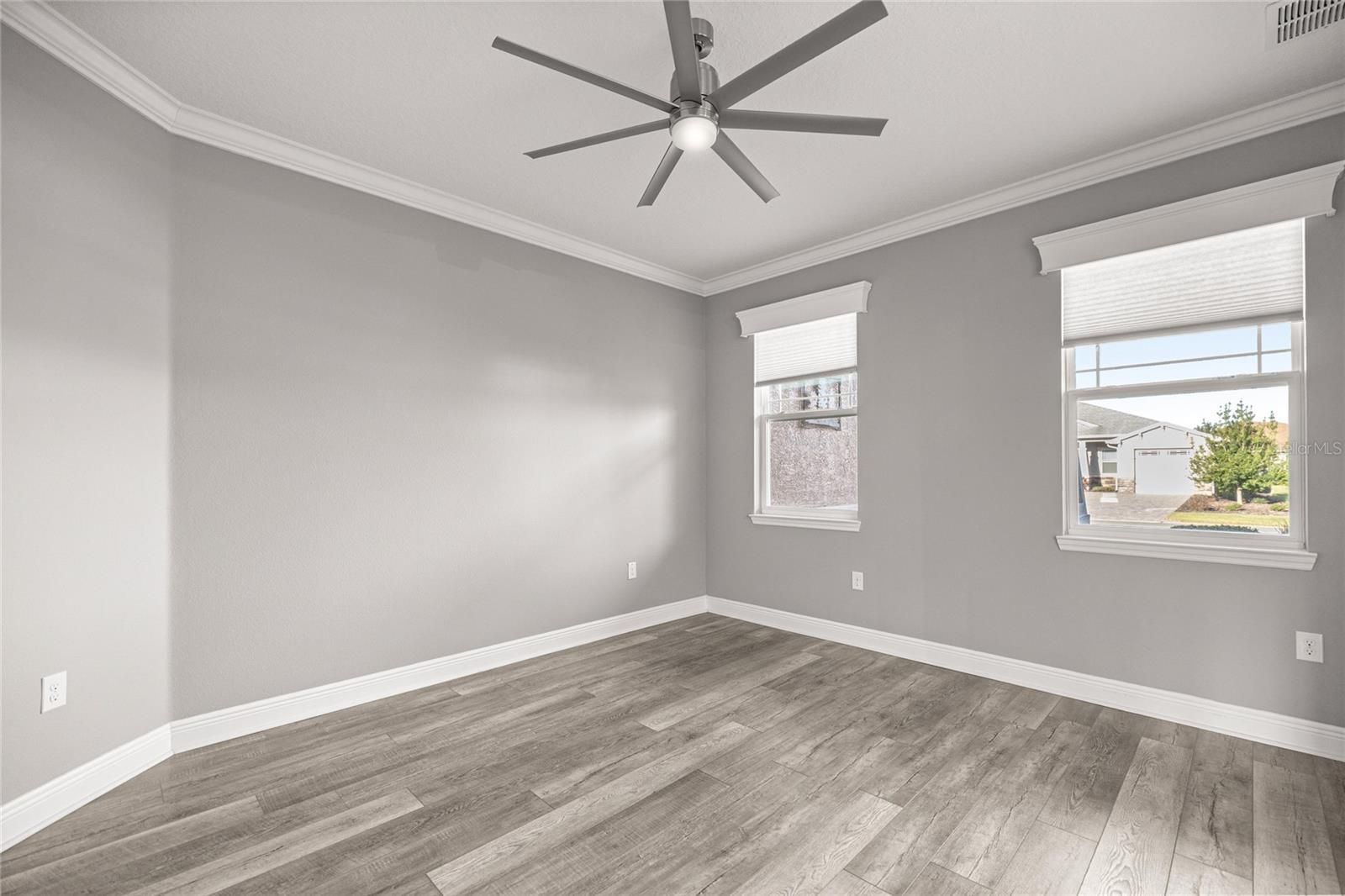 - Ceiling Fan(s), Crown Molding, Eat-in Kitchen, High Ceilings, Kitchen/Family Room Combo, Open Floorplan, Stone Counters, Thermostat, Walk-In Closet(s), Window Treatments