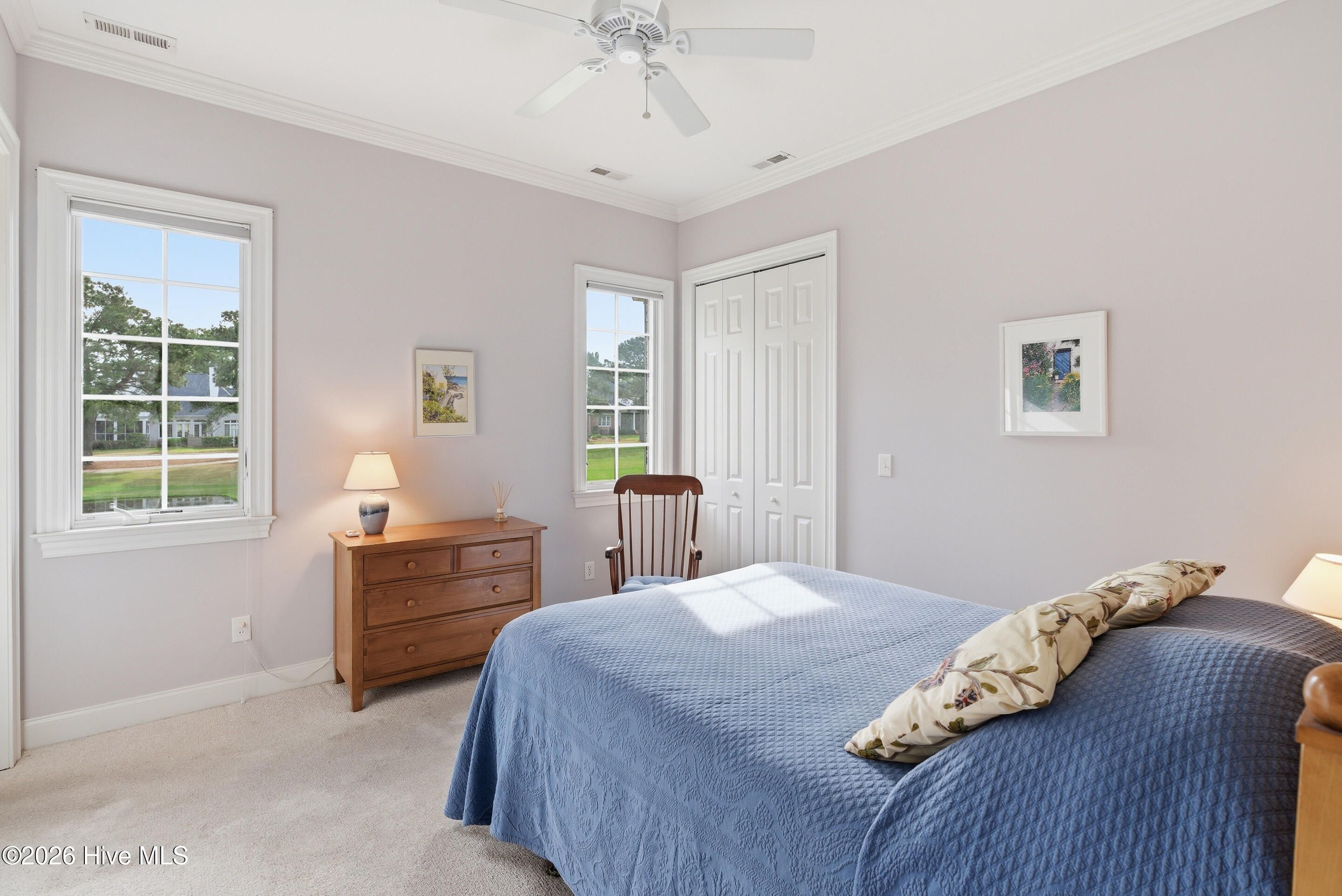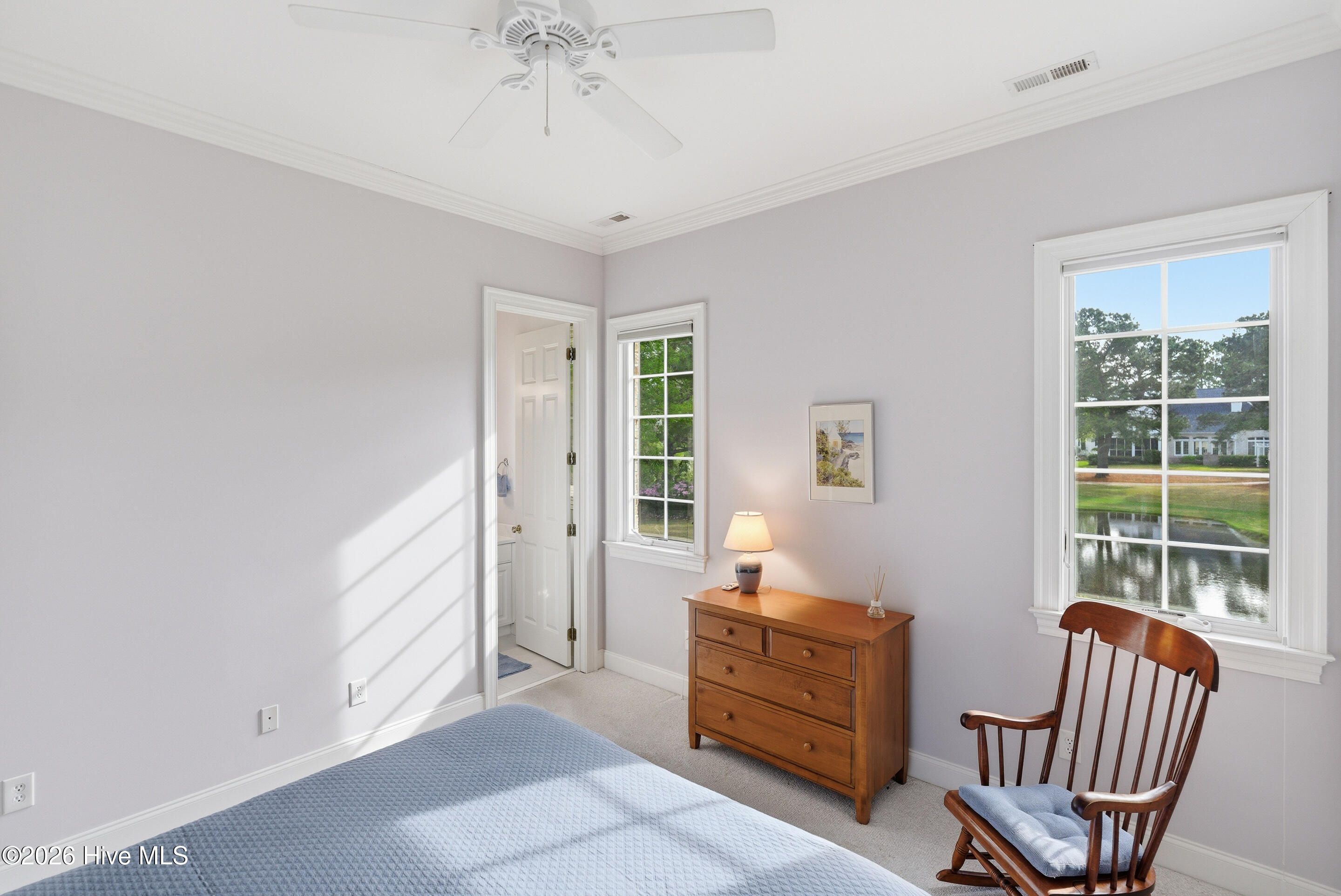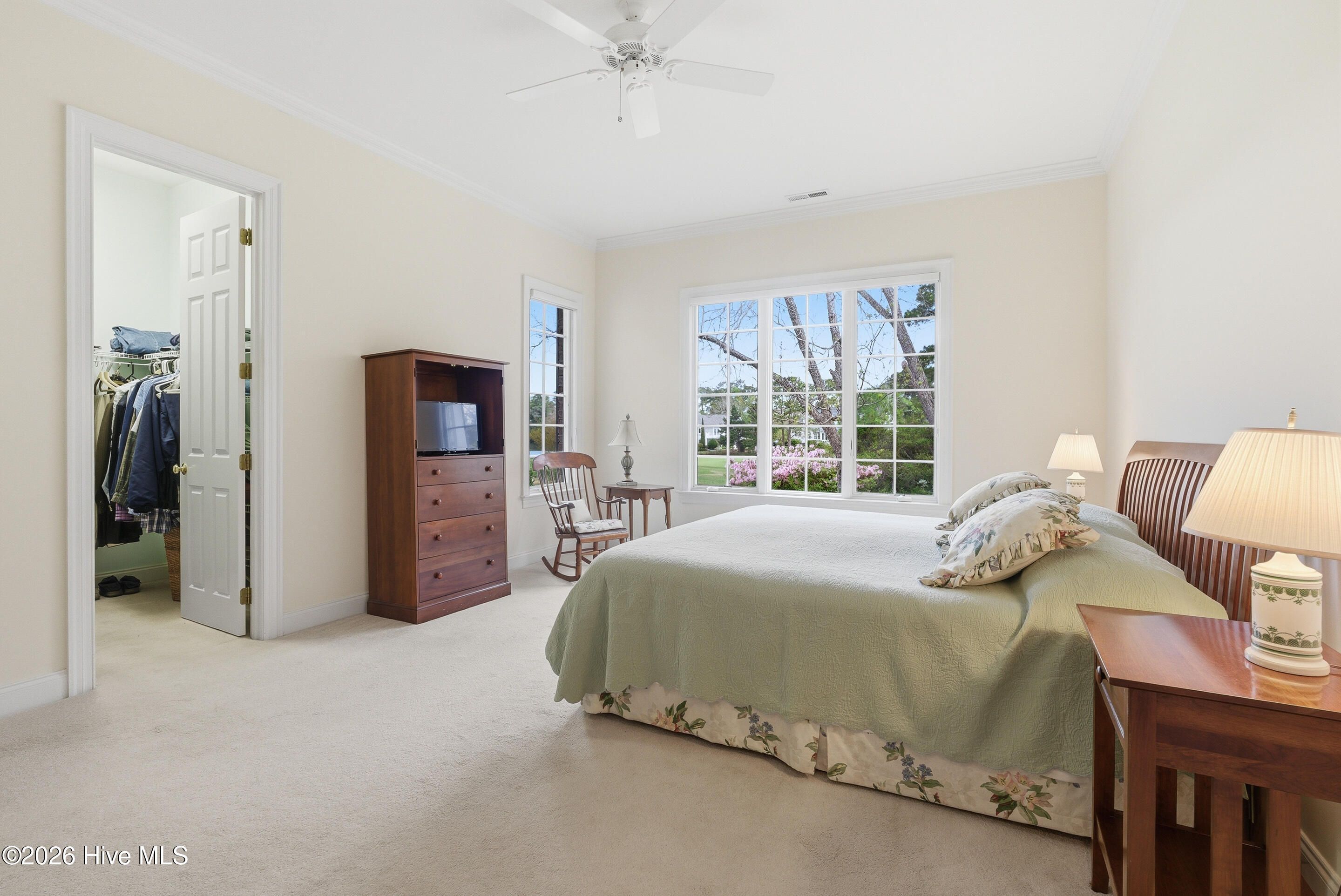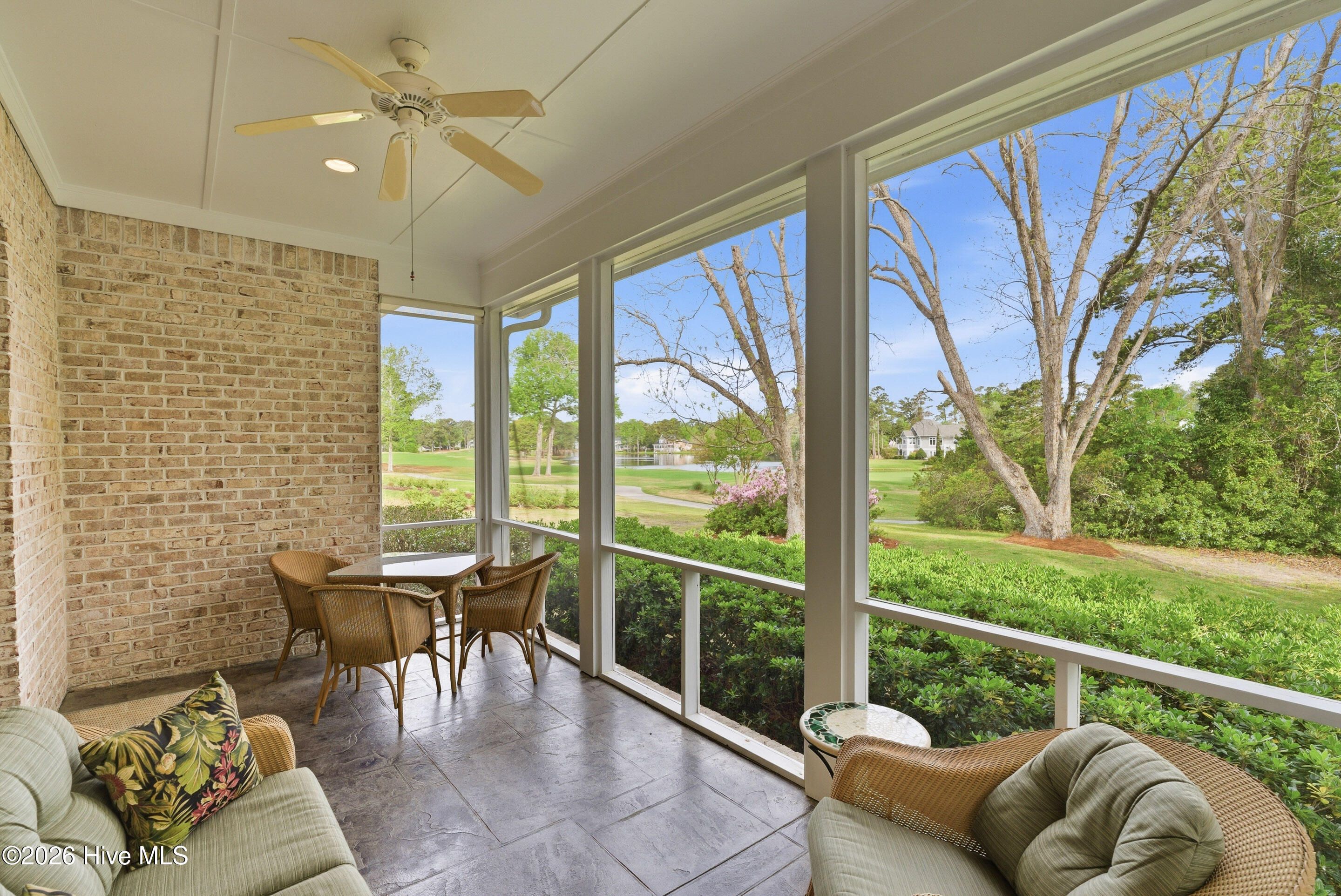 Nestled on a private street within sought-after Porters Neck Plantation, this 4-bedroom, 3-bath brick home offers exceptional privacy, a spacious lot, and beautiful water and golf course views overlooking both the 14th and 15th holes. Immediately upon entering, your eye is drawn to the stunning water and fairway views, creating a striking first impression. Designed for comfortable everyday living, the home features primarily first-floor living with a flexible bonus room upstairs, ideal for guests, a home office, or additional recreation space. A screened porch provides the perfect setting to relax and enjoy the peaceful surroundings, while the spacious primary suite includes separate his-and-her closets for added convenience. Recent updates include a roof and an HVAC unit. The property also benefits from a shared irrigation well, adding to the home's overall efficiency and functionality. Combining timeless brick construction, a desirable floor plan, and a breathtaking setting, this home presents a wonderful opportunity in one of Wilmington's most established gated communities. Memberships to Porters Neck Plantation are available, offering access to a variety of lifestyle amenities.