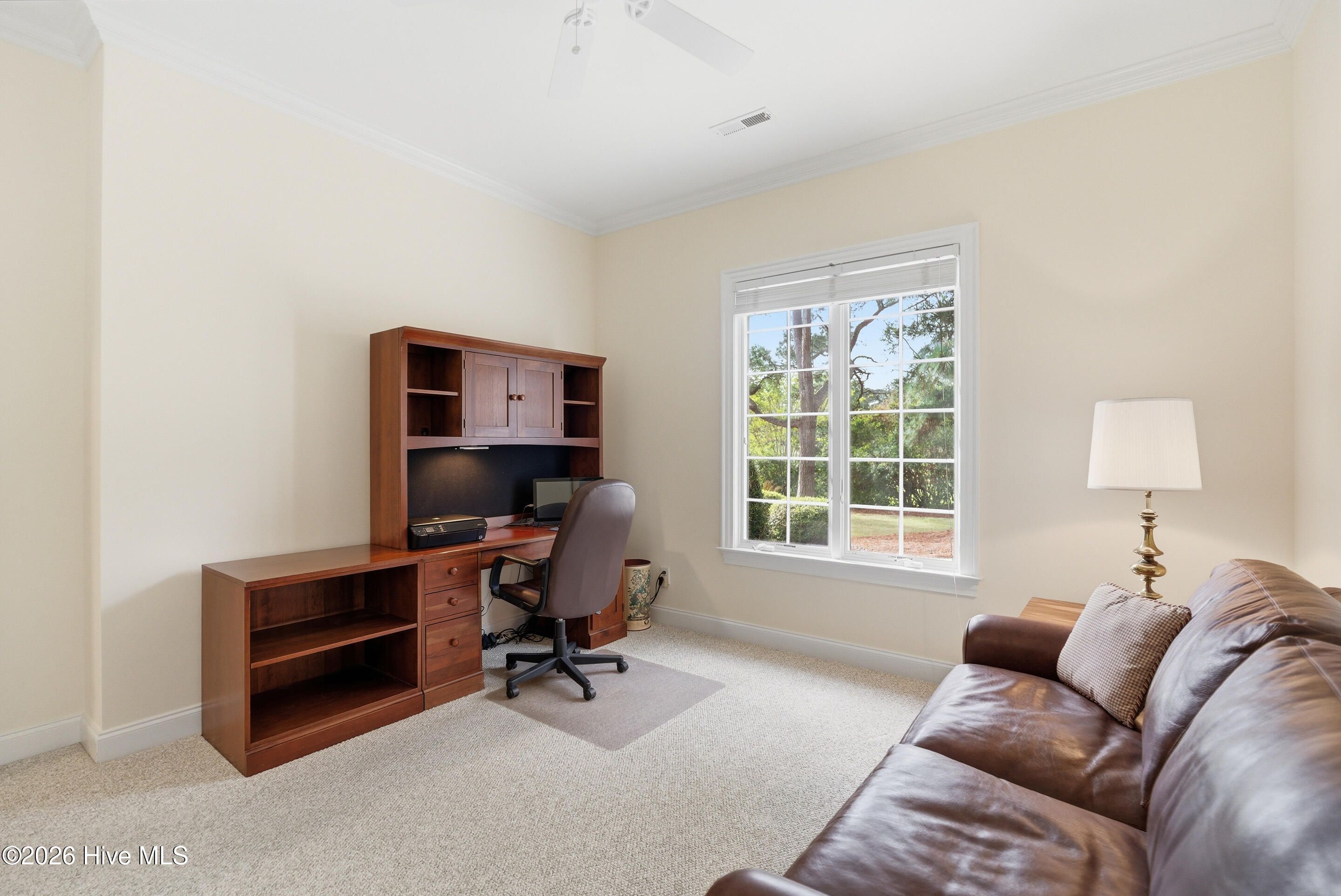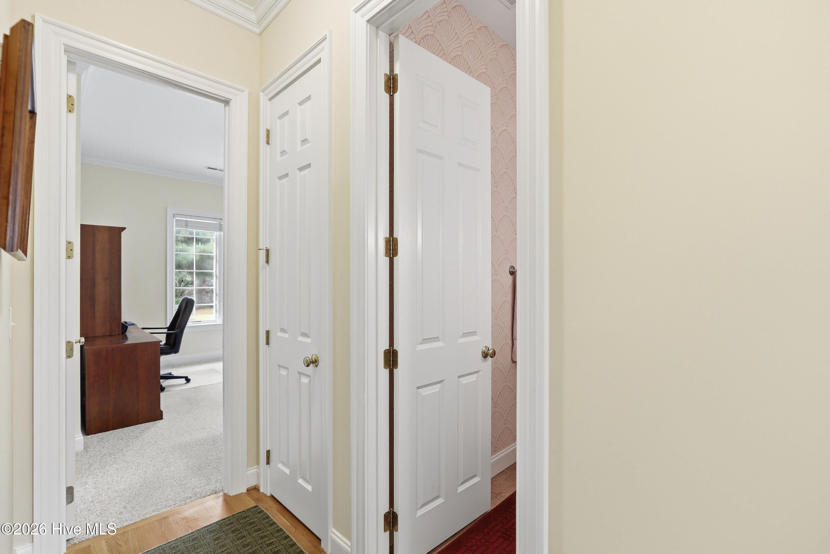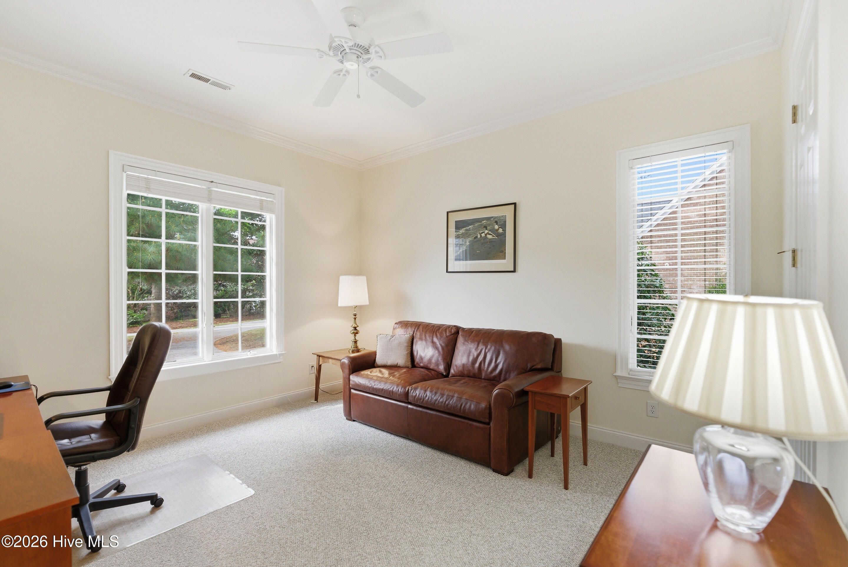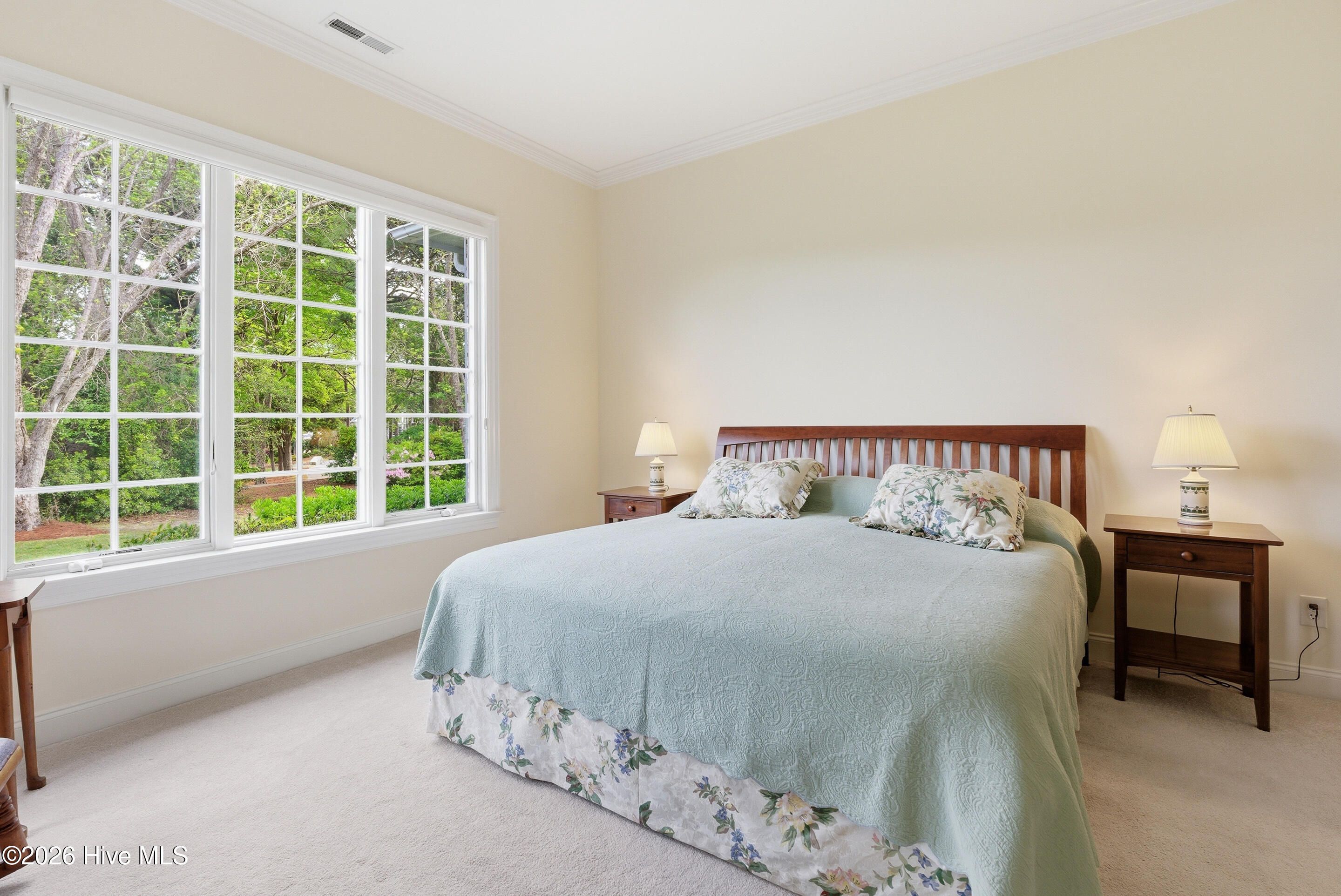 Nestled on a private street within sought-after Porters Neck Plantation, this 4-bedroom, 3-bath brick home offers exceptional privacy, a spacious lot, and beautiful water and golf course views overlooking both the 14th and 15th holes. Immediately upon entering, your eye is drawn to the stunning water and fairway views, creating a striking first impression. Designed for comfortable everyday living, the home features primarily first-floor living with a flexible bonus room upstairs, ideal for guests, a home office, or additional recreation space. A screened porch provides the perfect setting to relax and enjoy the peaceful surroundings, while the spacious primary suite includes separate his-and-her closets for added convenience. Recent updates include a roof and an HVAC unit. The property also benefits from a shared irrigation well, adding to the home's overall efficiency and functionality. Combining timeless brick construction, a desirable floor plan, and a breathtaking setting, this home presents a wonderful opportunity in one of Wilmington's most established gated communities. Memberships to Porters Neck Plantation are available, offering access to a variety of lifestyle amenities.