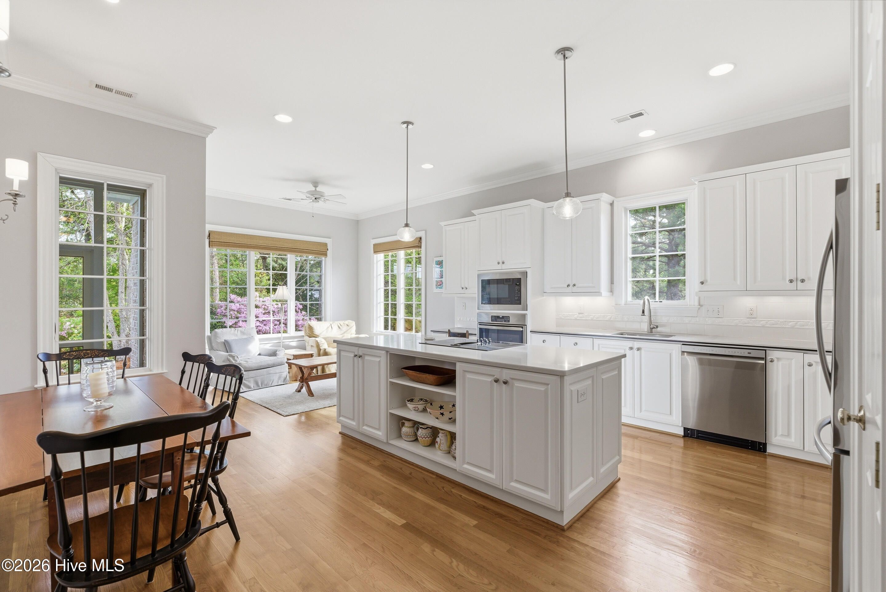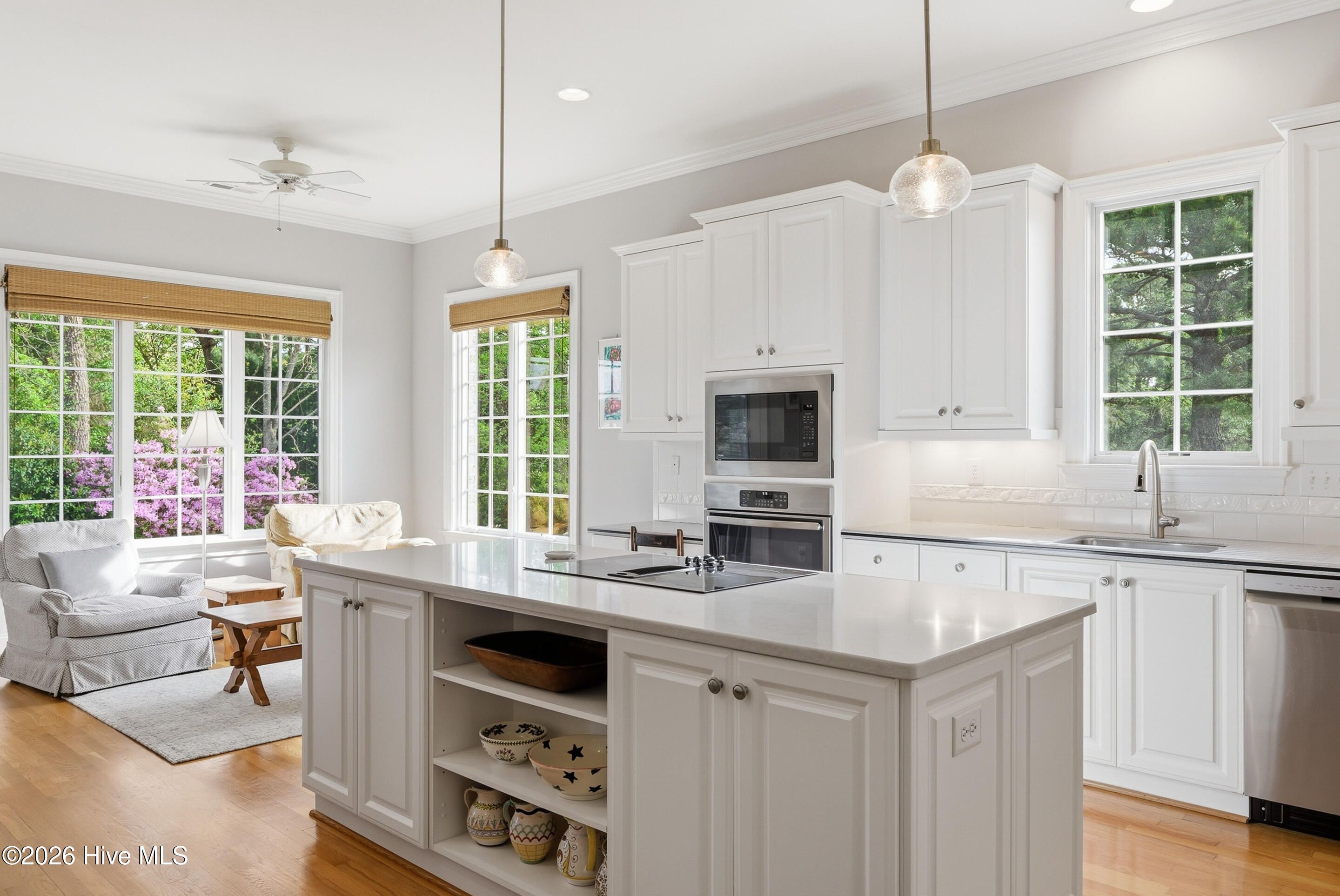 - Walk-in Closet(s), High Ceilings, Bookcases, Kitchen Island, Walk-in Shower