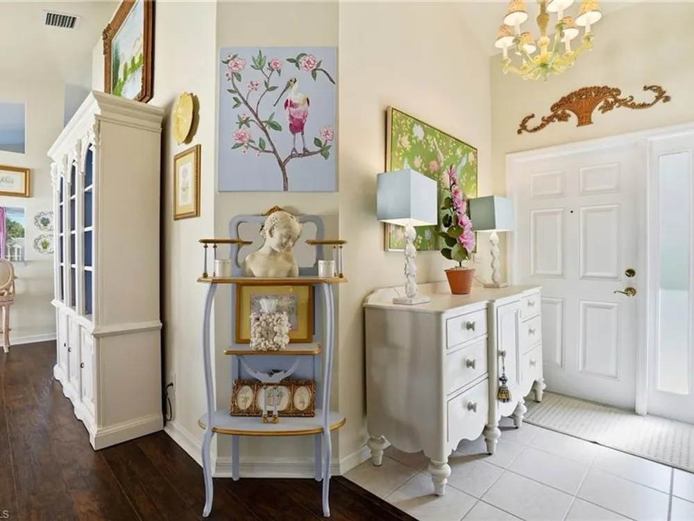 Welcome to this beautiful home in Cascades at Estero, a premier 55+ active lifestyle community in the most sought-after location, offering resort-style living and a vibrant social scene. The home features 2 bedrooms + a den, 2 baths, and a convenient 2 car garage. This Carrington floor plan is situated on a desirable lakefront lot, with stunning views from your wrap-around screened lanai that creates a peaceful, relaxing backdrop every day. The kitchen boasts quartz countertops, a spacious island, and a stainless steel appliance package, perfect for cooking and entertaining. Recent updates include a new microwave, water heater, and A/C installed in 2023, ensuring efficiency and reliability. The community offers low HOA fees and a dynamic calendar of social events, recreational sports, and top-tier amenities, including both indoor and outdoor swimming pools, a well-equipped fitness center, billiard room, pickleball courts, and more, making Florida living effortless and enjoyable. The HOA covers cable and internet services, as well as landscaping, providing added convenience and value. Located just minutes from shopping and dining, with quick access to I-75, US-41, and RSW Airport, this property presents an exceptional opportunity to own in Estero. Don’t miss your chance and schedule a tour today.
