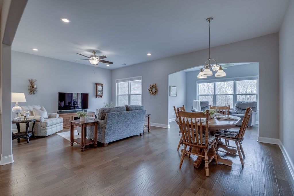 Don't miss this immaculate 3 Bed, 3 Bath Georgetown floor plan with upgraded gourmet kitchen and the view that everybody wants!! Situated on the back view lots of the amazing Stonebridge community, sits this pristine, sought-after villa with beautiful upgrades, and a beautiful view of the wooded ravine! The beautiful kitchen features upgraded cabinets, double oven, gorgeous countertops and refrigerator included. The main level features 2 beds, 2 full baths (including primary suite), den/sunroom, family room, dining room, kitchen, laundry room and 2-car garage. Upstairs you will find a 3rd bedroom, 3rd full bathroom, a bonus room, office nook, and attic storage. This home offers comfortable, single-level living with the perfect guest retreat, movie room, recreation area, or whatever your heart desires, upstairs. Stonebridge has the most amazing amenities! The clubhouse features a large lounge area, game room, ballroom, catering kitchen, fitness center and bathrooms. Outdoor amenities include an amazing beach entry pool, kiddie pool, jacuzzi, playground and picnic tables. There is an extensive list of HOA clubs to join, such as the Bridge Club, Golf Club, Samba dance, Poker Club, Book Club and more!! This is a very active, beautiful community and zoned for highly sought after Wilson County schools and low property taxes. What more could you ask for?