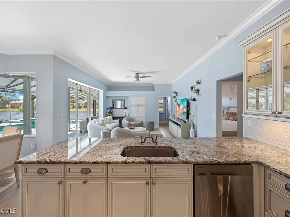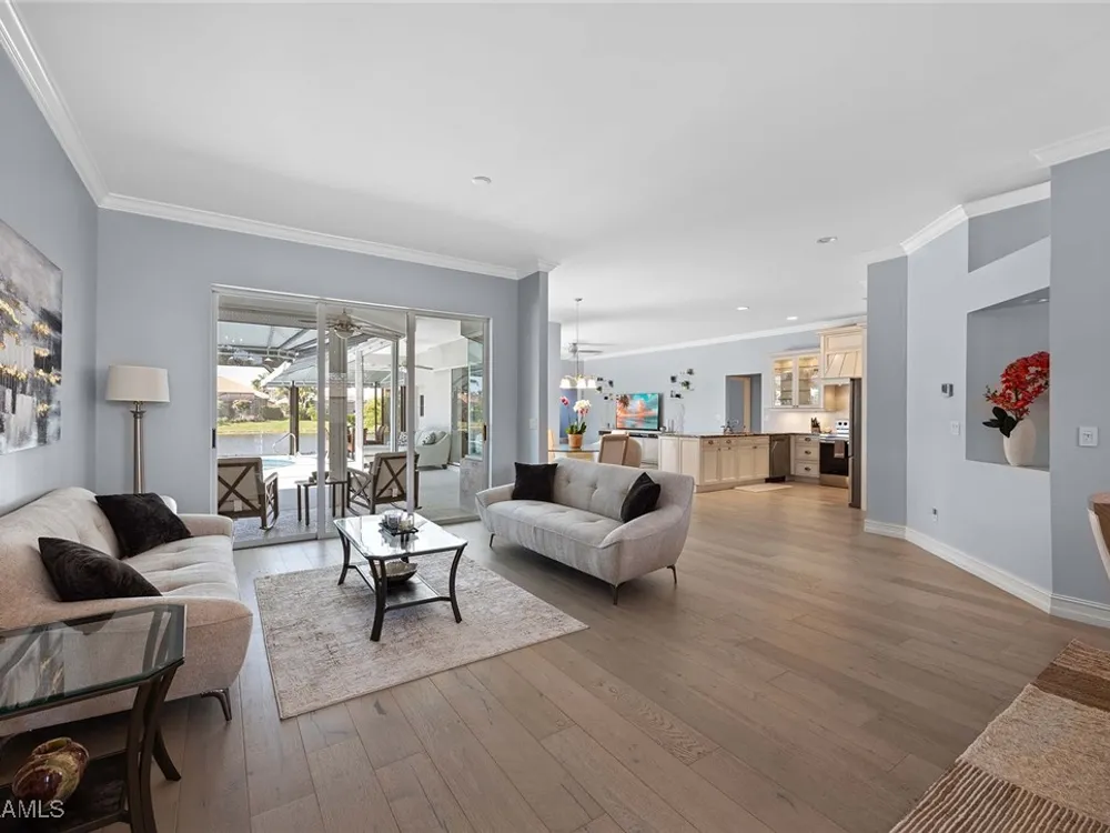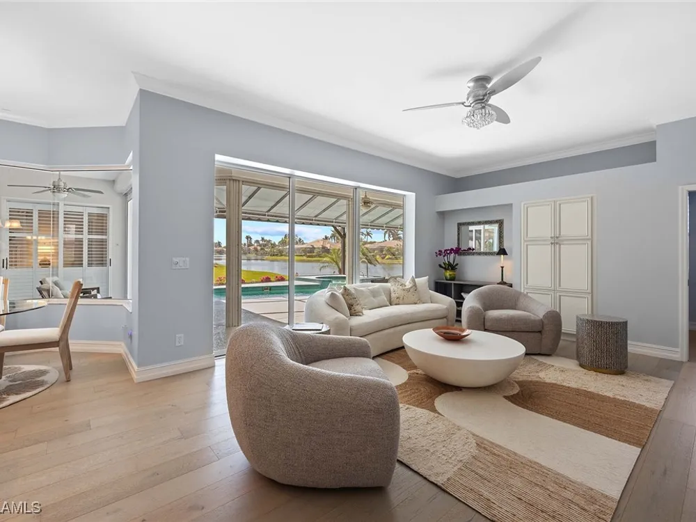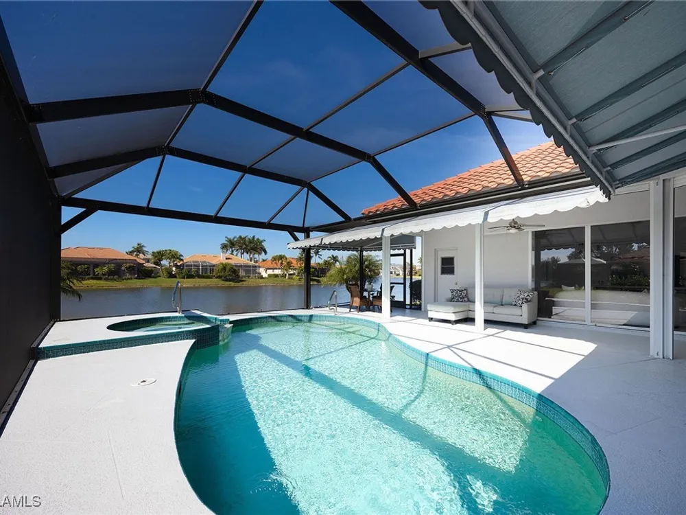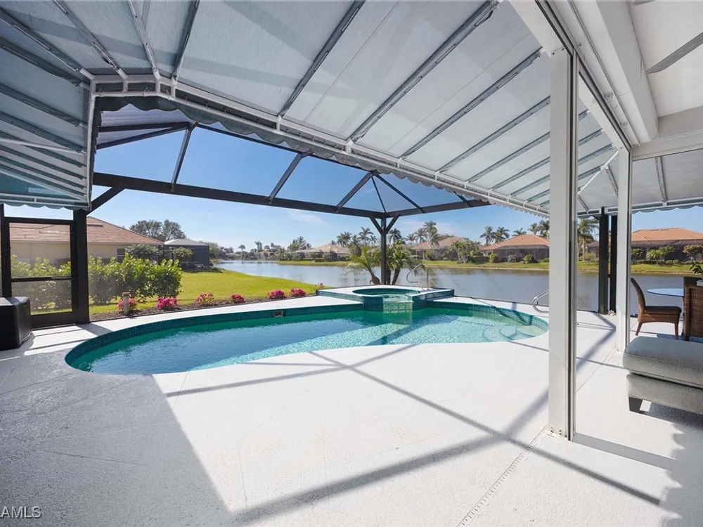 Embrace the quintessential Florida lifestyle in this beautifully renovated, custom TURNKEY home in the prestigious Lely Island Estates at Lely Resort. Enjoy breathtaking panoramic western lake views from this spacious three-bedroom, three-bath residence, offering an open floor plan ideal for entertaining and everyday living. The kitchen is a chef's delight, featuring modern updates and designer finishes. Wide plank hardwood floors throughout the home complement the tasteful wall colors, creating a warm and inviting atmosphere. The large owner’s suite is a sanctuary, boasting stunning lake vistas and a large closet fitted with California closet cabinetry. A second spacious suite offers flexibility for family or guests. Step outside to your private oasis, complete with a sparkling pool and spa, enhanced by custom awnings and new upgraded picture screens. Enjoy year-round relaxation and entertainment in your backyard paradise. The oversized three-car garage is a homeowner's dream, featuring custom storage cabinetry and new hurricane-resistant garage doors. A meticulously updated landscape adds the finishing touches to the home's curb appeal. Other features include hurricane electric roll-down shutters, plantation shutters, crown molding, newer roof, and an updated HVAC and water heater. Beyond the beautiful home, Lely Resort offers an unparalleled lifestyle. Players Club and Spa membership is optional, granting access to a world of amenities, including dining, pickleball, bocce, tennis, fitness center, full-service spa and a resort-style pool. Lely Resort is also home to three championship 18-hole golf courses. This exceptional property is a rare find in Lely Island Estates. Discover your dream in Naples today!