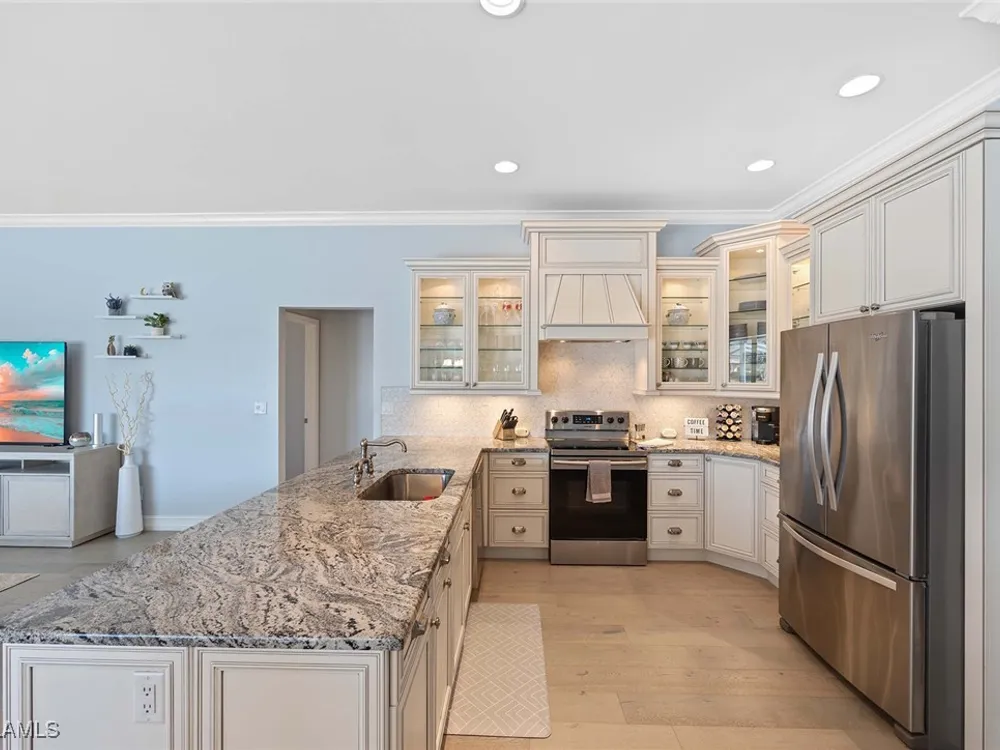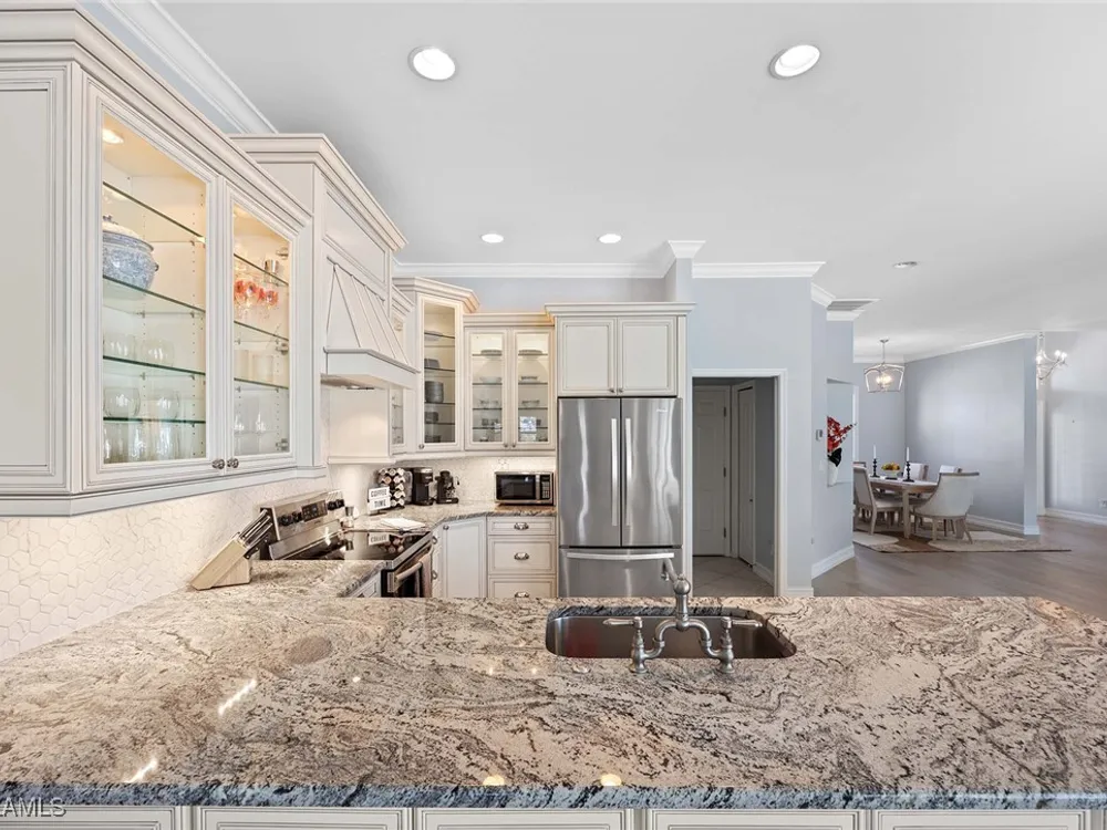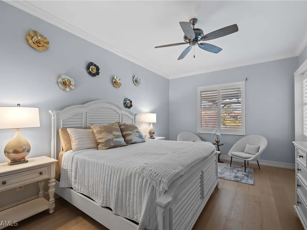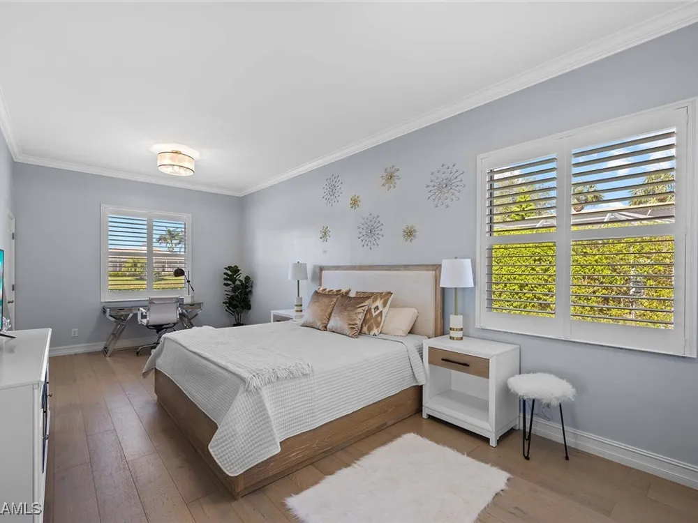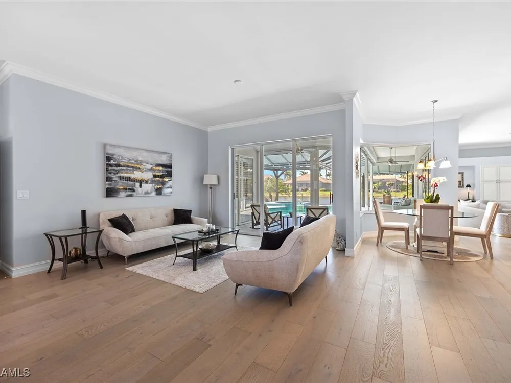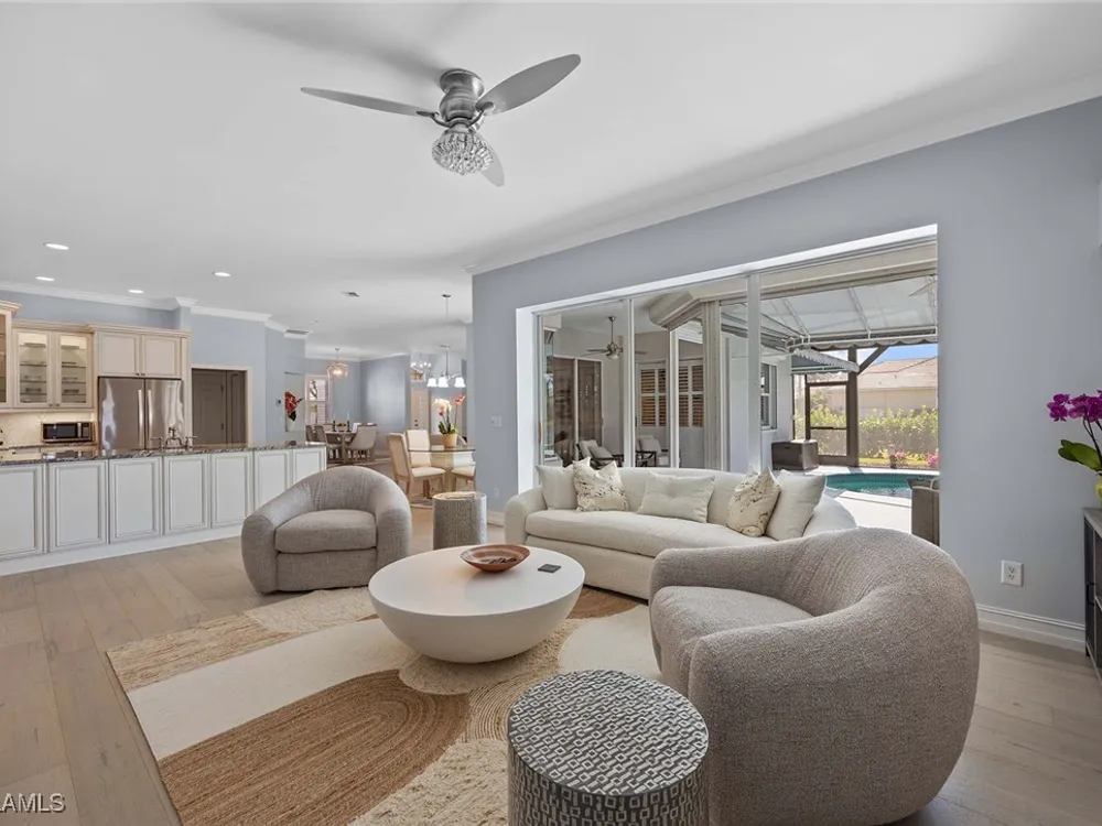 Embrace the quintessential Florida lifestyle in this beautifully renovated, custom TURNKEY home in the prestigious Lely Island Estates at Lely Resort. Enjoy breathtaking panoramic western lake views from this spacious three-bedroom, three-bath residence, offering an open floor plan ideal for entertaining and everyday living. The kitchen is a chef's delight, featuring modern updates and designer finishes. Wide plank hardwood floors throughout the home complement the tasteful wall colors, creating a warm and inviting atmosphere. The large owner’s suite is a sanctuary, boasting stunning lake vistas and a large closet fitted with California closet cabinetry. A second spacious suite offers flexibility for family or guests. Step outside to your private oasis, complete with a sparkling pool and spa, enhanced by custom awnings and new upgraded picture screens. Enjoy year-round relaxation and entertainment in your backyard paradise. The oversized three-car garage is a homeowner's dream, featuring custom storage cabinetry and new hurricane-resistant garage doors. A meticulously updated landscape adds the finishing touches to the home's curb appeal. Other features include hurricane electric roll-down shutters, plantation shutters, crown molding, newer roof, and an updated HVAC and water heater. Beyond the beautiful home, Lely Resort offers an unparalleled lifestyle. Players Club and Spa membership is optional, granting access to a world of amenities, including dining, pickleball, bocce, tennis, fitness center, full-service spa and a resort-style pool. Lely Resort is also home to three championship 18-hole golf courses. This exceptional property is a rare find in Lely Island Estates. Discover your dream in Naples today!