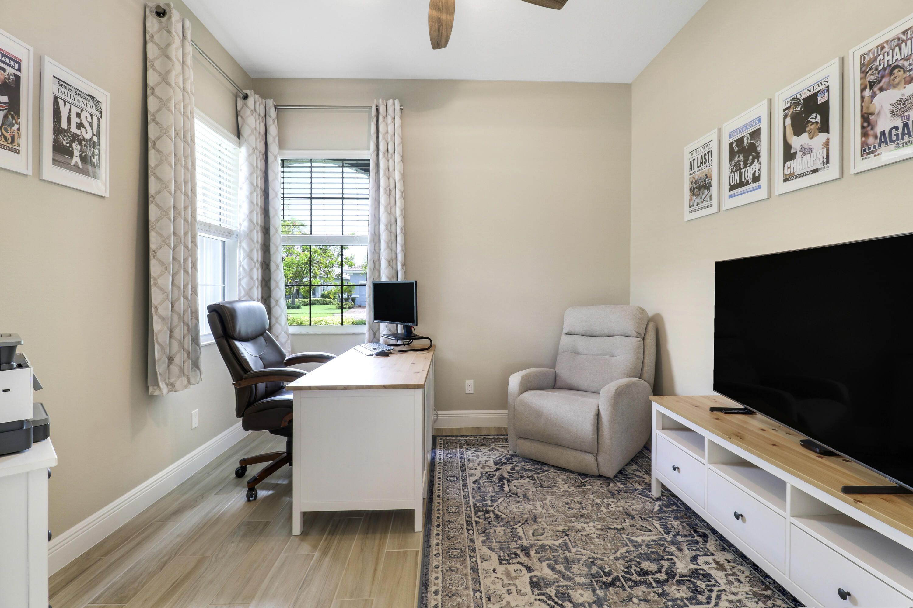 - Entry Level Living Area, Entrance Foyer, Split Bedrooms, Walk-In Closet(s), Home Office, Great Room, Living/Dining Room, Snack Bar, Blinds, Drapes, Dual Sinks, Primary Downstairs, Separate Shower