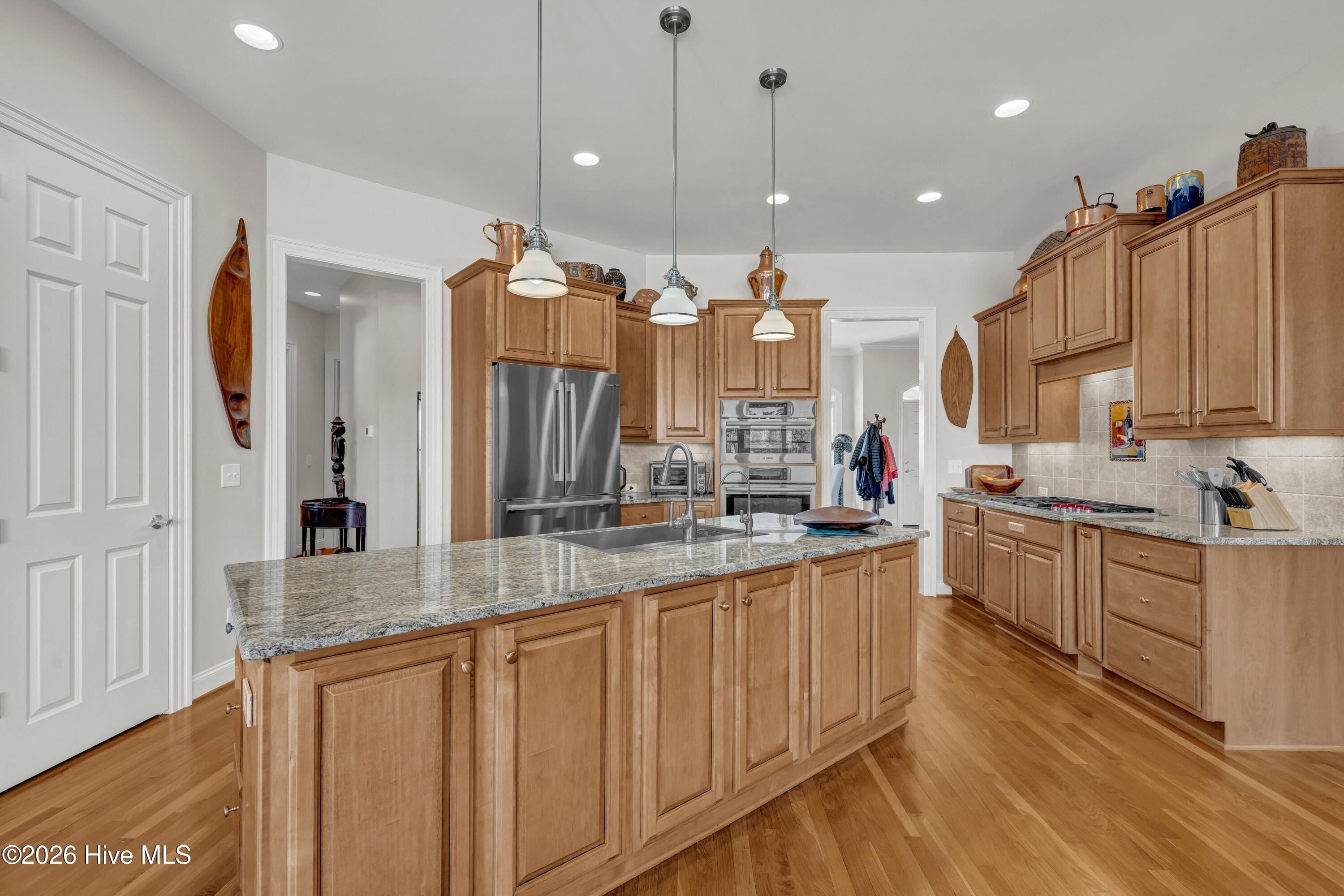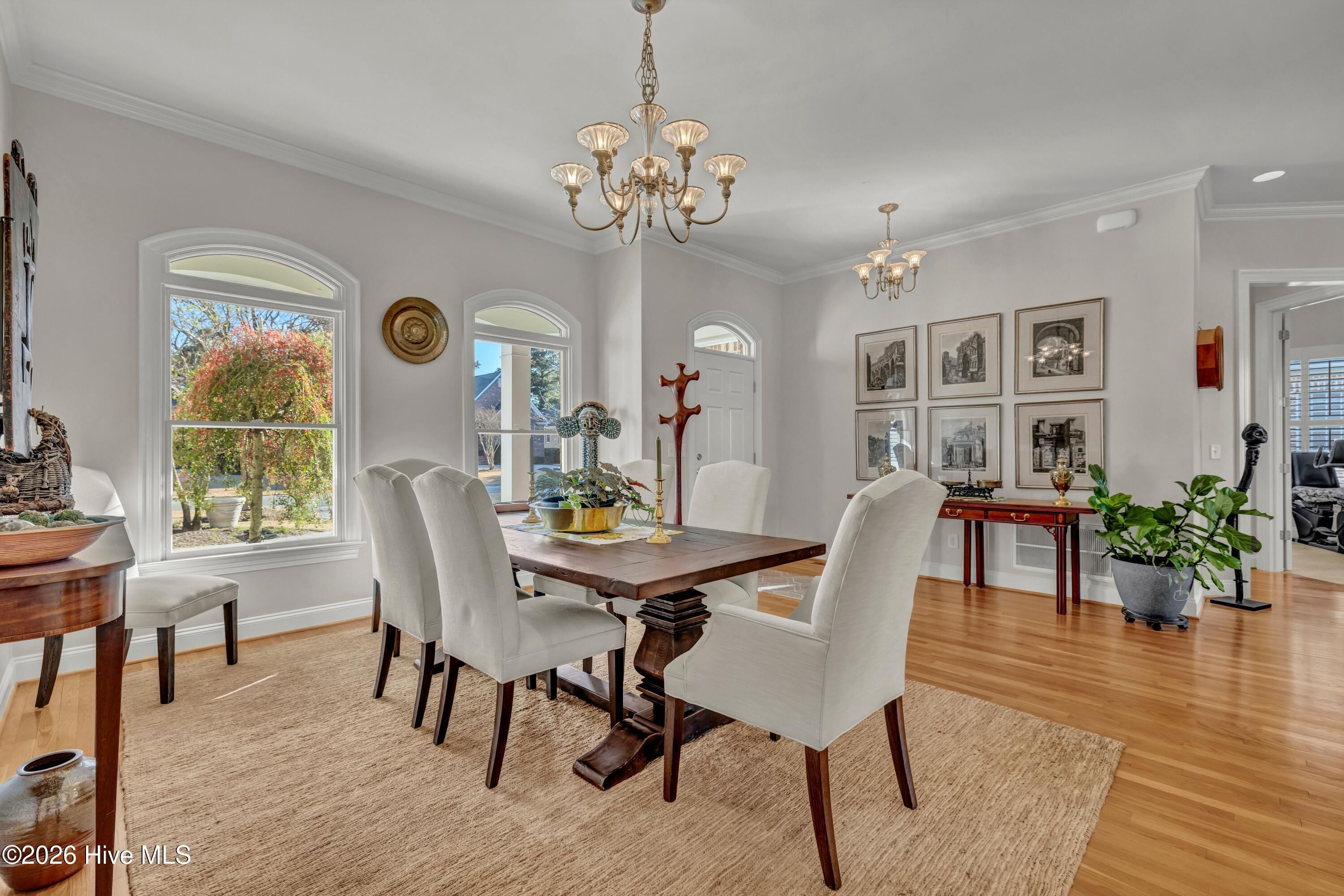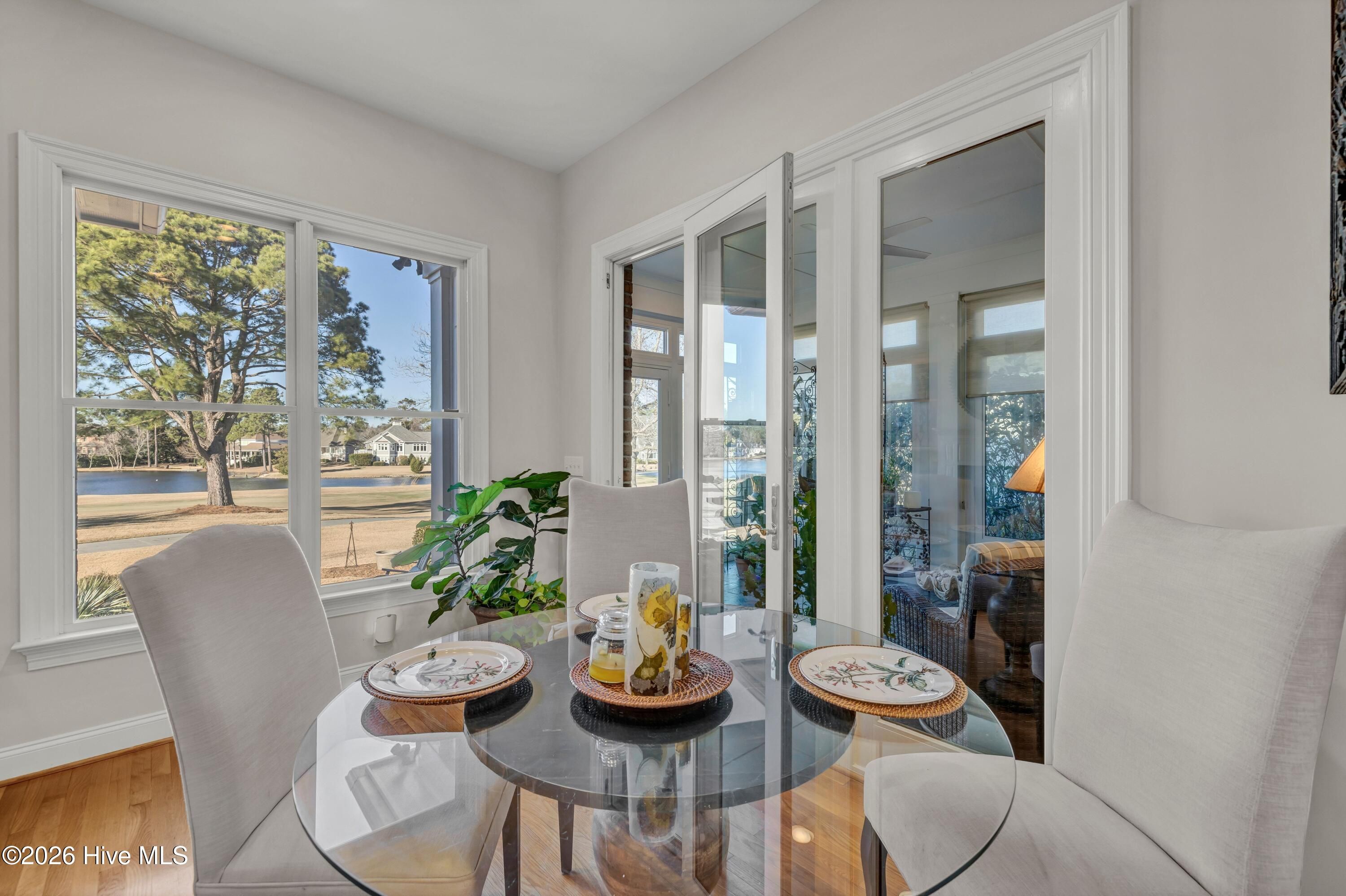 Welcome to 8948 Woodcreek Circle — where this 2006 built home, quarter acre lot and refined lifestyle unite seamlessly in the private, gated golf community of Porters Neck Plantation. Set on a beautifully landscaped property, this exceptional offering encompasses sweeping 180-degree views of the 14th green and fairway on the Tom Fazio-designed championship course, sweeping lake vistas, cooling coastal breezes, and enjoyable wildlife. This 3,559 sq ft residence has been thoughtfully updated for comfort and peace of mind, featuring a new roof (2024), new HVAC systems, hot water heater (2020), Culligan water softener, encapsulated crawl space with dehumidifier, 5-zone irrigation system, a stunning four-season conditioned porch (2024), and a conditioned two-car garage with epoxy flooring for year-round projects and activities. Inside, a bright open floor plan with 10-foot ceilings, solid oak floors, and expansive windows frame the beautiful golf and lake views from the moment you enter. The modern gourmet kitchen is ideal for everyday living and entertainment, offering a nine-foot center island, granite countertops, maple cabinetry, Bosch refrigerator and double ovens, Wolf range, 150-bottle refrigerated wine cellar, and sun-filled views from every room. The first-floor primary suite is a private retreat with golf course views, a spa-style bath with Jacuzzi tub, large separate shower, dual granite vanities, and a custom his-and-her walk-in closet system. Main-level living also includes formal dining, cozy reading room, and a light-filled living room with a granite surround gas fireplace, opening to a private outdoor porch for indoor-outdoor entertainment, plus a guest powder room and two generous additional bedrooms hosting a full bath. Upstairs, enjoy a large flex space perfect as a media room, gym, or additional bedroom with full ensuite bath, a private office with multiple built-ins, and conditioned walk-in storage room with access to a spacious attic. Deeded water rights to the Intracoastal Waterway, including access to a dock, boat ramp, picnic area, convey with the property. Golf and country club pool and fitness facility memberships are also available. A rare combination- experience a refined coastal environment, private championship eighteen-hole golf course, and intracoastal amenities in Porters Neck's most desirable community.