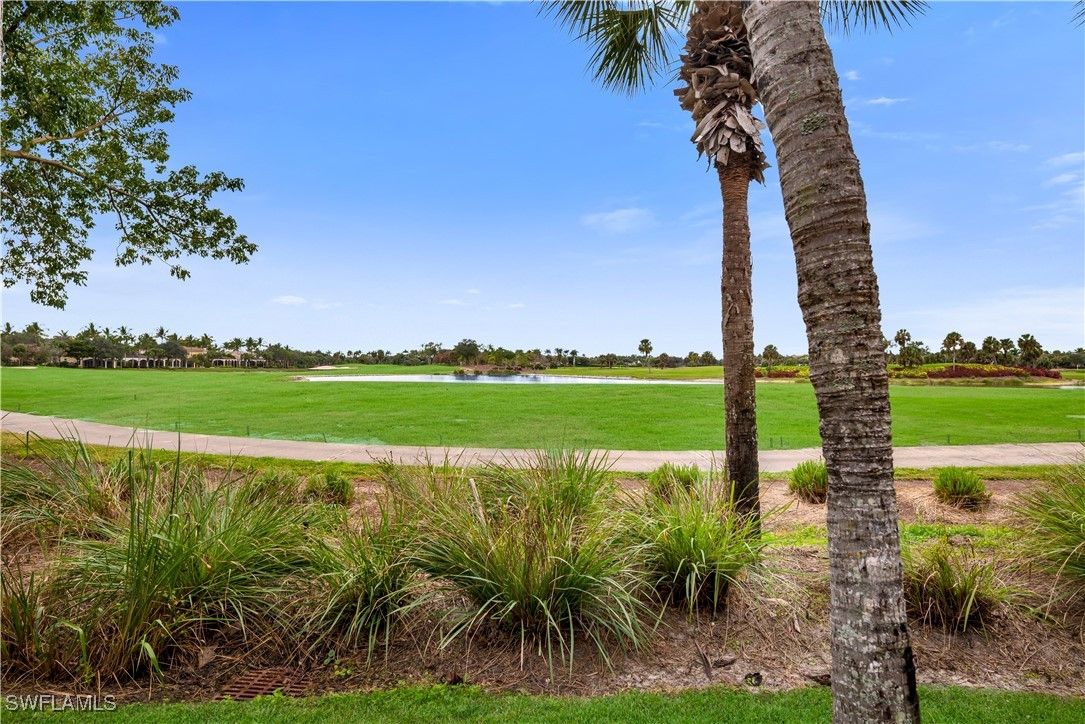 Enjoy breathtaking western sunset views overlooking the lake and golf course from this immaculate, move-in-ready residence that captures the essence of Florida living. Located in Cherry Oaks at Fiddler’s Creek, this beautifully furnished condominium offers three bedrooms plus a den, two baths, and an attached two-car garage, combining elegant upgrades with serene water and fairway vistas and an ideal layout designed for everyday comfort and entertaining. The light-filled interior features a spacious living and family room enhanced by designer light fixtures, crown molding throughout and large sliding glass doors that open to the screened lanai, ideally framing the lake and golf course views. Plantation shutters were added throughout the home in 2020, complementing the Storm Smart hurricane-impact windows installed the same year. Recent improvements include a tankless water heater, epoxy garage floor with cabinetry and slat-wall storage, full interior and garage repaint, and a new whole-home HVAC system with condenser, all completed between 2020 and 2021. The kitchen is thoughtfully designed with soft-close cabinetry, granite countertops, tile backsplash, GE Profile stainless steel appliances added in 2022, a gas cooktop, and an inviting eat-in area that flows seamlessly into the dining and living spaces. A convenient hall closet includes a dedicated outlet for a plug-in vacuum system. Sliders to the lanai were updated in 2023, while new no-see-um lanai screens were installed in 2020, and new porcelain tile flooring was added to the lanai in 2025. The spacious primary suite features wood flooring, dual walk-in closets with custom built-ins, and a well-appointed bath with dual vanities, a makeup vanity, soaking tub, large walk-in shower and enclosed water closet. Two additional guest bedrooms offer privacy and comfort, with new vinyl flooring installed in 2025, while the second bath was recently renovated with a walk-in shower, new toilet, Cristallo quartzite countertop imported from Brazil, shiplap accents and additional lighting. A versatile den with rich wood flooring provides flexible space for an office or media room. Additional highlights include new mattresses never slept on, TVs included, and all furnishings conveying with no exclusions. The laundry room is conveniently within the residence and includes a utility tub and cabinetry for extra storage. Residents of Fiddler’s Creek enjoy an award-winning, gated community with newly completed 2025 enhancements, including an updated resort-style pool with waterfalls and slides, an upgraded Gator Grille restaurant and 10 new pickleball courts. The renovated clubhouse features a world-class fitness center, six Har-Tru tennis courts, and a hot tub, sauna and steam room. Optional memberships, with no golf waiting list, offer access to the renovated championship course, new golf clubhouse, marina and private beach club.