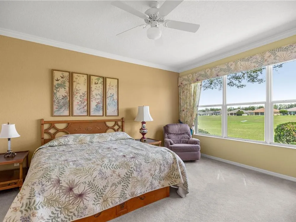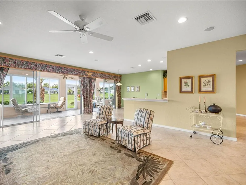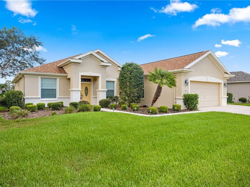 Welcome to Your Next Chapter in the Sought-After Del Webb's Spruce Creek community. SELLING TURNKEY WITH A GOLF CART! This charming 3-bedroom, 2-bath "Johnstown" model home comes with a beautiful view and a versatile den that offers the perfect blend of comfort, style, and functionality. The expanded 2-car garage plus golf cart garage provides ample storage and convenience for your active lifestyle. Inside, the kitchen boasts Corian countertops, a cheerful breakfast nook, and opens to a spacious family room—perfect for entertaining. The owner’s suite is a serene retreat with large windows featuring electric shades, a walk-in closet, and a spa-like bath with dual sinks, a walk-in shower with two seats, and abundant natural light. Additional features include inside laundry, a roof (2020), AC (2020), and water heater (2015)—offering peace of mind for years to come. The home’s beautiful view enhances your everyday living. As part of the vibrant Del Webb Spruce Creek Country Club, you’ll enjoy 36 holes of championship golf, resort-style pools, tennis and pickleball courts, a state-of-the-art fitness center, numerous clubhouses, walking trails, over 60 social clubs, and an on-site restaurant perfect for meeting friends or enjoying a casual night out—all without leaving the neighborhood. Don’t miss your chance to live in one of the area’s most popular 55+ active adult communities—where every day feels like a vacation!