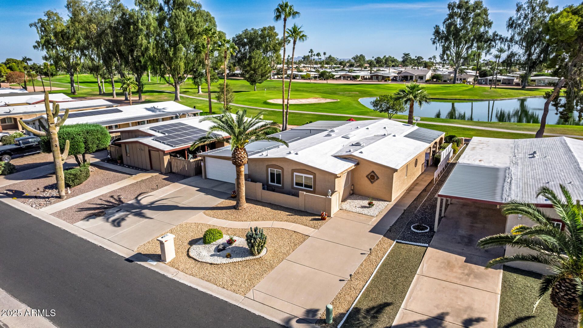 Welcome to your dream retreat in the heart of Sun Lakes! This beautifully remodeled home offers the perfect blend of comfort and resort-style living. Situated right on the 17th hole with amazing lake and golf course views. Includes a oversized 2 car garage with 2 driveways for ample parking and a workshop! Step inside this TRIPLE wide to find a bright, open-concept floor plan. The modern kitchen is perfect for entertaining or enjoying a quiet breakfast with a view. The spacious primary suite offers a walk-in closet and a full bath. Relax and unwind on your covered patio while watching the golfers go by, or enjoy the vibrant Sun Lakes lifestyle with access to golf, pools, pickleball, fitness centers, restaurants, and endless social activities—all just steps from your door.