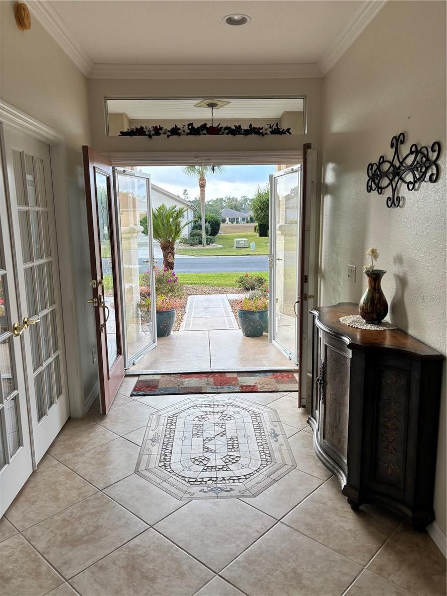 JUST REDUCED TO SELL ........ this exceptional find of an immaculate Granville model with designer elements throughout the house. 2 bedrooms PLUS A DEN/OFFICE WITH FRENCH DOORS , 2 baths. Including the enclosed 40'x10' climate controlled lanai this home has 2,270 square feet of living area. Situated on a corner lot boasting beautifully carved landscaping beds, lush shrubbery, mature trees, decorative wrought iron bench and beautiful 3- tier fountain which stay with the house, custom design stamped driveway/walkway and citrus trees in the back yard (orange, grapefruit & lemon). Leaded glass double doors welcome you to a wide open floor plan and an entrance foyer highlighted by a custom inlaid tile design. There is crown molding throughout the house! The living room includes a flexible area that features a mirrored wall and can be used as a formal dining area. Entire house is ceramic tile, including enclosed lanai. Spacious Gourmet kitchen features granite counter tops, 42-inch maple wood cabinets, tile backsplash and stainless steel appliances. A breakfast bar opens to the living room area. Master suite includes walk-in closet, expanded shower with dual shower heads and benches, granite counter tops and private water closet. AND MUCH MUCH MORE! HVAC 2011 - An existing BROWARD FACTORY WARRANTY will transfer to new owner. There's a private well on the property for lawn irrigation, saving $$$ on water bills. A NEW ROOF will be contracted at closing, giving buyer choice of design and color. Smoke free home. AWARD-WINNING Del Webb Spruce Creek Golf & Country Club is a GATED, 3,250 home, +55 Community with over 70 clubs, 3 pools, 3 spas, a Clubhouse, a Fitness Center, Bocce Ball, Shuffleboard, 12 Pickle ball Courts, 7 Tennis Courts, Sand Volleyball, Water Volleyball, Lake Vista Gazebo, Pavilions, Walking Paths and so much more! Come see this beautiful community with a GORGEOUS Tree Canopy on the Boulevard and its Restaurant, Liberty Grille. Come, enjoy the four (4) 9-hole Golf Courses today and begin living your BEST LIFE! DON'T WAIT TO SEE THIS BEAUTIFUL HOME