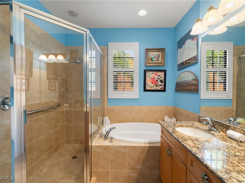 - Built-in Features, Bathtub, Dual Sinks, Eat-in Kitchen, Living/Dining Room, Pantry, Separate Shower, Upper Level Primary, Walk-In Pantry, Walk-In Closet(s), Window Treatments