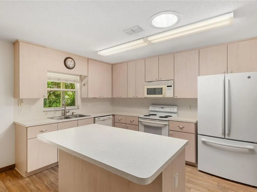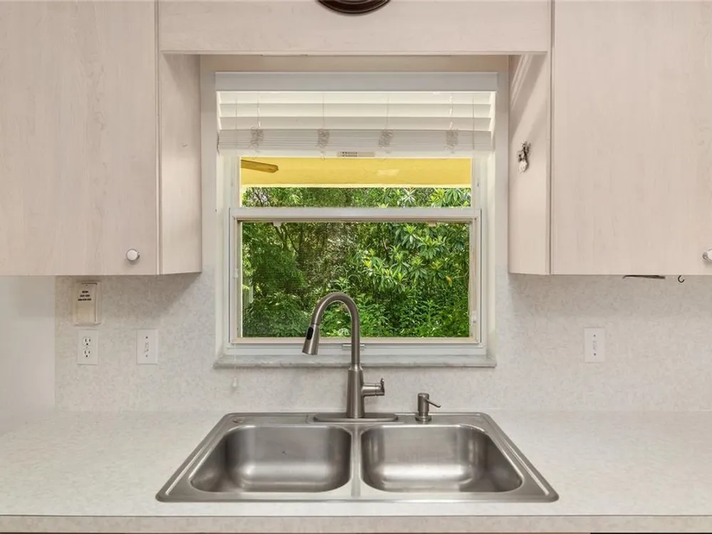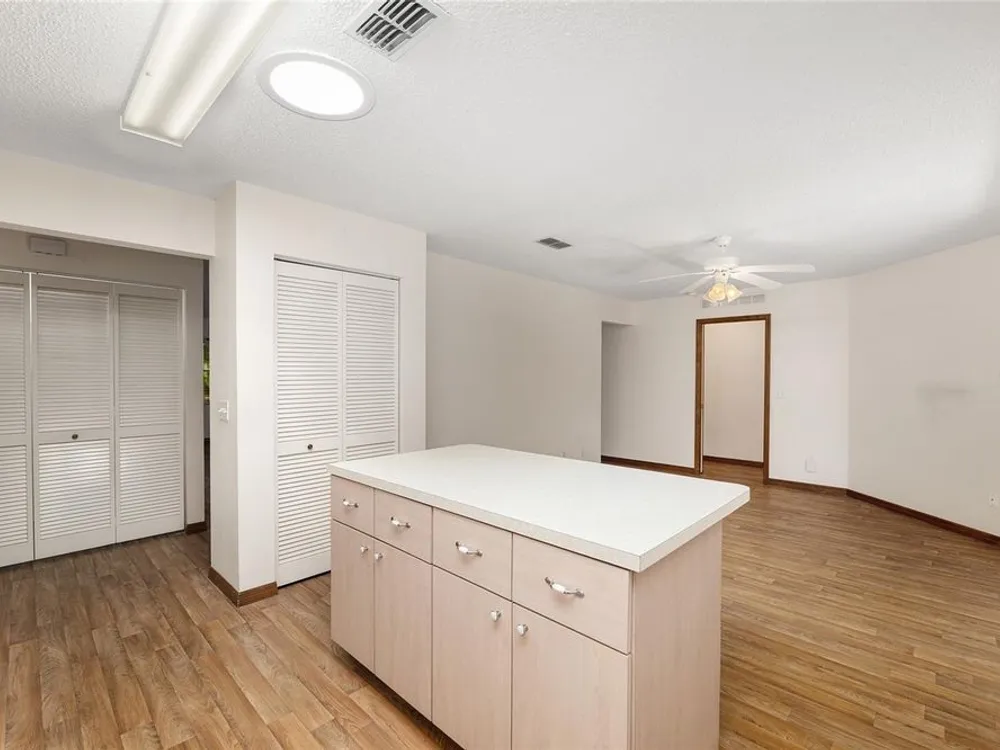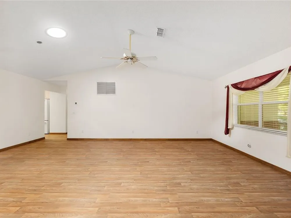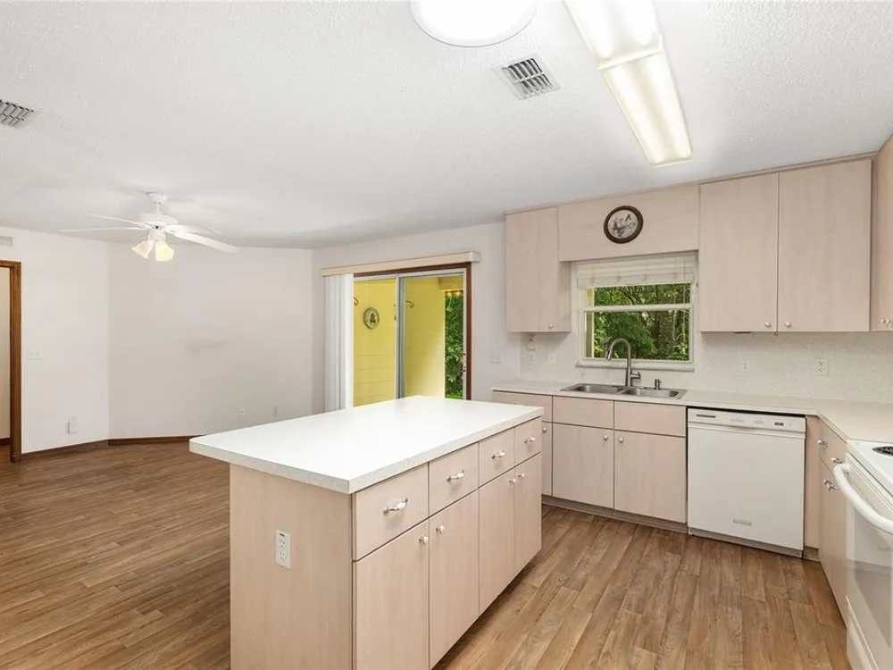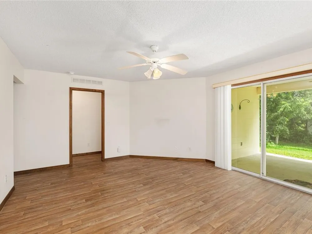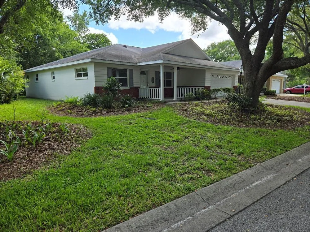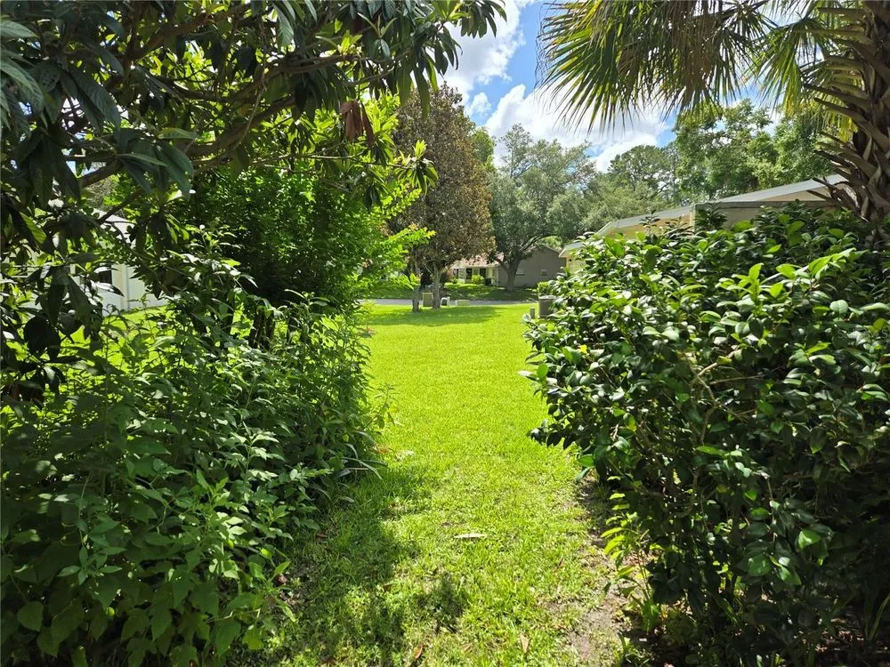Beautiful End-Unit Villa with Private, Scenic Backyard Oasis! Welcome to this charming and spacious end-unit villa that offers the perfect blend of comfort, style, and natural beauty. Tucked away in a peaceful setting, this home is a rare find with its beautifully landscaped backyard-a true outdoor sanctuary featuring lush greenery, colorful flowering bushes, decorative birdhouses, and plenty of space to relax and enjoy nature. Step inside and be greeted by warm wood flooring that flows through the main living areas, complemented by soaring vaulted ceilings that create an open and airy feel. The thoughtful split floor plan provides privacy and functionality, with two separate bedroom wings ideal for hosting guests or family. The heart of the home is the spacious kitchen, complete with a center island that provides additional seating and prep space-perfect for entertaining or enjoying your morning coffee. Natural light pours in through strategically placed solar tubes, brightening the space with a soft inviting glow throughout the day. Just off the living area, you'll find a cozy den that opens to the lanai, ideal as a reading nook, hobby room, or a tranquil space to unwind. Need a dedicated workspace? There's a separate office offering quiet seclusion for productivity and focus. Additional features include laundry in the garage, complete with a utility tub for convenience, a newer A/C system installed in 2023, and a roof replaced in 2015. Whether you're enjoying the serenity of the backyard, hosting friends in the open concept living space, or relaxing in your private den, this villa is the perfect place to call home. Don't miss the opportunity to own this beautifully maintained, move-in ready gem in a highly sought-after community.