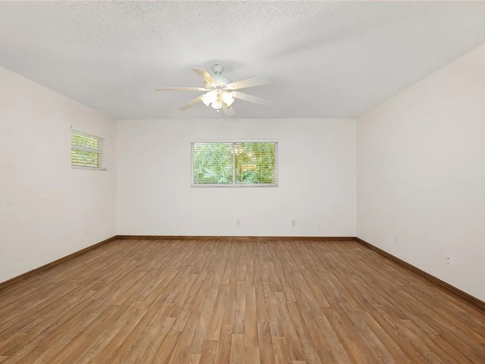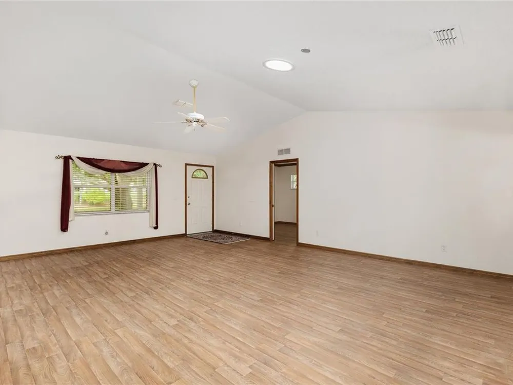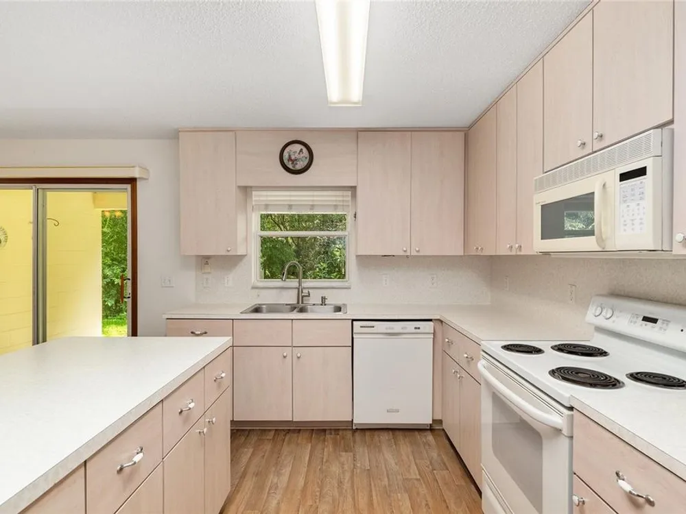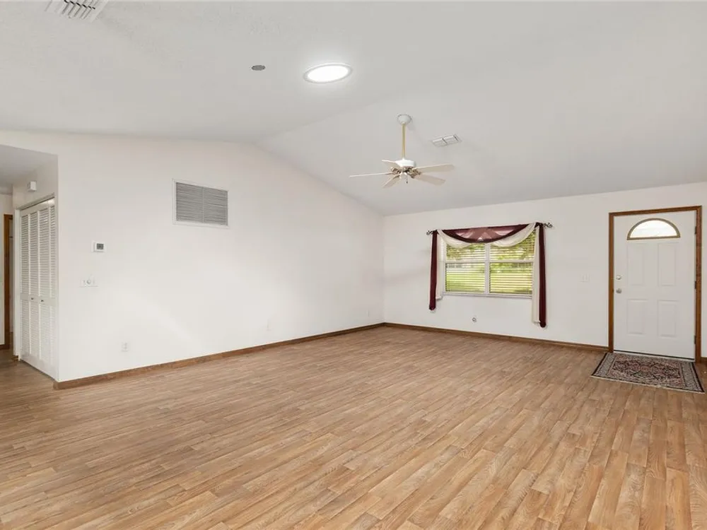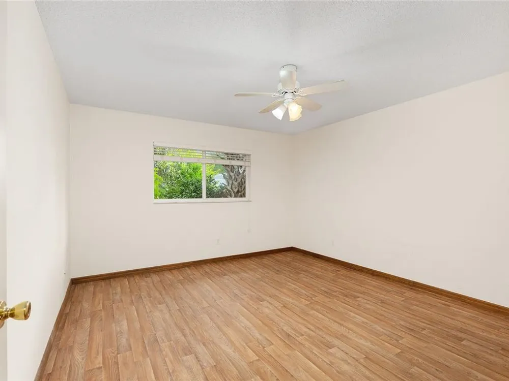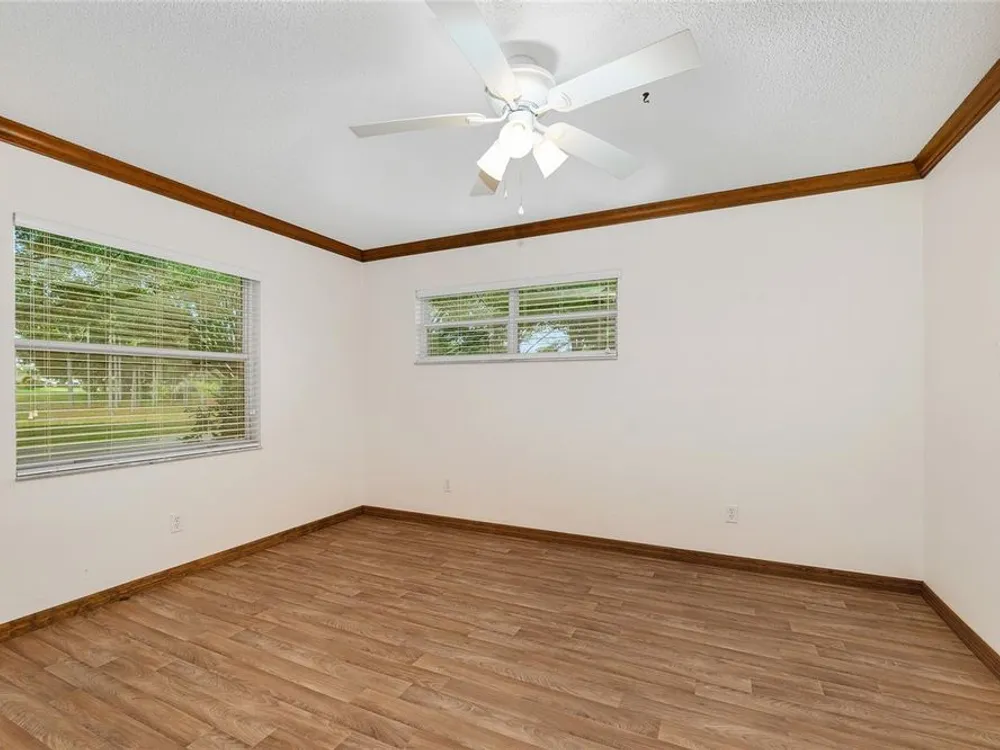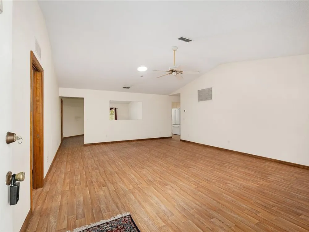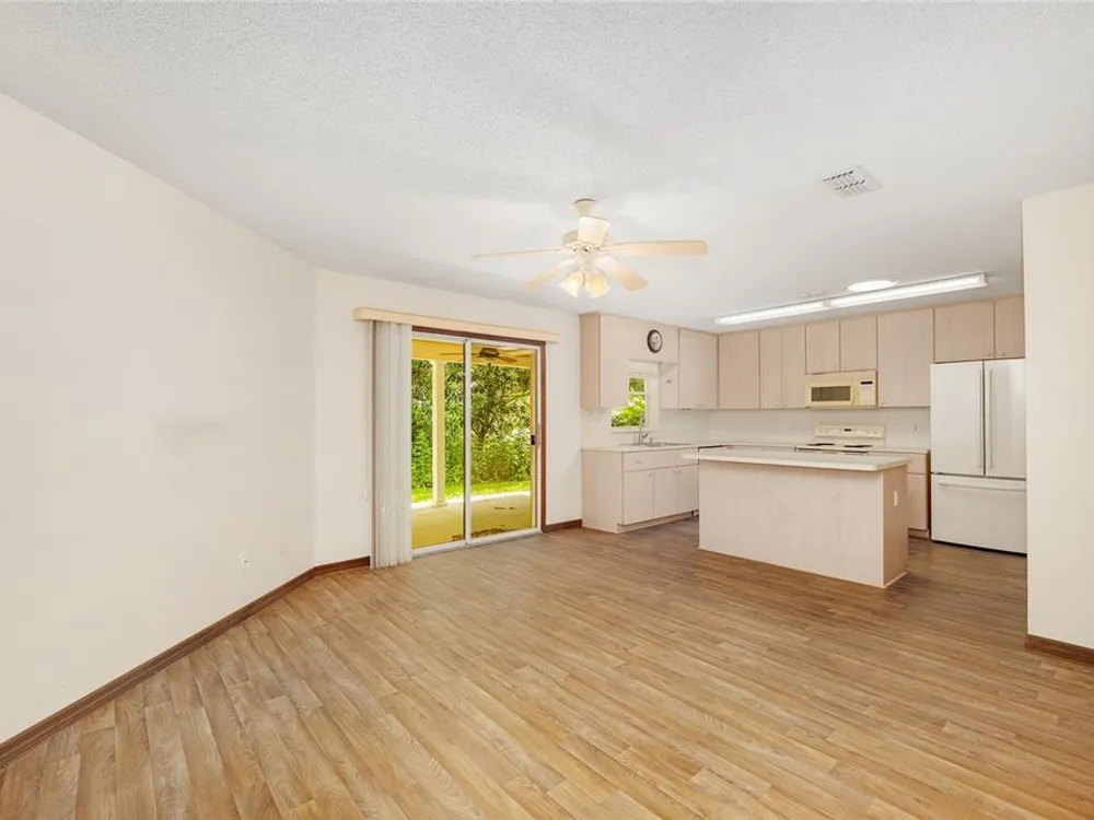 Beautiful End-Unit Villa with Private, Scenic Backyard Oasis! Welcome to this charming and spacious end-unit villa that offers the perfect blend of comfort, style, and natural beauty. Tucked away in a peaceful setting, this home is a rare find with its beautifully landscaped backyard-a true outdoor sanctuary featuring lush greenery, colorful flowering bushes, decorative birdhouses, and plenty of space to relax and enjoy nature. Step inside and be greeted by warm wood flooring that flows through the main living areas, complemented by soaring vaulted ceilings that create an open and airy feel. The thoughtful split floor plan provides privacy and functionality, with two separate bedroom wings ideal for hosting guests or family. The heart of the home is the spacious kitchen, complete with a center island that provides additional seating and prep space-perfect for entertaining or enjoying your morning coffee. Natural light pours in through strategically placed solar tubes, brightening the space with a soft inviting glow throughout the day. Just off the living area, you'll find a cozy den that opens to the lanai, ideal as a reading nook, hobby room, or a tranquil space to unwind. Need a dedicated workspace? There's a separate office offering quiet seclusion for productivity and focus. Additional features include laundry in the garage, complete with a utility tub for convenience, a newer A/C system installed in 2023, and a roof replaced in 2015. Whether you're enjoying the serenity of the backyard, hosting friends in the open concept living space, or relaxing in your private den, this villa is the perfect place to call home. Don't miss the opportunity to own this beautifully maintained, move-in ready gem in a highly sought-after community.