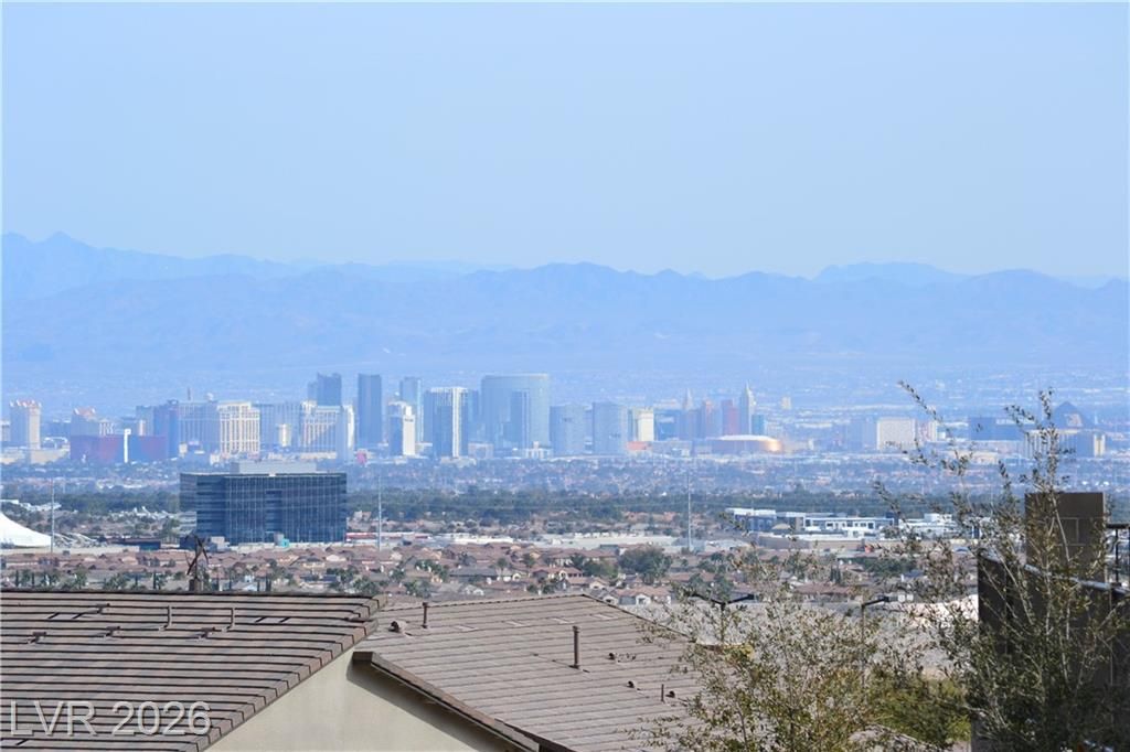 RARE ELEVATED HOMESITE with Strip Views plus Mountain Views. This home provides a rare opportunity to live in Summerlin with million dollar views near Downtown Summerlin and Red Rock Canyon. The premier lot also has 4 extra parking spaces just outside the front door. Truly a unique situation that awaits the right buyer who will understand this magnificent opportunity. Currently, there isn't nothing else like this lot on the market. This is a must see... Dark Cabinets, Open Floor Plan & when you look out of your front windows, you don't feel 'blocked' in!!