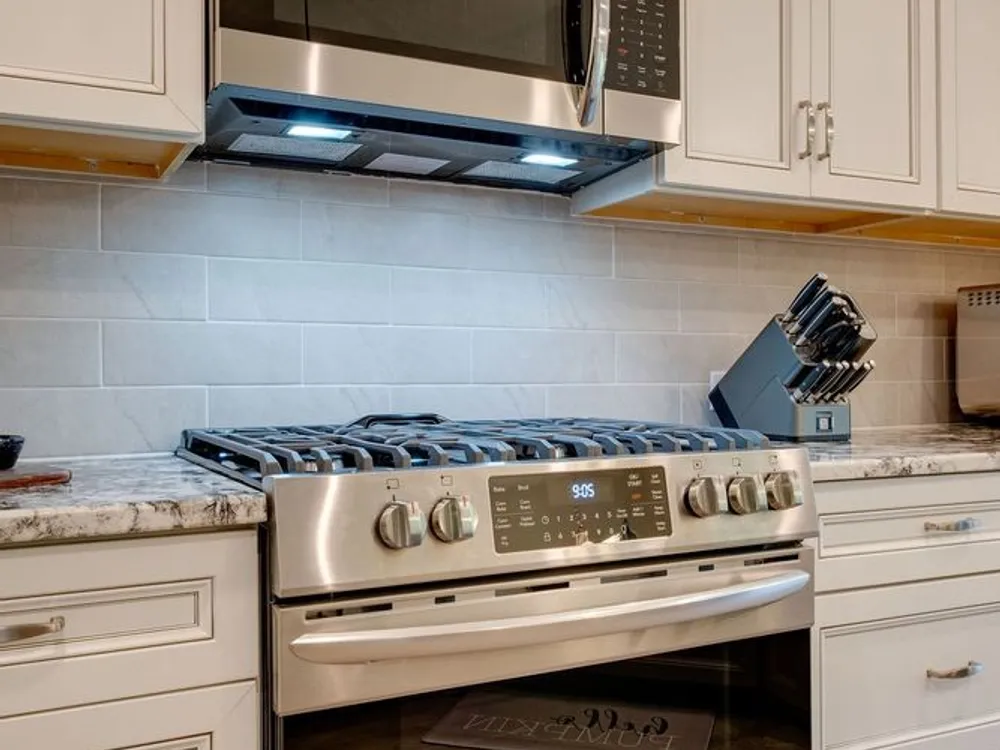 - Gas Range, Dishwasher, Disposal, Dryer, Ice Maker, Microwave, Refrigerator, Stainless Steel Appliance(s), Washer