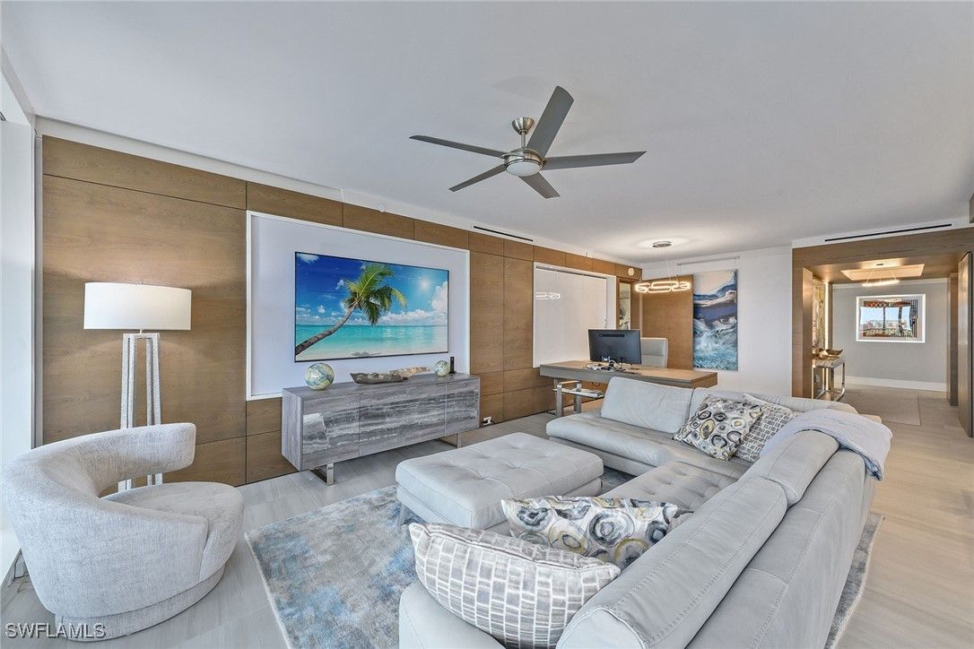 Gorgeous views and a masterful total renovation led by nationally renowned and award-winning architect Leif Kallquist who created an unmatched living experience in this custom designer three-bedroom three-bath Toscana residence. Featuring an open floor plan, a wall was removed to reveal a dream chef's kitchen with a stunning oversized 10-foot quartz center island, custom soft-close Hans Krug cabinetry, Miele appliances with an induction cooktop, and designer-led cove lighting and fixtures. All ceilings were treated to coves or beams and LED lighting for art, mood and function, while doors and hardware were replaced throughout. Motorized shades and a smart-house control system were added as well. Custom entry doors welcome you as you step off the elevator with custom textured tile flooring sweeping into the open salon and dining area. The primary bath feels like an elevated spa experience with clean lines and designer white tile and fixtures. The Toscana common areas have been renovated and elevated to meet the discerning standards of its residents. Enjoy this one-of-a-kind residence in the gated enclave of Bay Colony with the privileged use of its private beach, tennis and beach club.