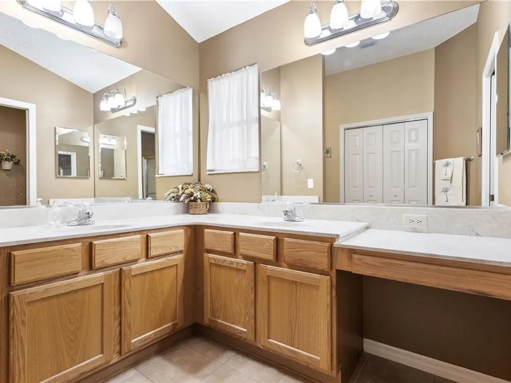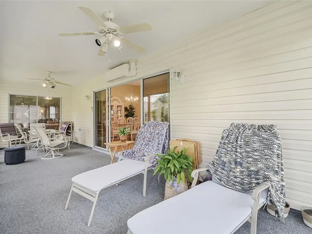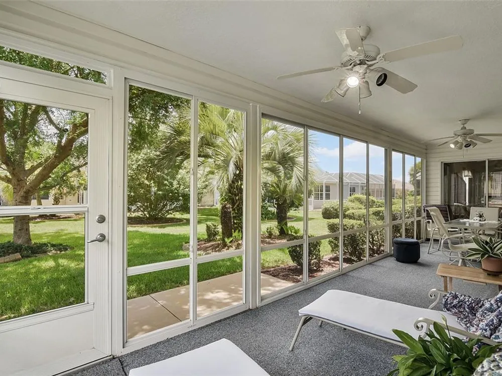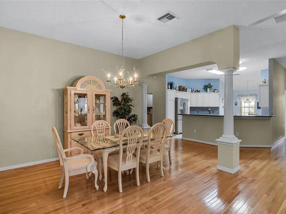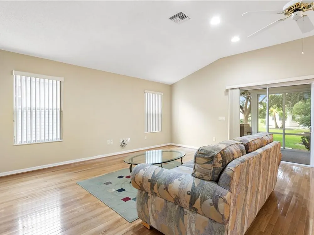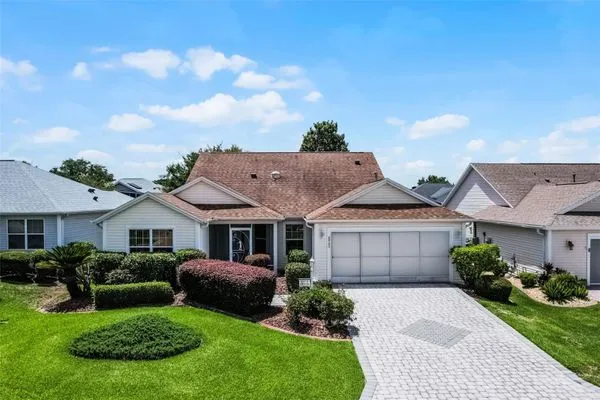 NO BOND a HOME WARRANTY and the GOLF CART is INCLUDED! The Village of Piedmont Hibiscus Model. This lovely 3-bedroom 2-bathroom home will charm you right away with curb appeal. A pristinely landscaped front yard and paver driveway lead you to a spacious and well cared-for interior just waiting for you to add your own personal touches. The foyer and large open living/dining area boast hardwood floors. The generous eat-in kitchen displays abundant counter space, cabinets and drawers as well as a pantry and a gas range. The living area leads to sliding glass doors which open to a sizable all-season lanai with floor to ceiling windows and an attractive view of a well-manicured back yard with lovely trees. What a great spot for morning coffee or visiting with guests, and a mini split unit guarantees comfort all year round. The ample master suite, which also has access to the lanai, has two separate closets as well as a large linen closet and dual vanities in the master bath. A convenient laundry room offers built-in cabinets and a laundry tub. Other amenities include: new roof in 2020, built-in storage cabinets in the garage, a solar tube in the kitchen and bathroom two, gas heat and a gas tankless water heater and new laminate floors in all of the bedrooms. This great home may be just what you’ve been searching for! Close to golf, recreation centers, pools, shopping and dining. Golf Cart is available.