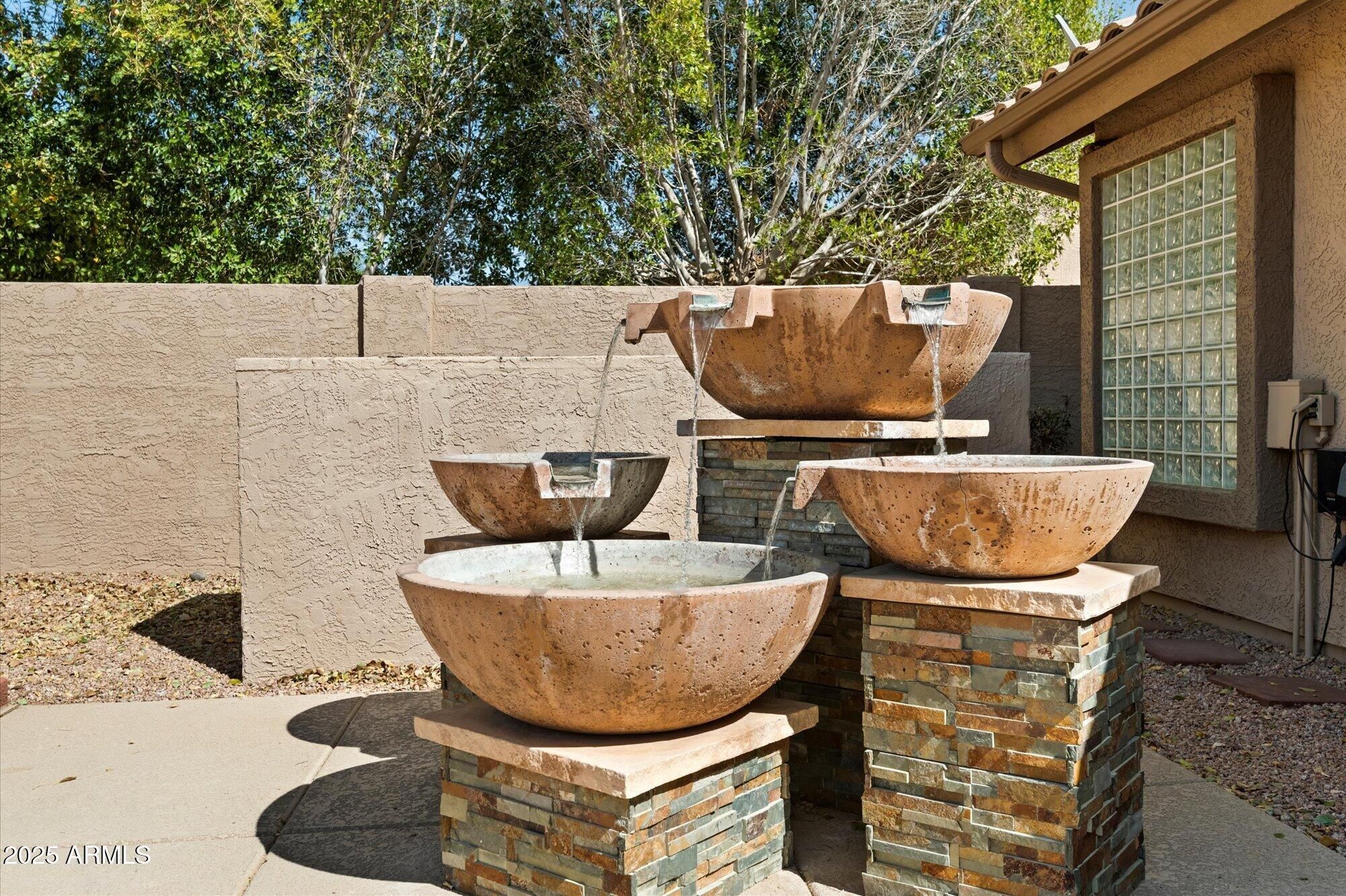 Welcome to Westbrook Village! This charming 2BR + Den/2BA home with NEW ROOF INSTALLED 10/2025, is a true gem in one of Peoria's most desirable active-adult communities. Offering 2,307 SQ FT of living space, this home is designed with an open floor plan, perfect for both relaxation and entertaining. As you step inside double security screen doors, you'll be greeted by neutral tones throughout, and classic plantation shutters that enhance the natural light and provide privacy. The remodeled kitchen is a chef's dream, featuring gorgeous cabinetry, sleek granite countertops, and upgraded appliances. With a 6-burner gas cooktop/range with convection feature, an additional electric wall oven, and a wine fridge, this kitchen offers the ideal setting for creating culinary masterpieces. Plus, the under-sink R/O system ensures pure, fresh water at your fingertips. The primary suite is a true retreat, offering an upgraded en-suite spa-like bath, and custom designed walk-in closet. The bath features dual sinks, a custom vanity with beauty appliance garage, and a luxurious free-standing soaking tubperfect for unwinding after a long day. It also has a Crimsafe separate exit door, with its secure, specialized design that ensures enhanced security and peace of mind. The expansive den features an impressive wall-to-wall built-in bookcase, including drawers and desk, providing the perfect space for a personal library or home office. Step outside into your own private backyard retreat, where every detail has been thoughtfully designed for relaxation and entertainment. Hidden rolling screens provide a seamless transition between indoor and outdoor living while keeping insects at bay, allowing you to fully enjoy the space. The expansive decking and covered patio create an inviting setting for gatherings, with plenty of room for lounging or dining al fresco. The built-in BBQ is perfect for grilling up your favorite meals, while the 4-hole putting green offers hours of fun and practice for golf enthusiasts. A serene 3-tier fountain adds a touch of tranquility to the space, providing soothing water sounds that enhance the peaceful ambiance. For those with a green thumb, the side yard offers the perfect area for gardening and planting your favorite flowers or vegetables. The spacious 3-car garage is designed with both functionality and convenience in mind. It's equipped with built-in cabinets, providing ample storage for tools, or seasonal items. For even more storage potential, a pull-down attic access with installed flooring offers an easy way to store larger or less-frequently used items out of sight. This garage also includes a dedicated EV charger for your electric vehicle, along with a separate outlet for your golf cart, making it ideal for those who enjoy all the modern conveniences. Whether you're storing vehicles, hobbies, or outdoor gear, this garage is sure to meet all your needs while keeping everything organized and easily accessible. You can also enjoy everything the community of Westbrook Village has to offer. Two 18-hole golf courses, two large recreation centers, numerous clubs, activity rooms, outdoor pools, spas, a fitness center, tennis and Pickleball courts, horseshoe pits, a Reflection Garden, an RV lot, and so much more.