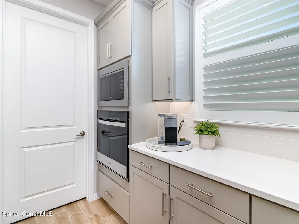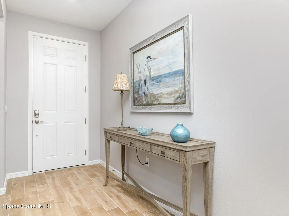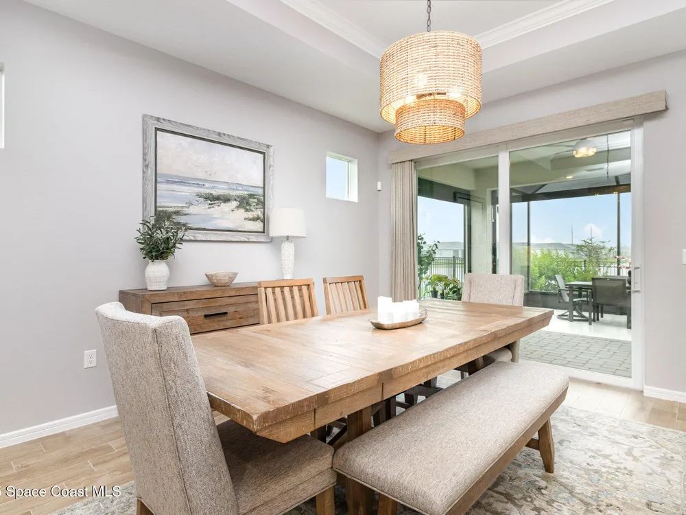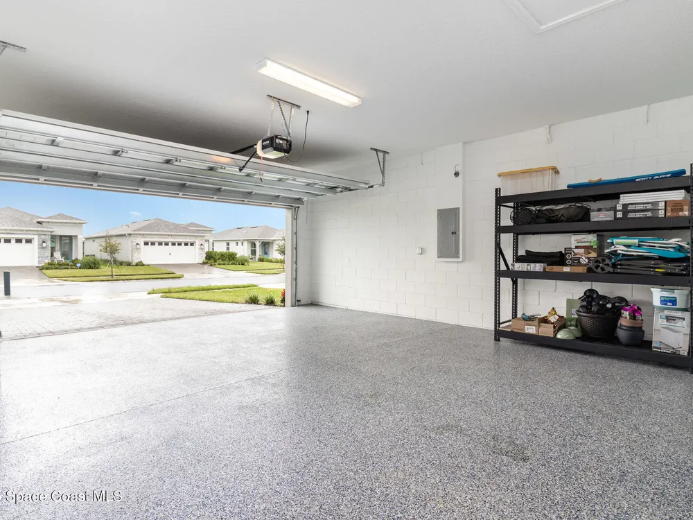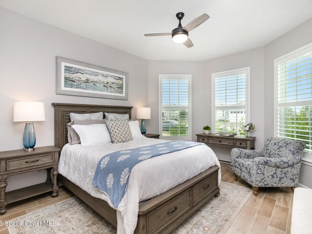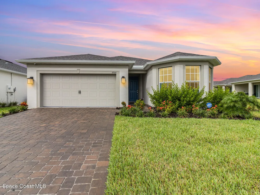 This stunning lakefront, oversized premium lot, 2Bed/2Bath + enclosed Flex room perfect for an extra guest bedroom or office. This is a Del Webb Palmary model with amazing sunset and water views and is ready to move in & start enjoying life in an active resort-style community. Entertaining is easy with a large open concept gathering room with tray ceiling, kitchen with large island, and cafe. There is an extended screened lanai, electric hurricane impact screens, fenced yard with puppy picket, plantation shutters, designer window treatments & lighting fixtures. The 2-car garage was extended by 4ft & has epoxy flooring, upgraded laundry room has both upper and lower cabinets and a sink, built-in HMC outside laundry room. Cameras and security system are installed. Chef's kitchen has upgrades such as quartz countertops, stainless steel Whirlpool appliances, wood hood, upgraded sink/faucet, backsplash, under-cabinet lighting and so much more. Other upgrades include ceramic tile flooring, This 55+ Del Webb at Viera community features amenities you will love. Also included with your amenities is a membership to the Duran Golf Course. The 30,000 (under roof) Sq. Ft. Clubhouse Clubhouse with waterfront view and incredible sunsets is under construction and is expected to open early 2026. This Resort Style Clubhouse will have a Zero-Entry Pool w/ Sun shelf, Onsite Tavern & Grille, Outdoor Spa, Fire-pits, Lawn Events, Arts and Crafts Center, Mahjong, Yoga, Zumba, a diverse range of clubs, monthly events, dog park and so much more. Our Manned Gated community is only a few miles to the Viera Hospital, the Viera Regional Park, the Viera Shopping Area/Town Center, the Brevard Zoo, the Shops at Lake Andrew, Costo and a diverse array of dining and entertainment options.