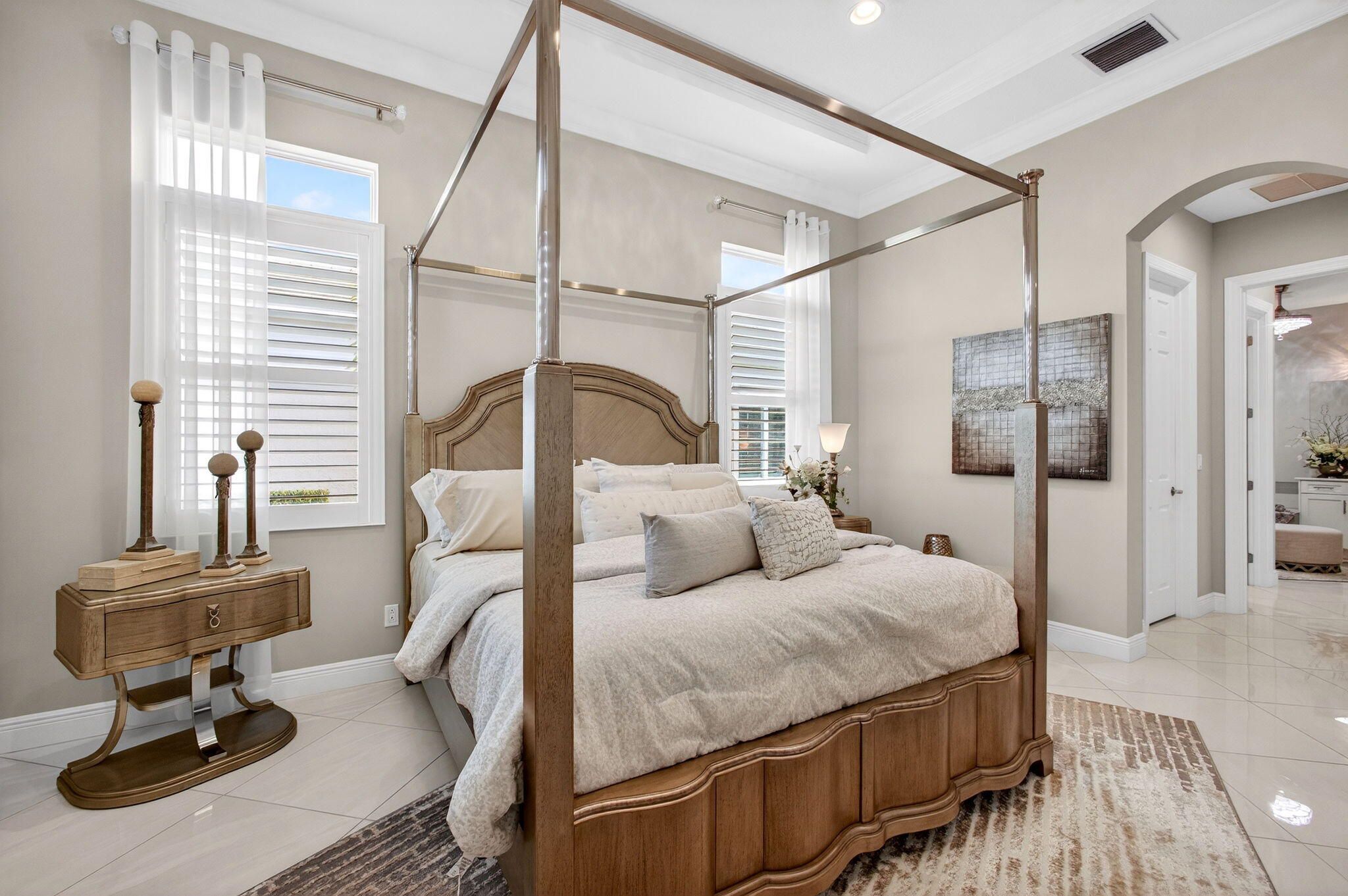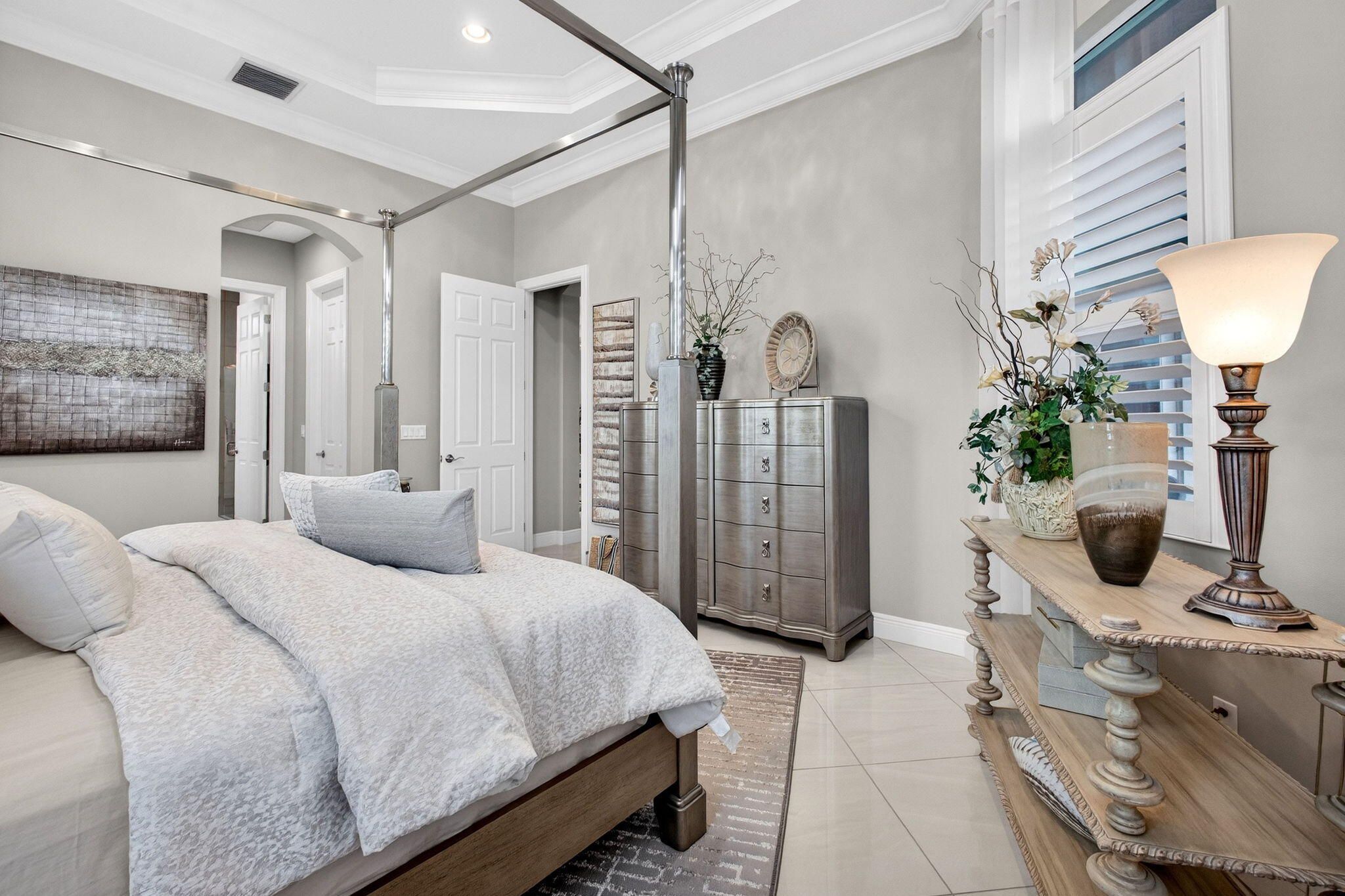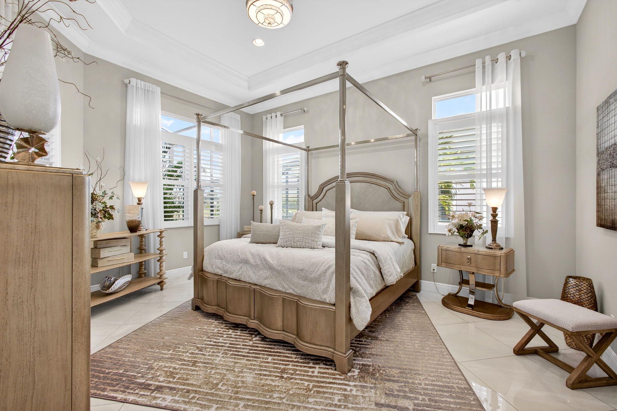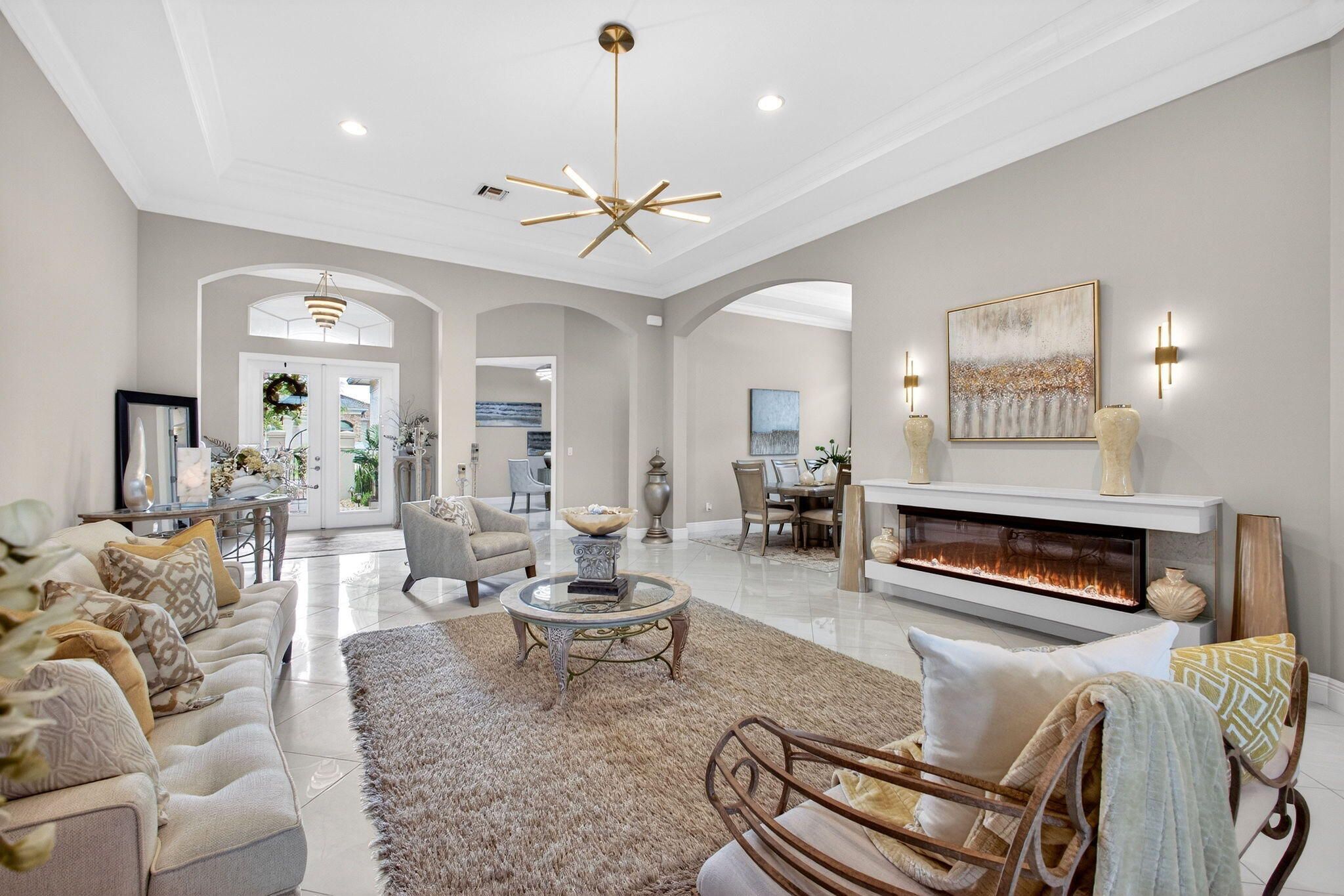 Welcome to an exceptional Collina model residence within Cresswind at PGA Verano, a premier 55+ community offering refined living and outstanding amenities. This home delivers 3,244 square feet of thoughtfully designed living space and was built with nearly every available builder upgrade, creating a level of quality, finish, and detail that would be difficult and time-consuming to replicate today. The arrival is polished and inviting, framed by a decorative entry gate and lush, custom landscaping. Inside, diagonal-set tile flooring, crown molding throughout, tray ceilings, and architectural detailing create a clean, elegant atmosphere. The kitchen is a true showpiece, featuring quartz countertops, an oversized island, upgraded soft-close cabinetry, designer backsplash, built-in wall The kitchen is a true showpiece, featuring quartz countertops, an oversized island, upgraded soft-close cabinetry, designer backsplash, built-in wall oven, electric cooktop, glass canopy hood, and a full stainless appliance packageperfect for both entertaining and everyday living. The primary suite offers a spa-inspired retreat with upgraded quartz vanities, frameless glass shower, and floor-to-ceiling tile. Guest accommodations are equally well-appointed, including a cabana bath with direct indoor-outdoor access. Outdoor living is exceptional, highlighted by an expanded, screened-in lanai offering rare privacy and a tranquil, zen-like setting surrounded by mature landscaping. Impact windows and doors, upgraded laundry room, enhanced lighting, full gutter system, and meticulous craftsmanship complete the offering. Residents enjoy access to the Club Talavera resort-style pools, fitness and wellness facilities, tennis, pickleball, and a vibrant calendar of social and dining events. Best of all, this highly upgraded home is immediately availableoffering the opportunity to enjoy luxury living now, without the extended wait of new construction. A rare, offering in Cresswind at PGA Verano.