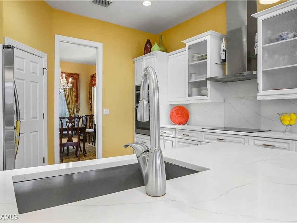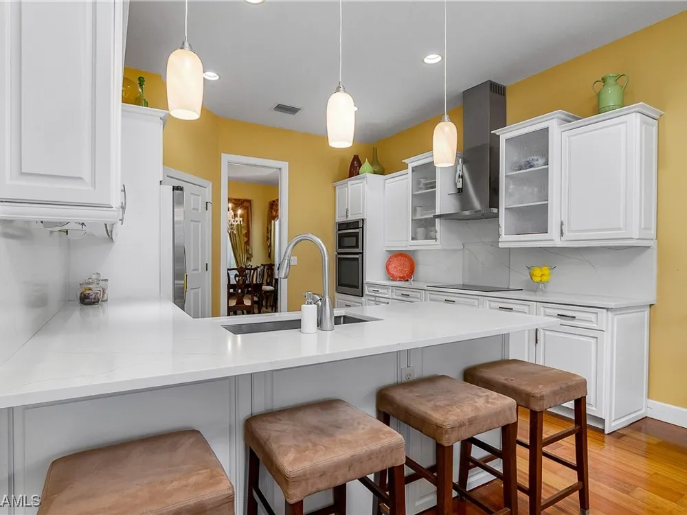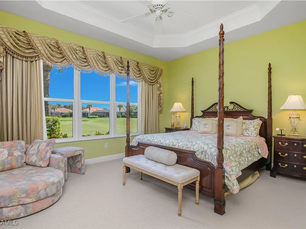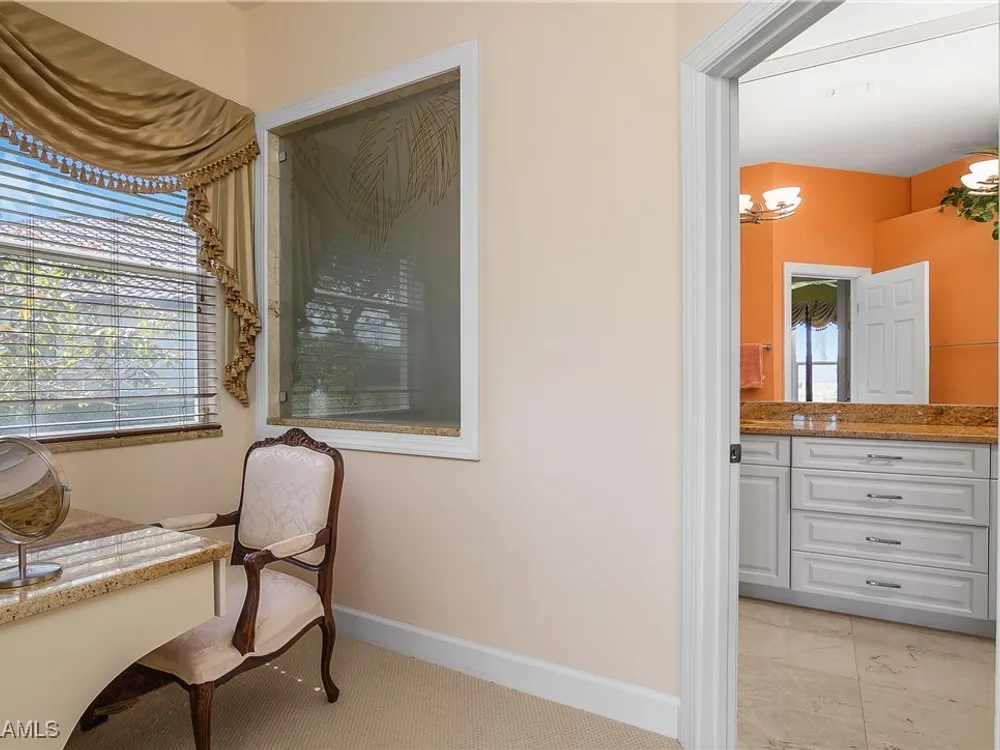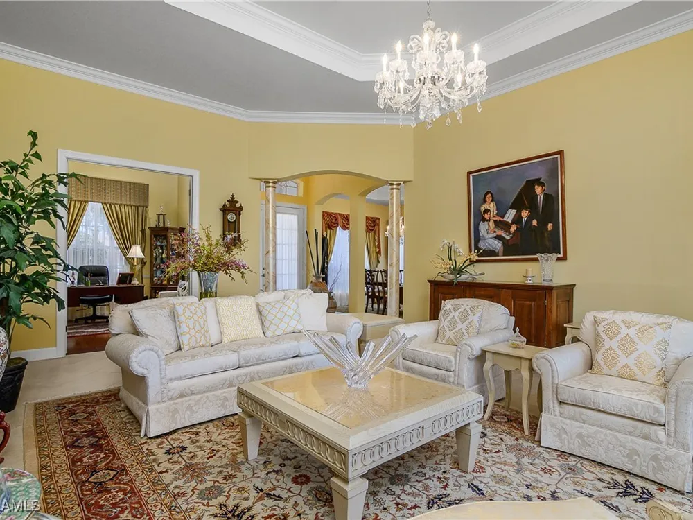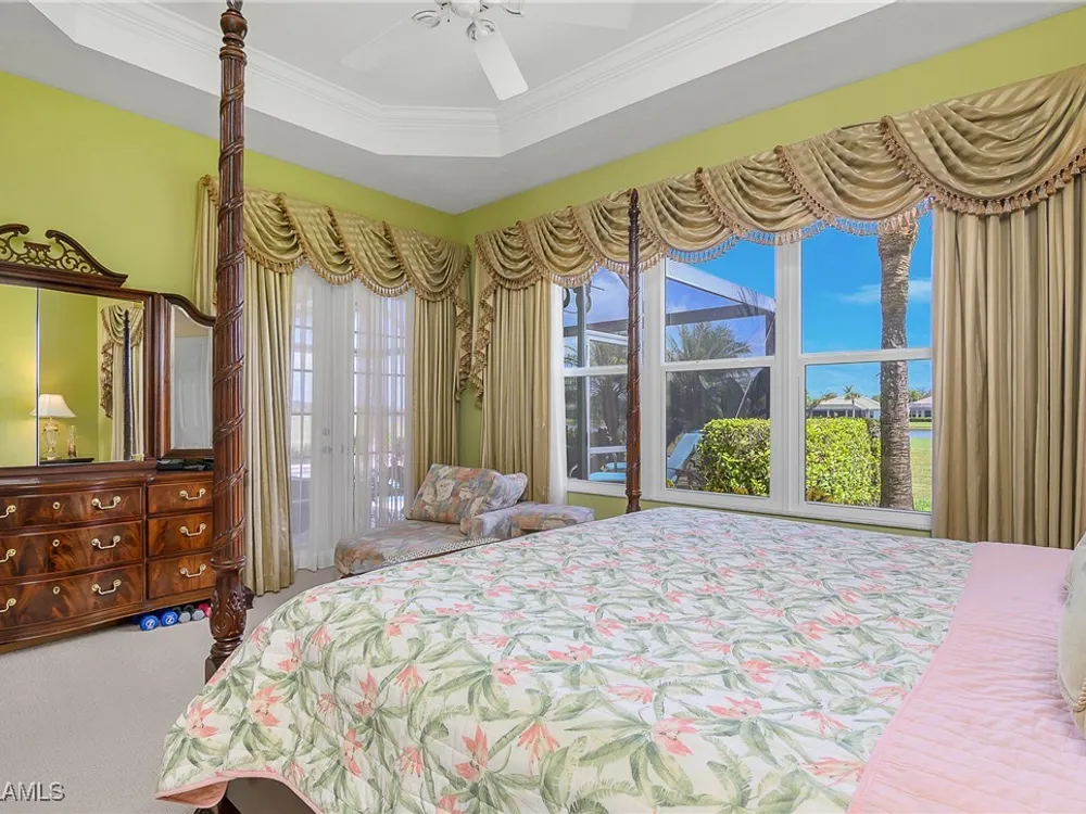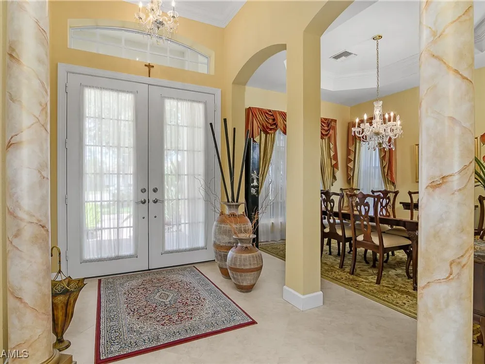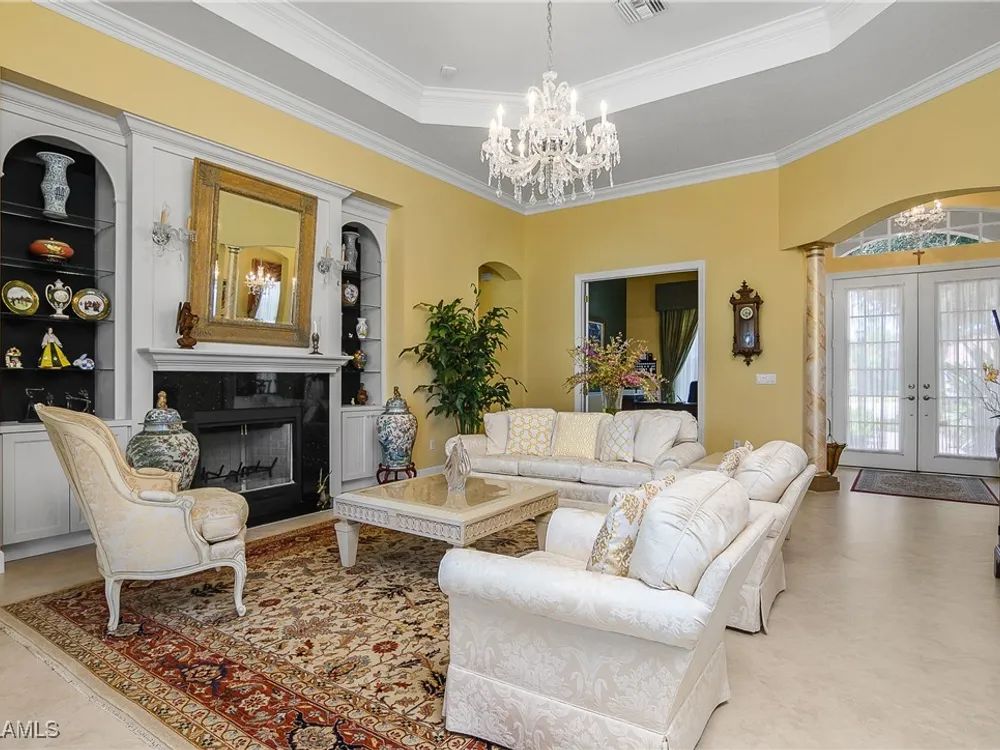 Outstanding lake view from this home located at the end of a cul-de-sac. Fabulous privacy with this 2 bedroom plus a den home. Foyer leads to large living room (great room) with marble framed fireplace and elegant dining room. Kitchen has stainless appliances, highly upgraded cabinets and quartz counters. Elegant master bedroom with walk-in closet and a custom designed ladies make-up area. Master bath has updated shower and dual sinks. Both master bed and bath have new hurricane windows installed in 2024. Split bedrooms allow for privacy in the guest bedroom and bath. Lovely pool has panoramic screen done in 2022. Lanai has hurricane screens put in by Storm Smart 2023. Pool is heated by solar and electric. High end AC replaced in 2025. New roof 2022. Two car garage with new spring board. Mustang Island is a gated community for homeowner security. The Players Club and Spa resort style amenities are included with this home. The Club offers three pools, tennis, pickle ball, bocce, spa, a complete fitness center, and a full social calendar. Lely Resort offers the perfect balance of leisure and recreation.