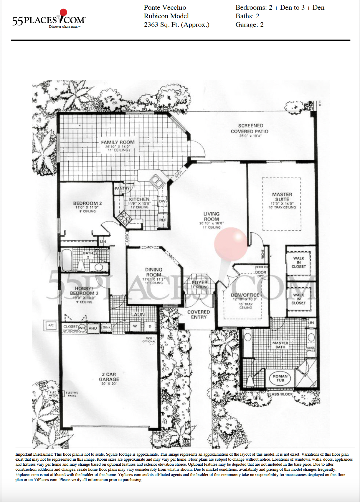 Welcome to this beautifully renovated Rubicon model in the guard-gated 55+ community of Ponte Vecchio. This single-story home offers approximately 2,308 square feet under air with 2 bedrooms, 2 dens (ideal for additional bedrooms or office space), and 2 full bathrooms in an open, airy floor plan. Recent updates include a brand-new roof (2024), a new washer and dryer tower, new bedroom flooring, updated bathrooms, fresh interior paint, new lighting and fans, new kitchen countertops, and an epoxy-finished garage floor. The spacious primary suite features two walk-in closets, dual vanities, a separate shower, and a Roman tub. Enjoy outdoor living with a beautiful screened-in private pool overlooking the lake, providing a peaceful and private setting. Enjoy a stunning, recently renovated clubhouse featuring a grand ballroom, fitness center, indoor and resort-style outdoor pools, tennis and pickleball courts, card rooms, billiards, and a vibrant social calendar designed for active adult living in a 24-hour guard-gated community.