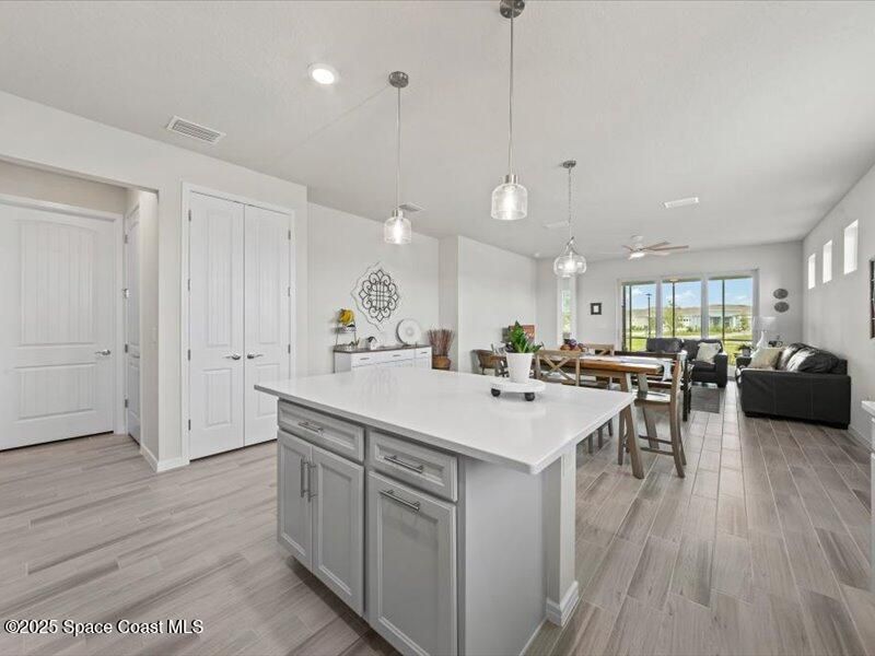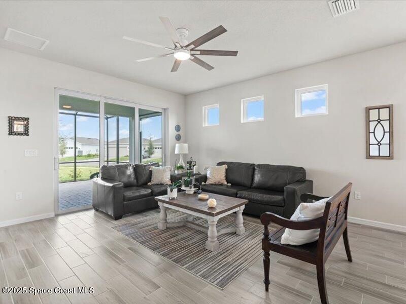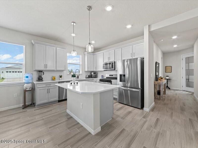 Welcome to 8967 Splashing Drive, Melbourne, FL 32040 - a stunning home in the sought-after Del Webb 55+ resort-style community. This beautifully maintained 3-bedroom, 2-bath residence offers modern comfort and stylish upgrades throughout. The open-concept floor plan is perfect for both entertaining and everyday living, highlighted by elegant wood plank tile flooring, upgraded doors, and carefully selected ceiling fans and pendant lighting. The chef-inspired kitchen features sleek quartz countertops, ample cabinetry, and a spacious island, making it the heart of the home. Enjoy the seamless flow from the kitchen and living areas to your private screened-in enclosure with paver flooring—a perfect retreat for morning coffee or evening gatherings. Additional features include a two-car garage and thoughtful design touches that elevate both form and function. Resort-Style Living at Del Webb At Del Webb, every day feels like a vacation. Residents enjoy access to an impressive array of amenities, including A resort-style pool and spa Tennis and pickleball courts Walking and biking trails A fully equipped fitness center Beautifully designed clubhouse with social events and activities Gated community with 24/7 security for peace of mind Prime Location8967 Splashing Drive is ideally situated close to everything you need. Just minutes from Costco, The Avenues at Viera, and a variety of restaurants and shopping. Outdoor adventures and attractions are nearby, including beautiful beaches, the Brevard Zoo, and the Kennedy Space Center. Plus, Orlando's world-class entertainment and theme parks are only a short drive away.If you're looking for a move-in ready home with upgrades, style, and access to resort-style amenities, 8967 Splashing Drive is the perfect choice.