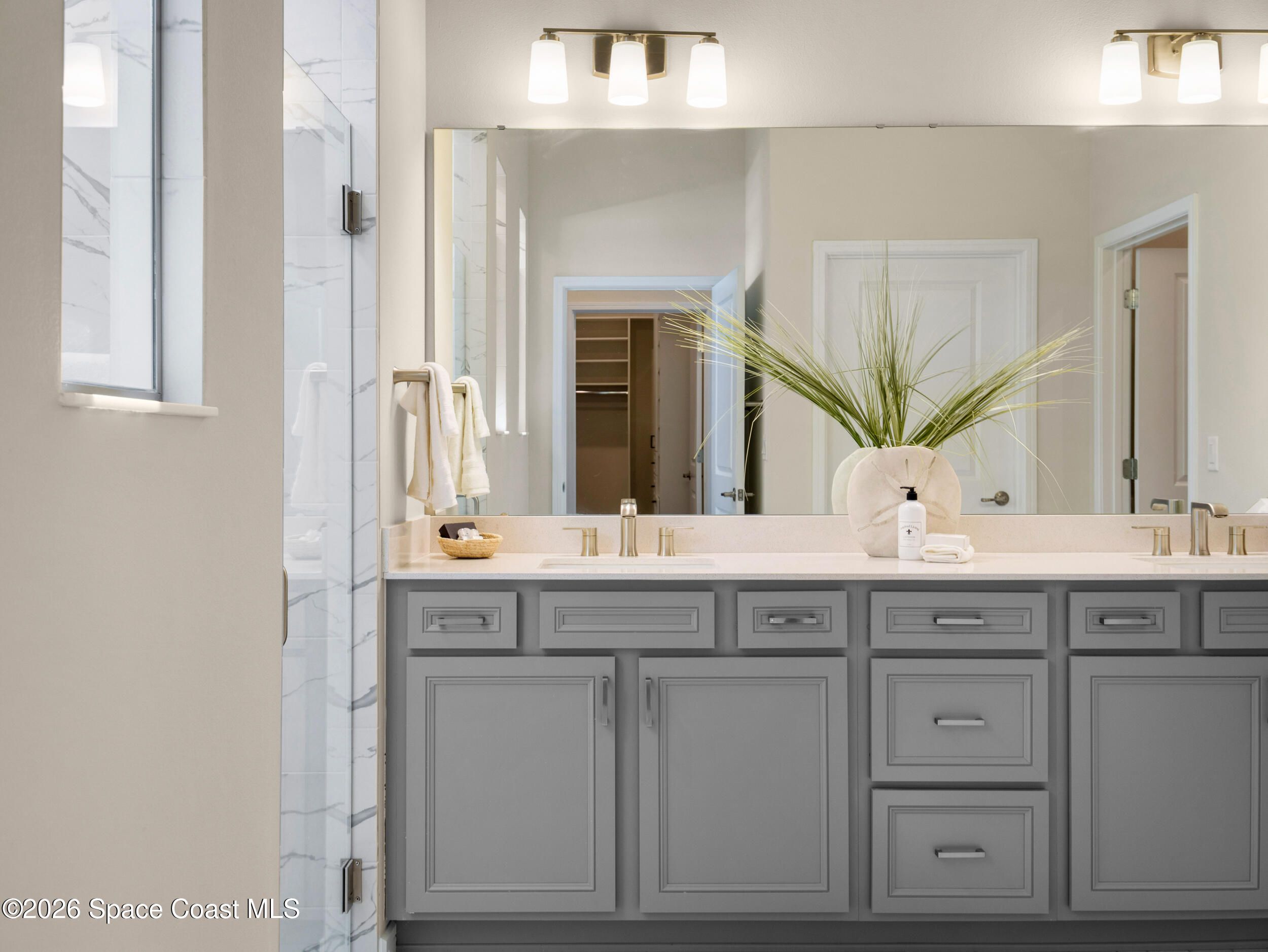 Live the Florida lifestyle in this stunning lakefront home located in the gated Del Webb at Viera 55+ community. Situated on a premium corner lot with peaceful water views, this move-in-ready residence offers an open-concept layout with high ceilings and luxury vinyl plank flooring throughout. The gourmet kitchen features quartz countertops, a 5-burner gas cooktop, double ovens, upgraded cabinetry, and a custom walk-in pantry—perfect for entertaining or everyday living. Three of the four bedrooms include private en-suite baths, providing comfort and privacy for owners and guests. Enjoy outdoor living on the screened lanai overlooking the lake, with a fenced yard and the rare opportunity to watch Cape Canaveral rocket launches from home. Additional highlights include custom closets throughout, upgraded lighting and fans, and an extended 3-car garage with epoxy flooring. Del Webb offers resort-style living with lawn maintenance included, plus a clubhouse, pool, pickleball, fitness center, restaurant/bar, and access to Duran Golf Club. Conveniently located near shopping, dining, medical facilities, and Florida's Space Coast beaches. Why wait to buildthis home is ready to enjoy today.