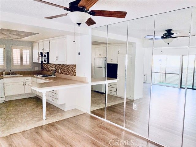 Maximum convenience near the creek in the "Knob Hill" area. You will love living in this ground-level end unit with beautiful laminate wood flooring. The popular Casa Contenta model has 1009 sq ft with 2 bedrooms/2 bathrooms on a single level. NO STAIRS from your front door to your carport and laundry cabana which are as close as you can get. The primary suite has its own shower room, dressing area, and ample closet space. The open-air patio is accessible from the living room and guest bedroom. A wide wooden gate allows access from outdoors. Surrounded by attractive greenery and situated looking east onto the patio from inside. This co-op home has many original features which the HOA provides and maintains for the buyer including the refrigerator, oven, cooktop, dishwasher, and garbage disposal. The kitchen has new retrofit windows and you get to select a new oven and vinyl flooring. You also get to select HOA's vinyl flooring and laminate counters for both bathrooms. Property taxes and insurance for the co-ops are paid by the HOA out of your monthly HOA payments. Convenient to John Wayne Airport, top medical facilities, shopping, restaurants and entertainment. Some of the amenities include (7) clubhouses, (5) pools, (2) professional golf courses and a 9 hole 3 par course, (3) fitness centers, (10) tennis courts, pickleball, an on-site restaurant and lounge, equestrian center, performing arts center, ballroom dancing, over 200 clubs including HAM Radio. A Computer Center, Saddleback College Curriculum, Art Studio, Craft Shops for Wood & Metal Making, Lapidary, Sewing, Victory Garden, RV Parking Area, and even more. Located on the ocean side of freeway. Drive Laguna Canyon Road to the Arts and sandy beaches of Laguna:) This home has everything for you to enjoy an easy and fulfilling way of life. Discover why people love living in Laguna Woods Village!