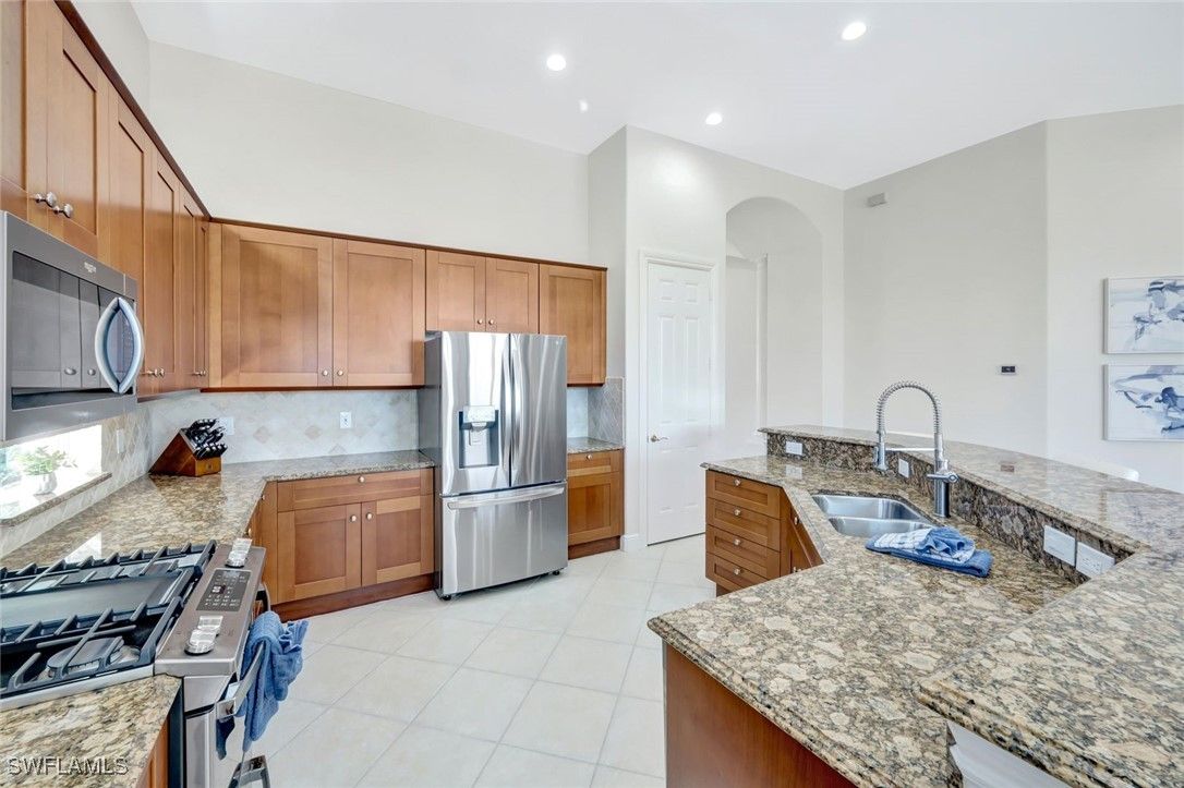 Single family home in Cranberry Crossing at Fiddler’s Creek for sale Turnkey! Discover a refined retreat where Florida living meets timeless elegance. This immaculate three-bedroom, two-bath residence overlooks a tranquil lake, offering glowing morning sunrises and serene water views. The open-concept design seamlessly connects the living room, breakfast area, and stunning kitchen adorned with granite countertops, a tile backsplash, and newer appliances, Stove/Refrigerator/dishwasher & microwave 2023, washer & dryer (2021). French doors welcome you to a private courtyard and a screened lanai featuring a built-in gas grill and sparkling heated pool—complete with a newer pool heater(2023), and a beautifully tiled roof and lanai pool screen cage installed in 2018. High ceilings enhance the airy flow throughout the home. The updated master suite bathroom is a sanctuary with dual vanities, a soaking tub, and a separate shower, while the updated guest bath features a walk-in shower. Residents of Fiddler’s Creek enjoy award-winning amenities, including a newly renovated lagoon-style pool, spa, fitness center, and a vibrant social calendar filled with pickleball, tennis, and both casual and fine dining options. Memberships are available for golf, beach, and boating. The prime location provides easy access to Olde Naples and Marco Island for world-class shopping, dining, and recreation. This exceptional home captures the essence of true Florida living. CDD capital balance paid in Full!