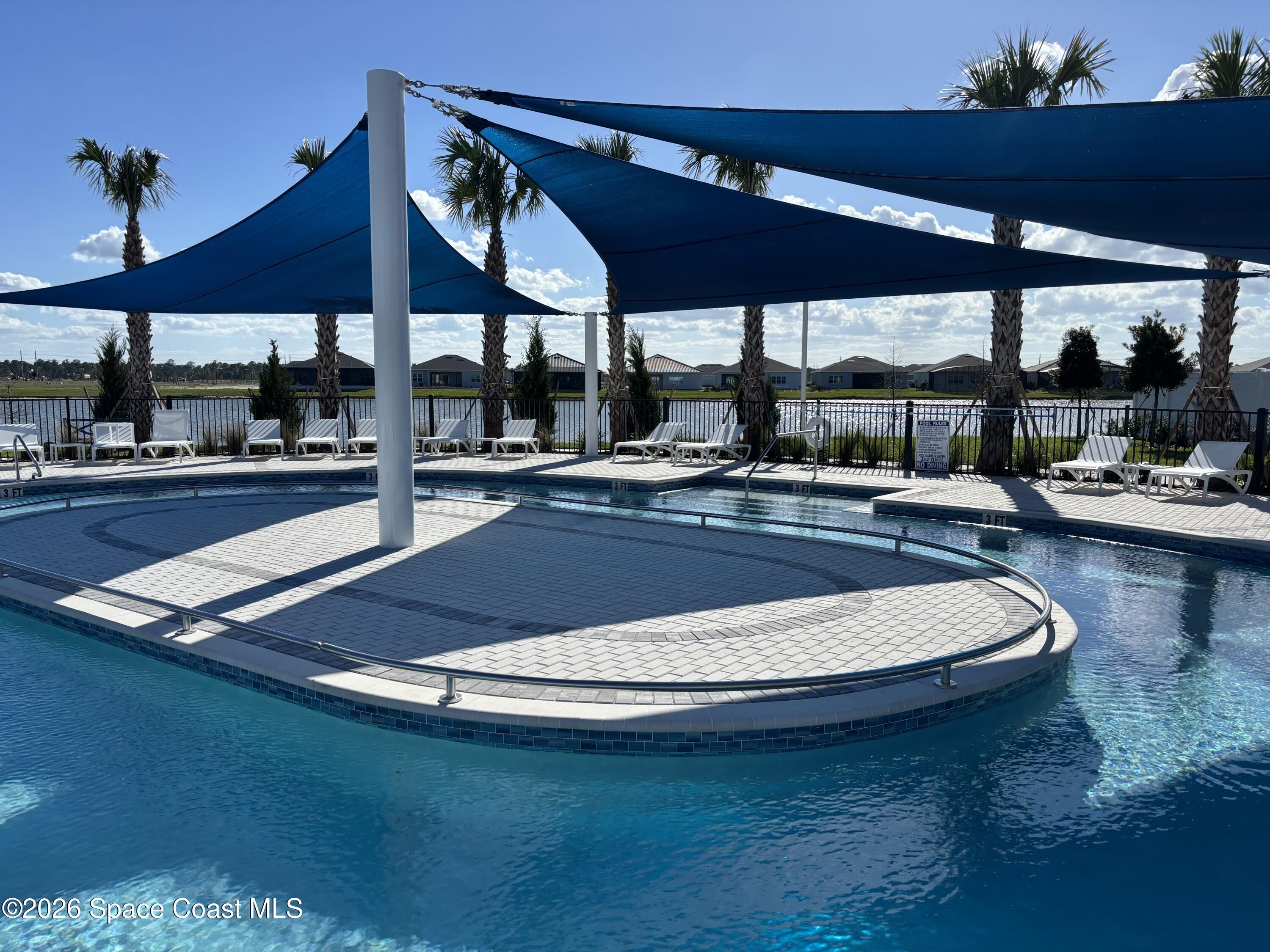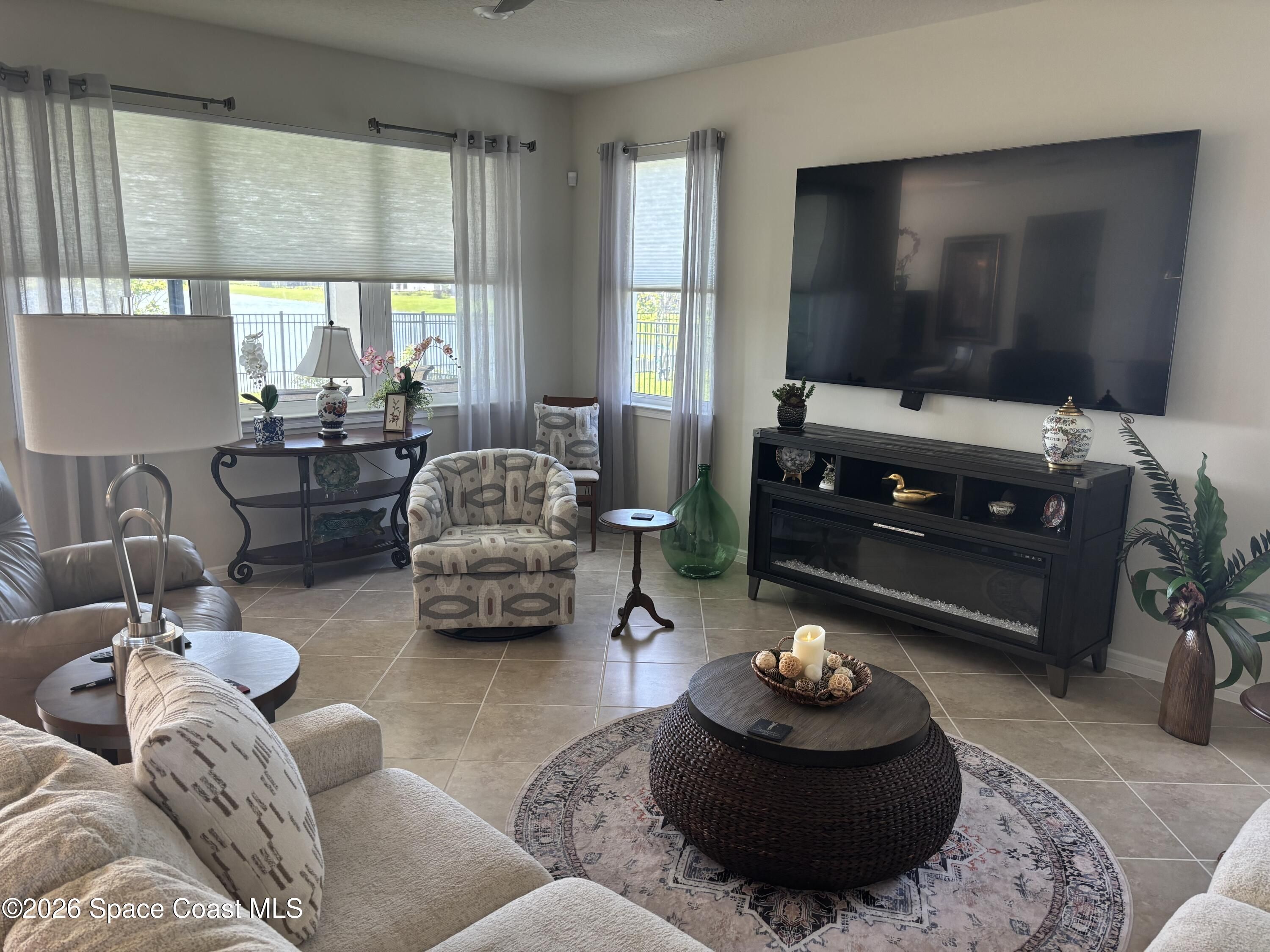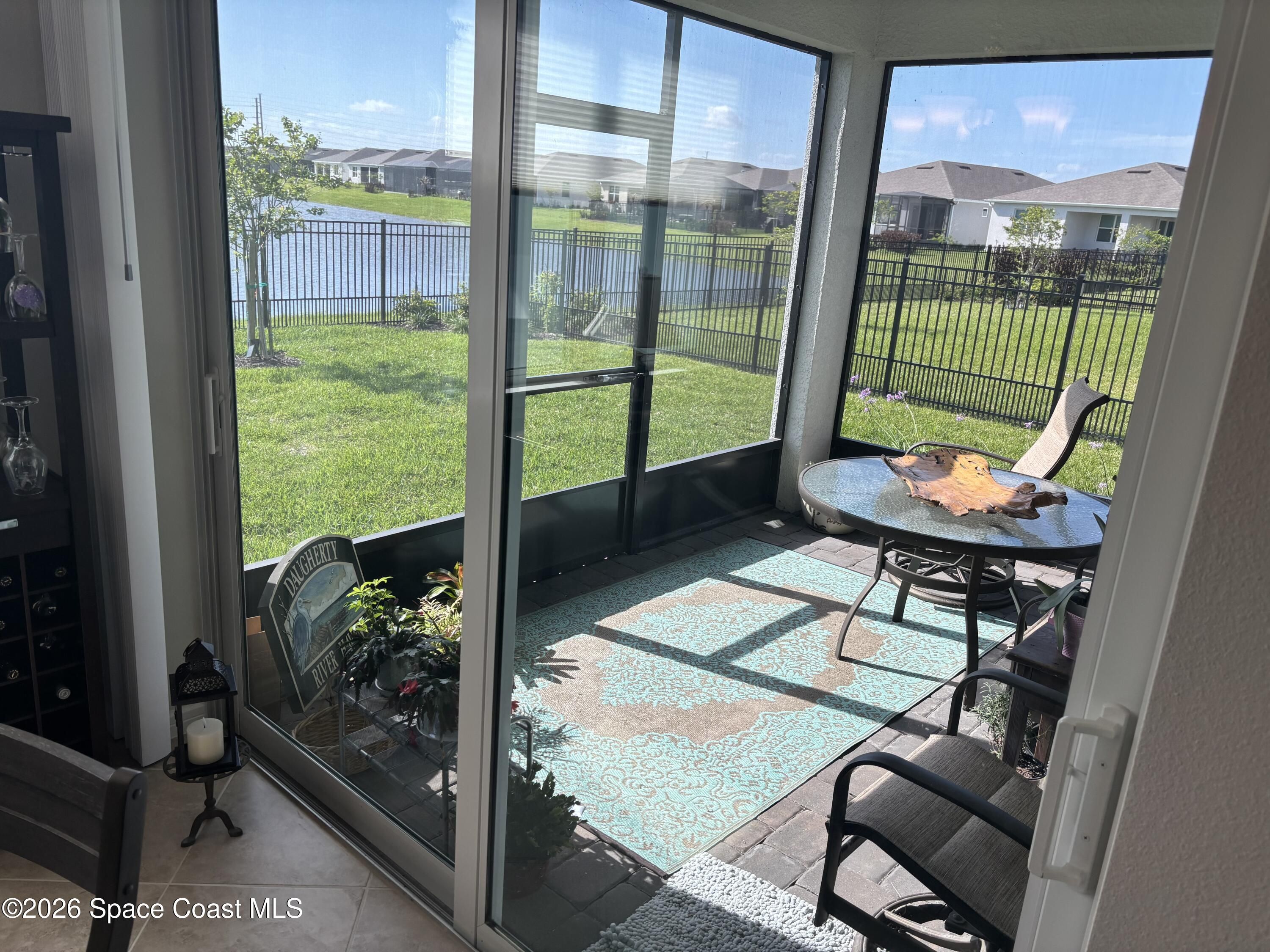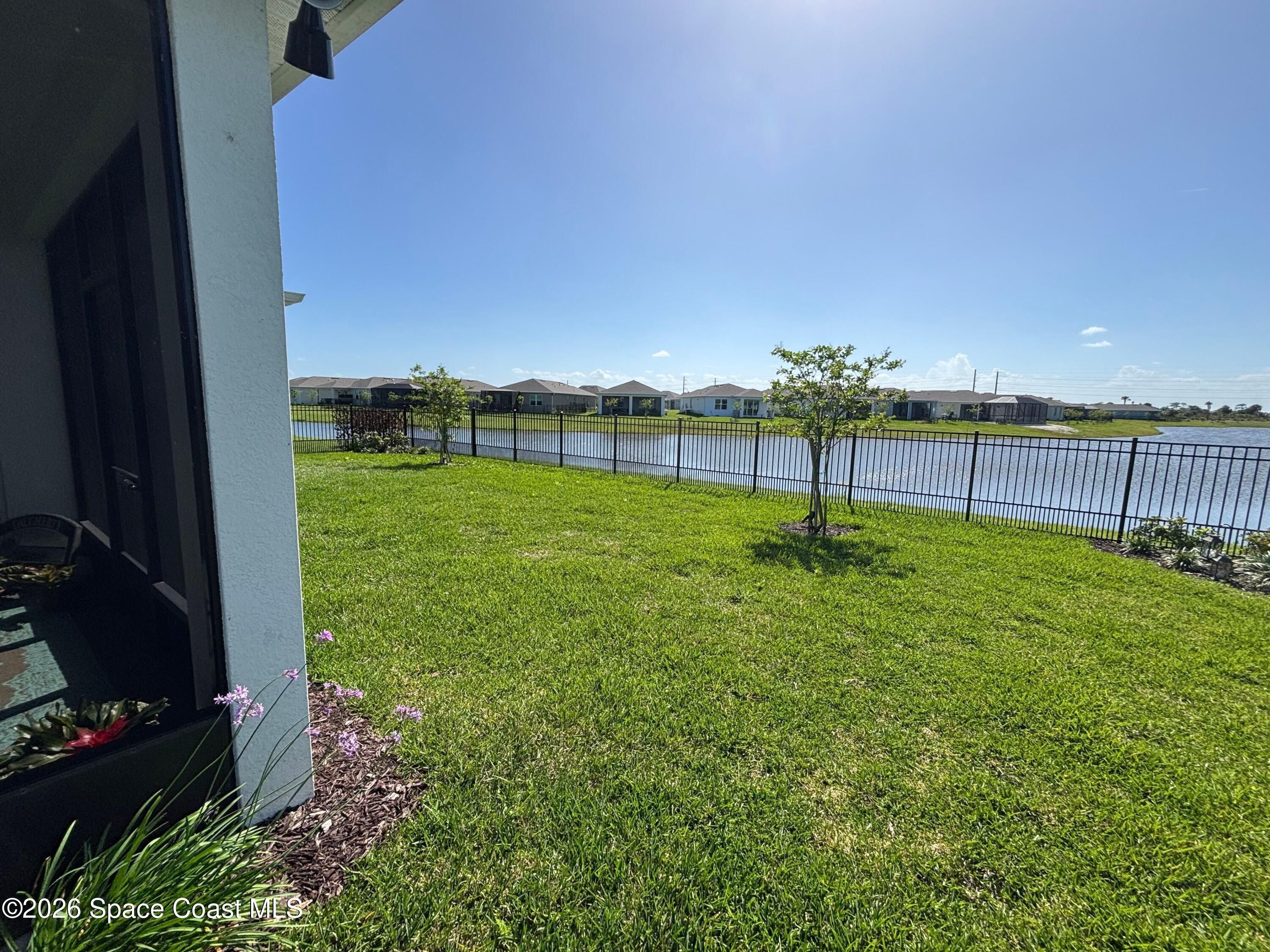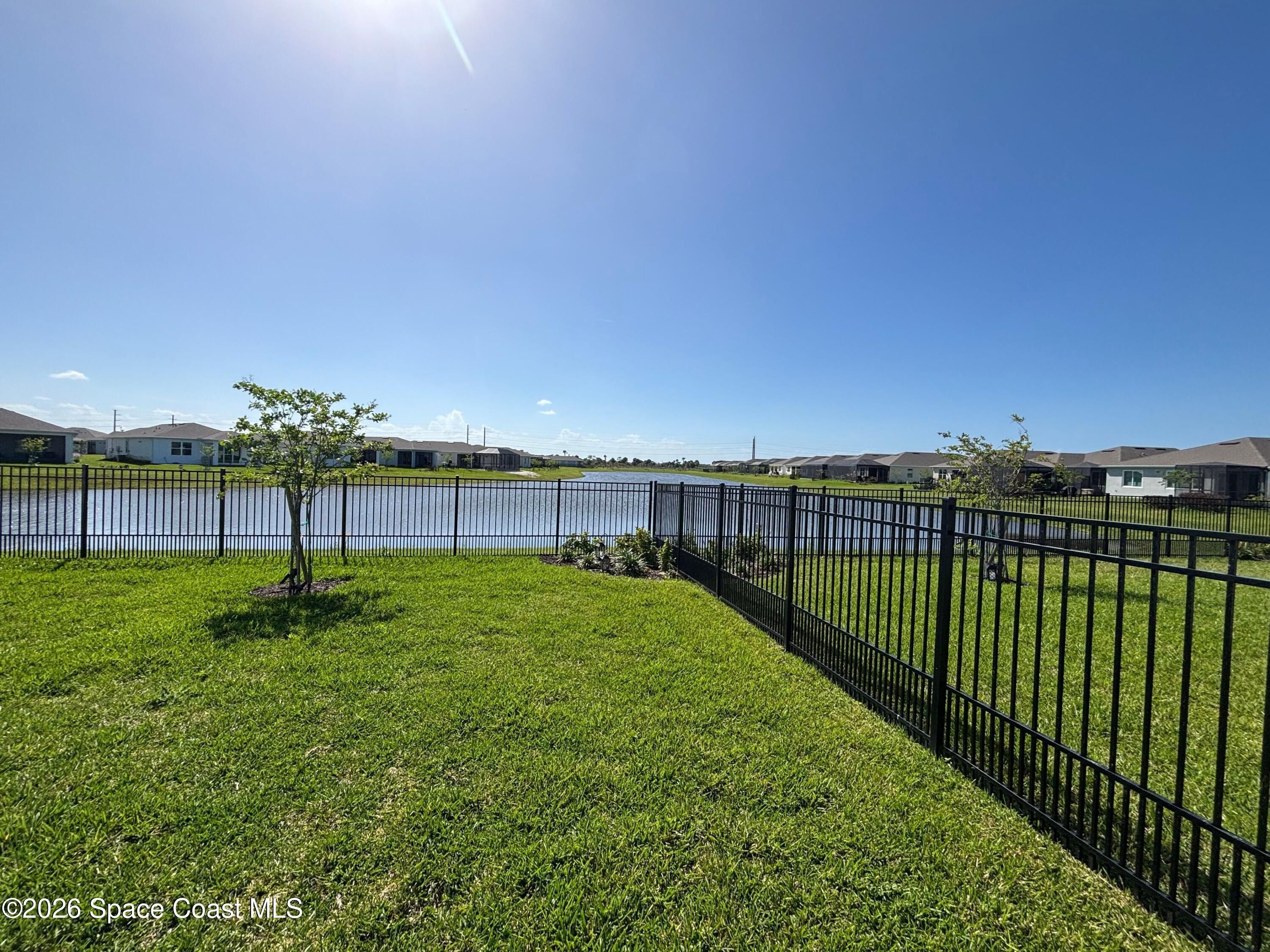 This lakefront, oversized premium lot has 3 full bedrooms and 2 full baths. This is a favorite Del Webb model called Mystique. You can enjoy from your screened lanai amazing sunset & unobstructed water views. It is move in ready for you to start enjoying life in an active resort-style community. Entertaining is easy with a large open concept gathering room, kitchen with large island, and cafe. Included are window treatments, ceiling fans & lighting fixtures. The upgraded laundry room has both upper, lower cabinets, a large sink & a built-in storage closet. Chef's kitchen has upgrades such as quartz countertops, stainless steel Whirlpool appliances, upgraded sink/faucet, backsplash, and much more. The oversized 2-car garage with epoxy flooring was extended by 4 feet & has an additional tandem space for parking your golf cart. Ceramic tile flooring throughout the home. Fire alarm & security systems are installed. The yard is private with its iron fence & puppy picket for your pet. READY TO MOVE IN * This 55+ Del Webb at Viera community features all the amenities you will love. The 30,000 (under roof) Sq. Ft. Clubhouse Clubhouse with waterfront view and incredible sunsets! This Resort Style Clubhouse has a Zero-Entry Pool w/ Sun shelf, Onsite Tavern & Grille, Outdoor Spa, Fire-pits, Lawn Events, Arts and Crafts Center, Mahjong, Yoga, Zumba, a diverse range of clubs, monthly events, dog park and so much more. Also included with your amenities is a membership to the Duran Golf Course. Our Manned Gated community is only a few miles to the Viera Hospital, the Viera Regional Park, the Viera Shopping Area/Town Center, the Brevard Zoo, the Shops at Lake Andrews, Costco and a diverse array of dining and entertainment options.