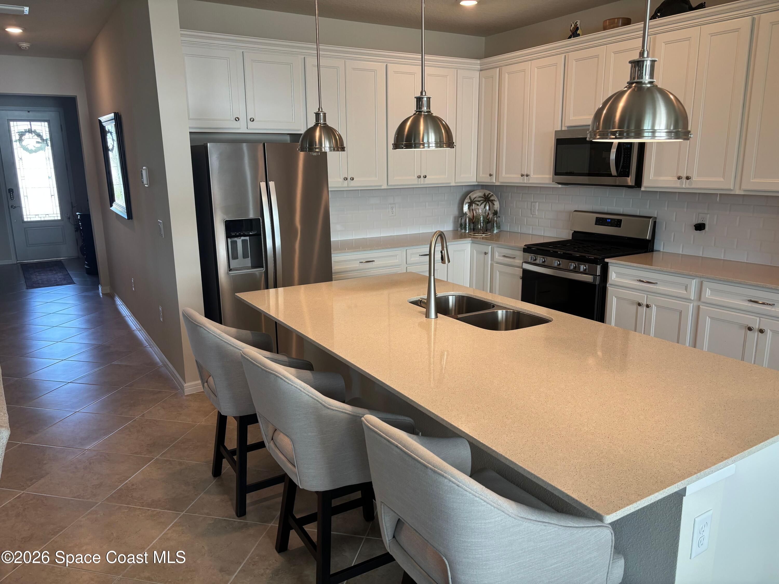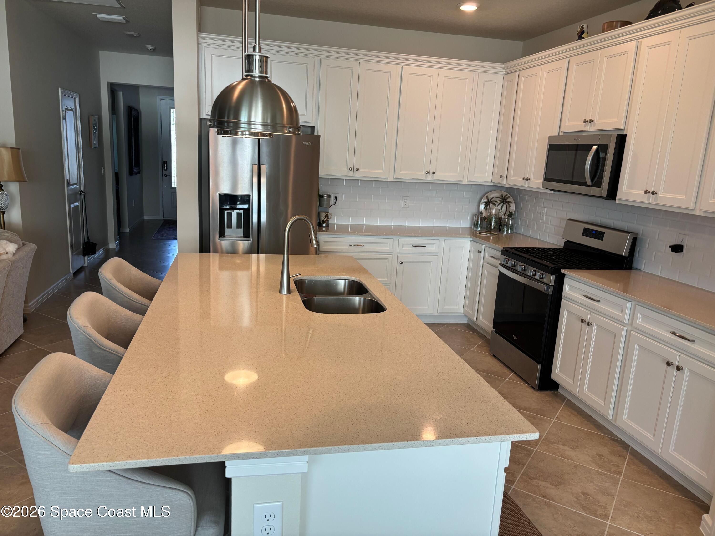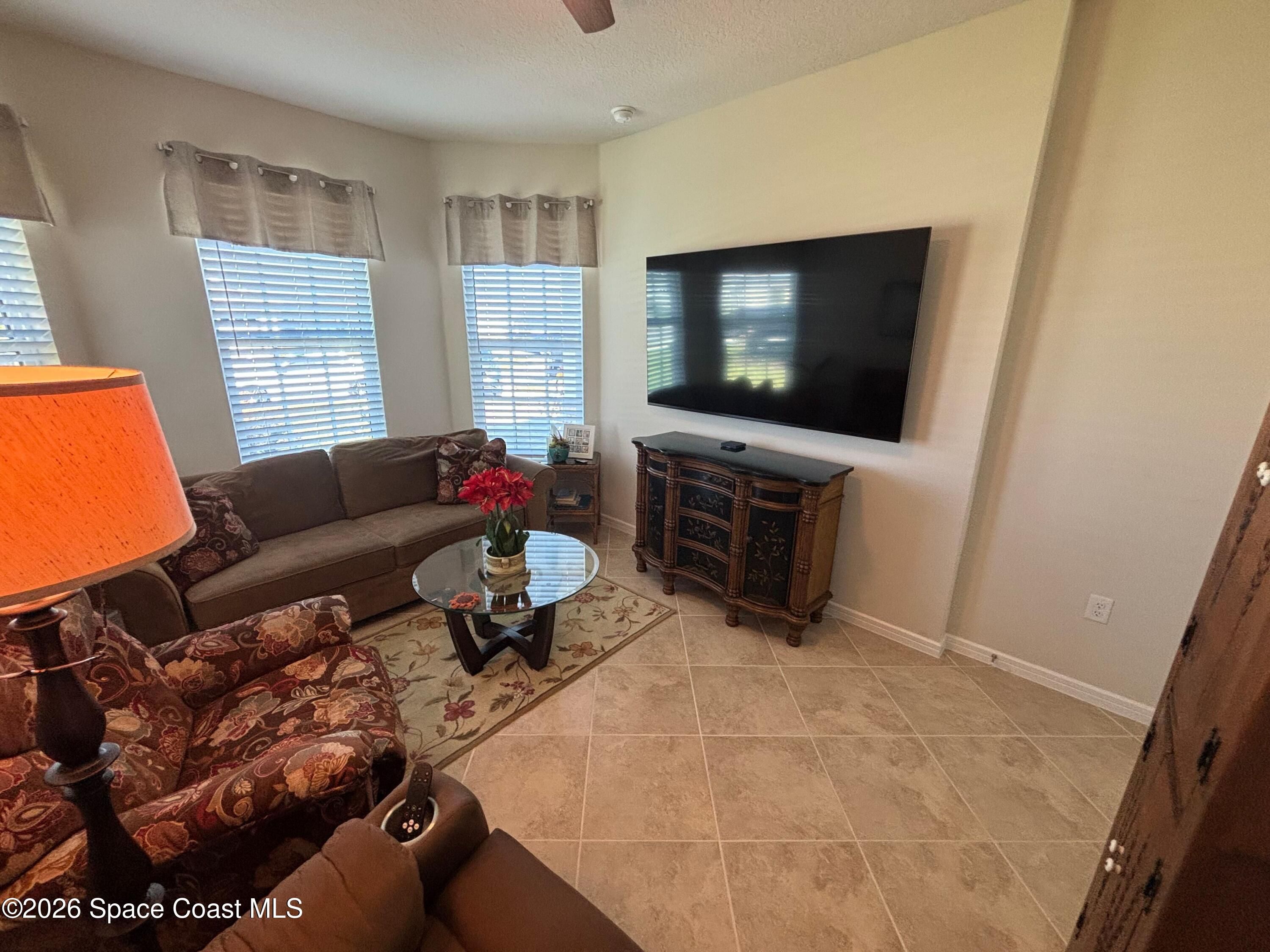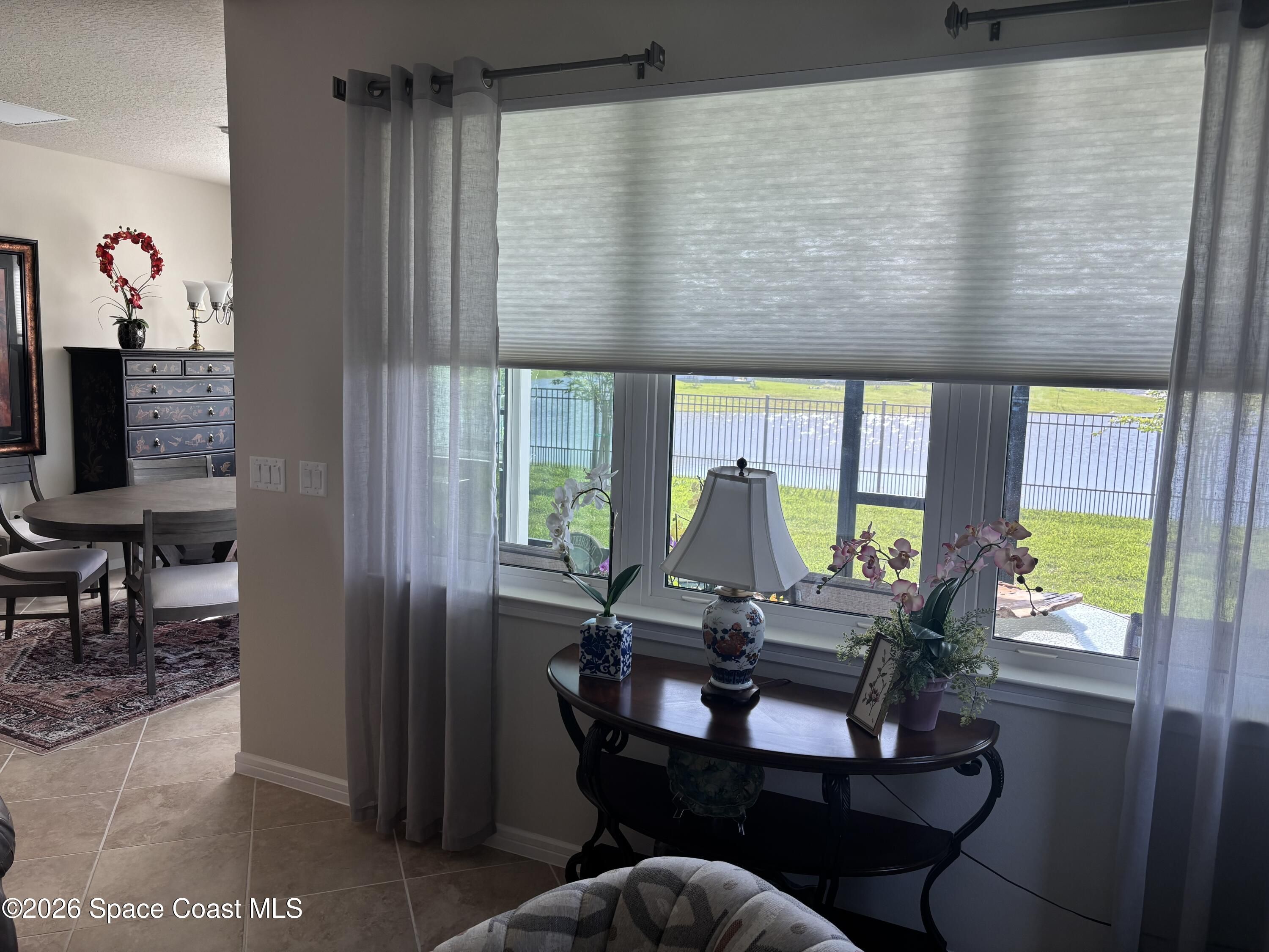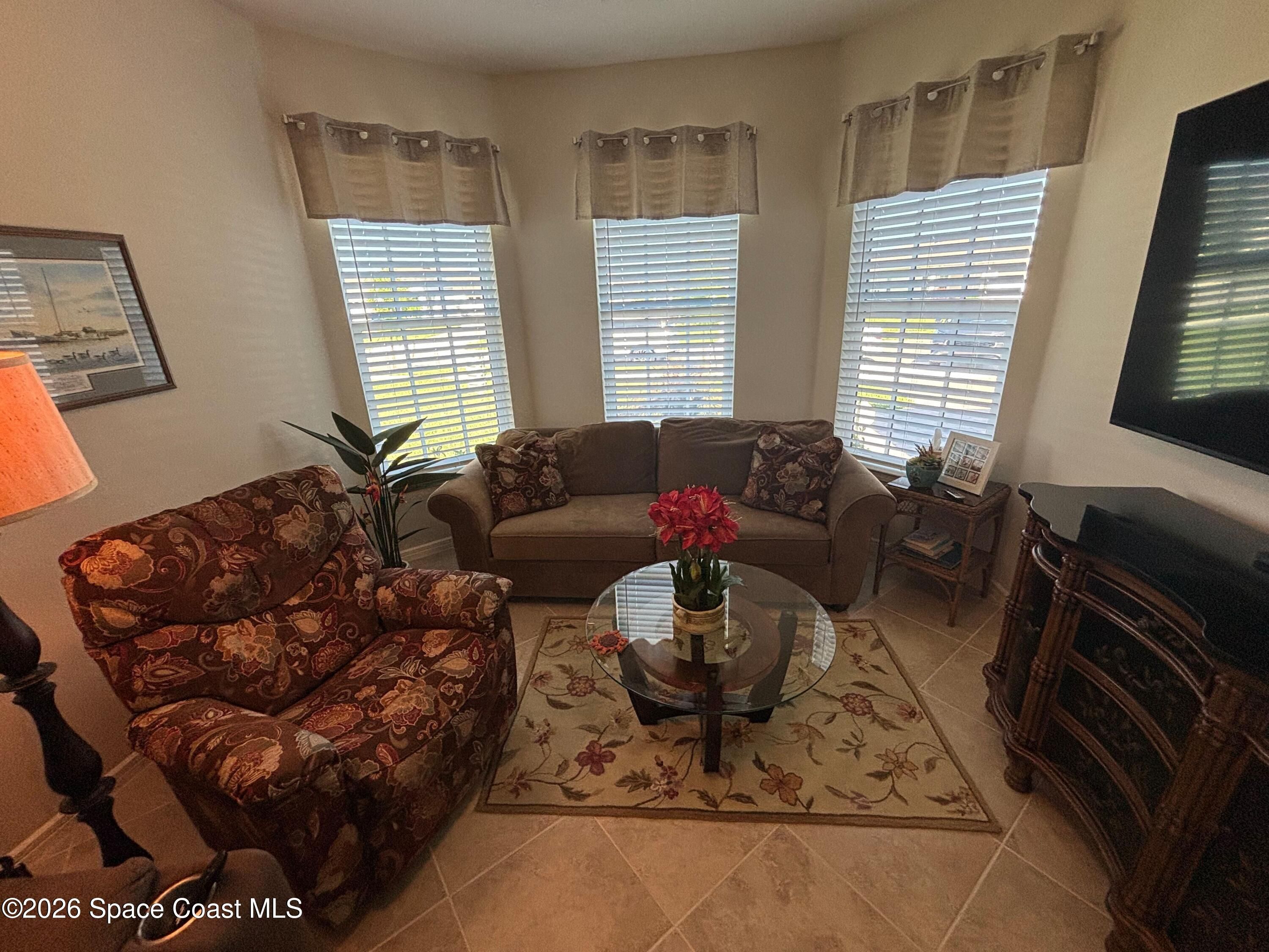 This lakefront, oversized premium lot has 3 full bedrooms and 2 full baths. This is a favorite Del Webb model called Mystique. You can enjoy from your screened lanai amazing sunset & unobstructed water views. It is move in ready for you to start enjoying life in an active resort-style community. Entertaining is easy with a large open concept gathering room, kitchen with large island, and cafe. Included are window treatments, ceiling fans & lighting fixtures. The upgraded laundry room has both upper, lower cabinets, a large sink & a built-in storage closet. Chef's kitchen has upgrades such as quartz countertops, stainless steel Whirlpool appliances, upgraded sink/faucet, backsplash, and much more. The oversized 2-car garage with epoxy flooring was extended by 4 feet & has an additional tandem space for parking your golf cart. Ceramic tile flooring throughout the home. Fire alarm & security systems are installed. The yard is private with its iron fence & puppy picket for your pet. READY TO MOVE IN * This 55+ Del Webb at Viera community features all the amenities you will love. The 30,000 (under roof) Sq. Ft. Clubhouse Clubhouse with waterfront view and incredible sunsets! This Resort Style Clubhouse has a Zero-Entry Pool w/ Sun shelf, Onsite Tavern & Grille, Outdoor Spa, Fire-pits, Lawn Events, Arts and Crafts Center, Mahjong, Yoga, Zumba, a diverse range of clubs, monthly events, dog park and so much more. Also included with your amenities is a membership to the Duran Golf Course. Our Manned Gated community is only a few miles to the Viera Hospital, the Viera Regional Park, the Viera Shopping Area/Town Center, the Brevard Zoo, the Shops at Lake Andrews, Costco and a diverse array of dining and entertainment options.