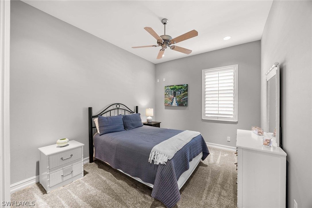 Located within the low-fee community of Lely Island Estates at Lely Resort, this recently updated residence offers expansive lake views and exceptional privacy on an oversized cul-de-sac homesite. Designed to capture long, wide water views from nearly every room, the home features three bedrooms, a den, and a dedicated media room configured as a fourth bedroom, along with three full baths and one half bath. The primary suite includes a flexible bonus room suitable for a fitness space, secondary office, or expanded dressing area, complemented by a generously sized walk-in closet. The renovated primary bath reflects recent updates with refined finishes and improved functionality. The kitchen has been enhanced with new countertops and offers a layout tailored for culinary preparation and entertaining. A seamless indoor to outdoor floor plan connects the main living areas to the completely resurfaced and renovated pool and spa, creating a setting designed for gatherings and year-round enjoyment. Additional highlights include a large laundry room with extensive cabinetry, an oversized two-car garage, and a newer roof. Lely Resort is home to three championship golf courses. Membership to the award-winning Players Club and Spa is available immediately but remains optional. This property presents an opportunity to own a private waterfront residence within one of Naples’ established resort-style communities.