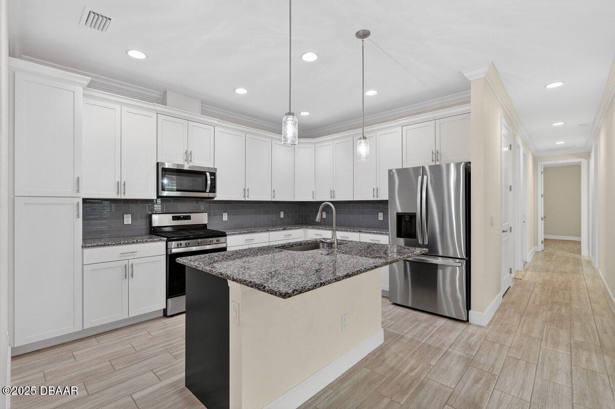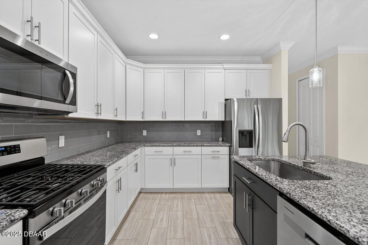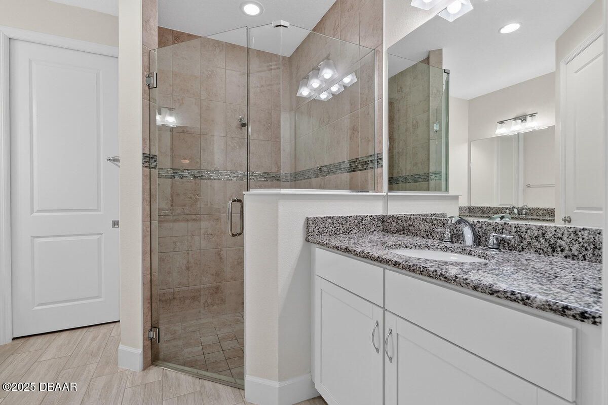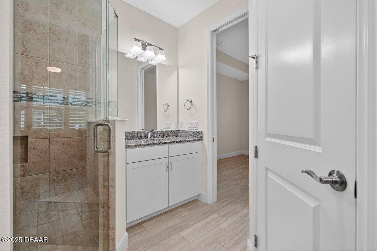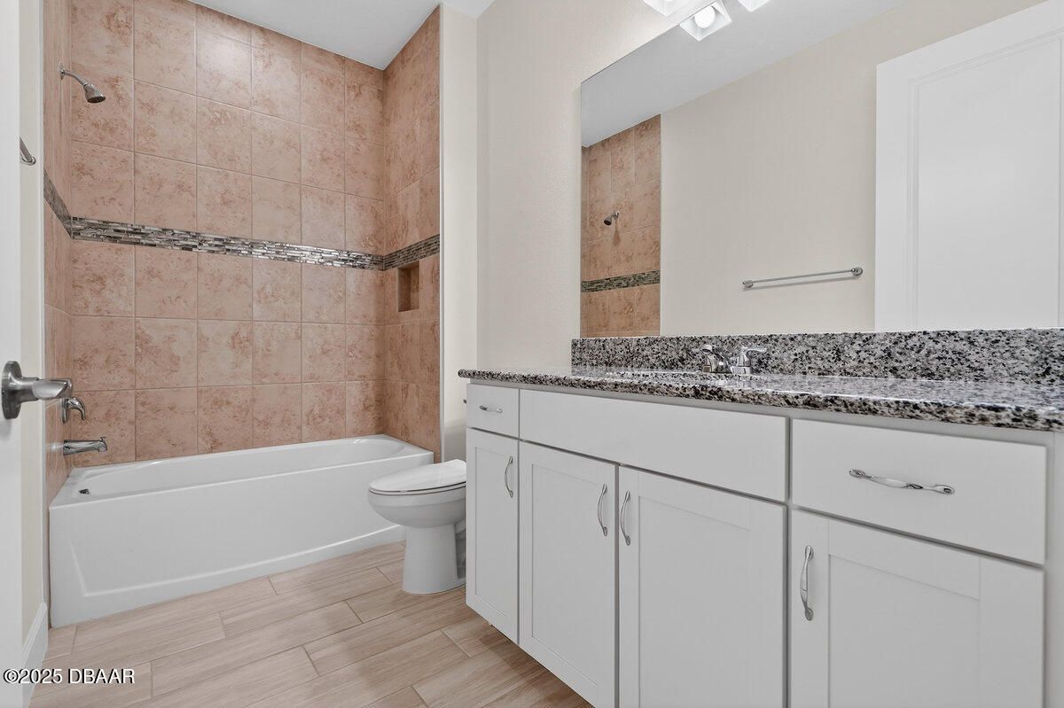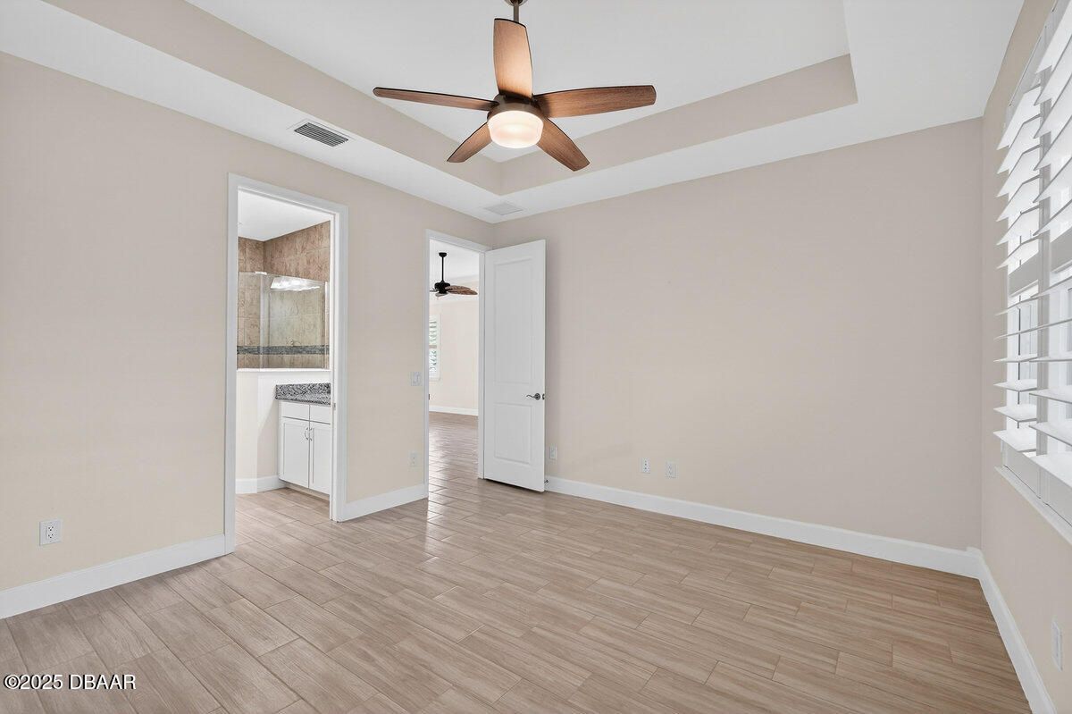 Welcome to this highly upgraded Lucia villa in Phase 7 of Latitude Margaritaville, just down the street from Guitar Park, offering impeccable condition and a clean, like-new feel that is truly move-in ready. Plank tile flooring, crown molding, 8-foot two-panel doors, and plantation shutters extend throughout the home, complemented by a custom fireplace and ceiling fans in every room, including the lanai. The chef's kitchen is thoughtfully designed with 42-inch cabinets accented by crown molding, pullout shelving, double trash pull-outs, dovetail soft-close doors and drawers, granite countertops, a gas range, and a glass tile backsplash, blending style with everyday functionality. The spacious primary suite features a tray ceiling and abundant natural light from two operable windows with fixed glass centered between them. The en-suite bath offers a walk-in closet, frameless glass shower with tile to the ceiling, dual sinks, and granite countertops. The guest bathroom is equally well-appointed with upgraded cabinetry, granite countertops, and a tub/shower combination finished with tile to the ceiling and a beautifully detailed accent listello. Outdoor living is enhanced by an extended paver lanai with an electric privacy screen and fuller trees lining the back of the lanai for added privacy. Additional highlights include motion-activated recessed lighting in the hallway, a well-designed laundry room with cabinetry, folding table, utility sink, and an epoxy-finished garage featuring an accent wall with a ceiling fan. The longer-than-average driveway offers ample additional parking, and the Lucia floor plan provides extra space at the rear of the garage, perfect for a golf cart or additional storage. Community & Lifestyle: Enjoy a prime community location just minutes from the residents-only gate, providing easy access to LPGA Boulevard as well as I-95 and I-4. Designed for vibrant 55+ living, this community blends recreation, relaxation, and connection. Amenities include resort-style pools, a state-of-the-art fitness center, on-site restaurant, theater, daily live entertainment, pickleball and tennis courts, dog park, art studio, and a private beach club with shuttle service. HOA maintenance covers lawn care, exterior pest control, and access to all community amenities, allowing you to fully embrace the Margaritaville lifestyle. Roof 2023 | HVAC 2023 | Tankless Hot Water Heater 2023 Square footage received from tax rolls. All information recorded in the MLS is intended to be accurate but cannot be guaranteed.