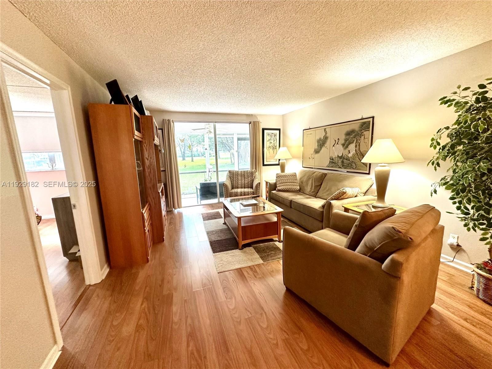 Enjoy relaxing garden views from your screened in porch. The apartment is located on the first floor and features a spacious, updated kitchen with room for a small table, and updated bathrooms with tile and laminate floors through out. Owners get to enjoy the resort style living with many amenities including one 18 hole executive golf course and one PGA 18 hole golf course for only $28. Golf carts also available. Lots of amenities, including Club house, gym, multiple pools, tennis, pickleball, restaurant, BBQ/picnic area, courtesy bus, heated pool, sauna, billiard room, shuffleboard, and more. The community is located close to shopping, dining, and highways for your convenience.